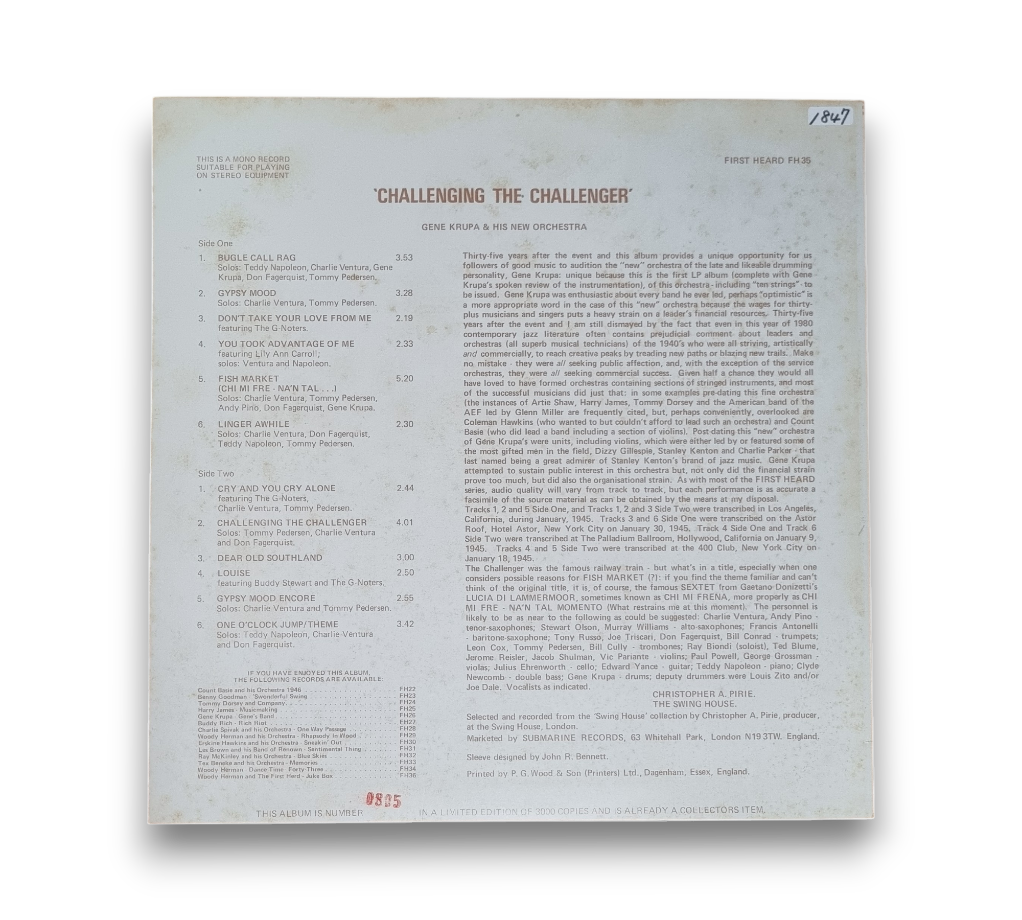 A VG+ record will show some signs that it was played and otherwise handled by a previous owner who took good care of it. These signs of wear include visible scuffs or scratches, or may have slight warp.