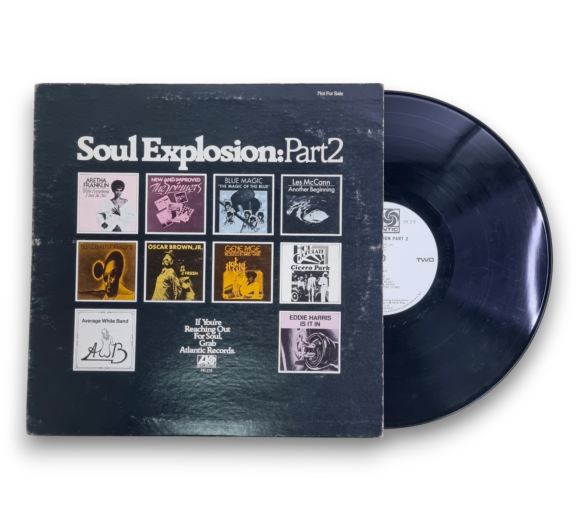 This listing features the record "Soul Explosion: Part 2," which is marked as a sample copy and not for sale. The album includes a variety of artists and tracks, showcasing a rich selection of soul music. The images provided depict the front and back cover, as well as both sides of the vinyl, which is in good condition. For further details regarding the packaging and inserts, please refer to the accompanying photos.