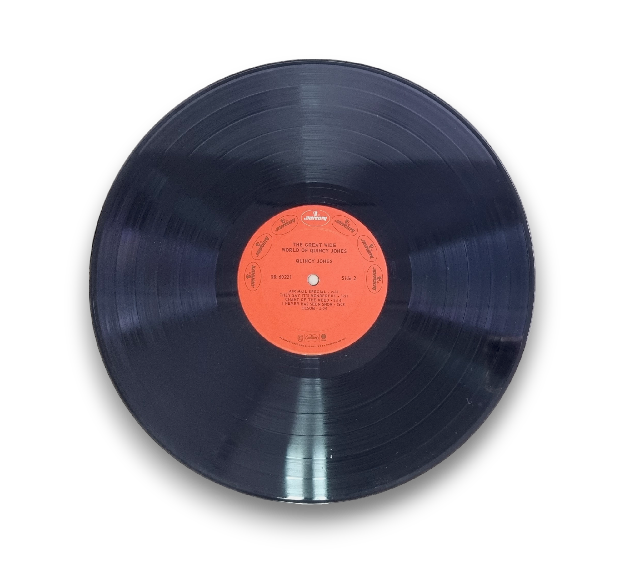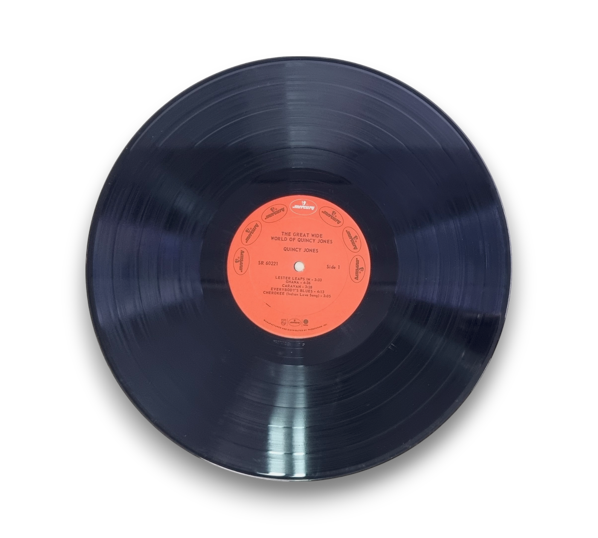 This listing features a later issue of "The Great Wide World of Quincy Jones," manufactured and distributed by Phonogram, Inc. The record is printed in the U.S.A. Please refer to the accompanying photos for a detailed view of the album cover and vinyl condition, as well as any additional packaging or inserts that may be included.