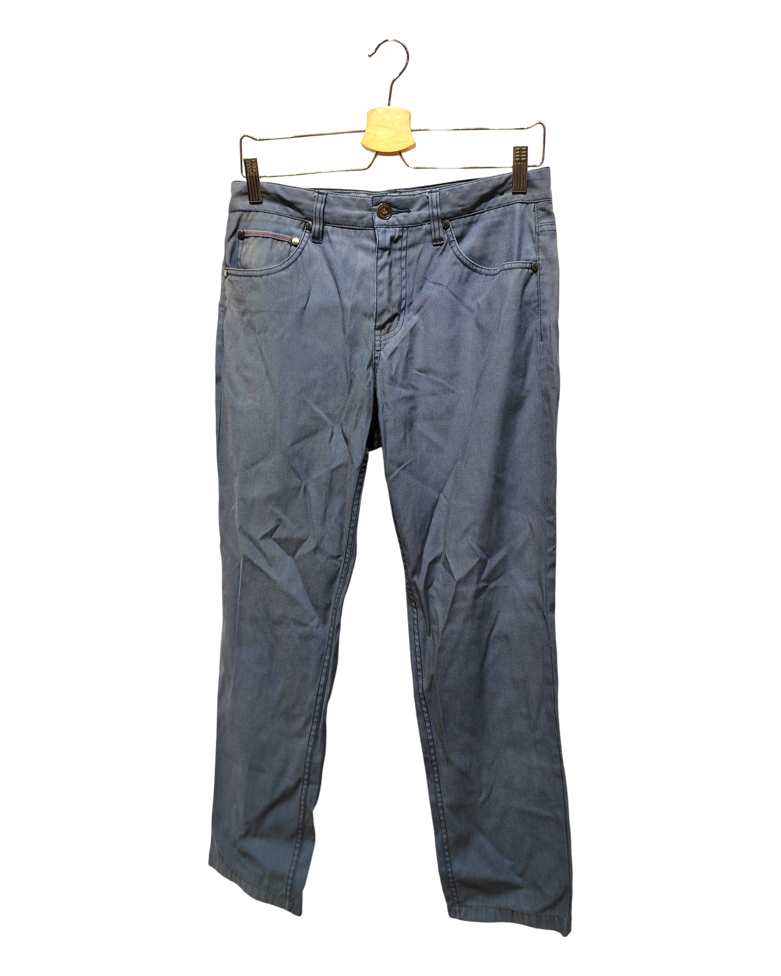The item is in decent condition with no major flaws. There may be slight visible signs of wear, such as light fading or pilling in areas such as the knees, seams, and hems due to being worn or washed.