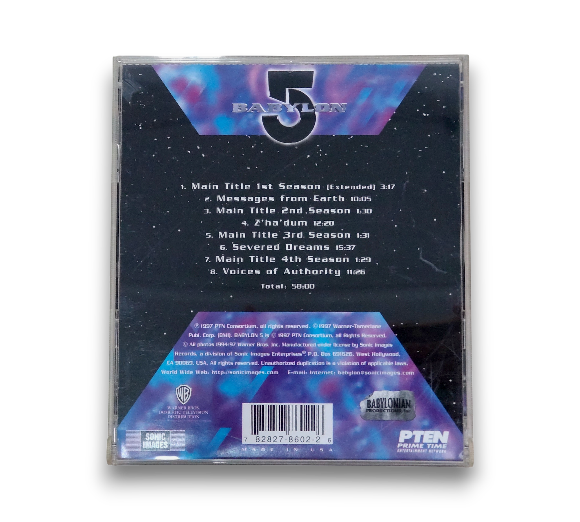 Experience the captivating soundscape of "Babylon 5: Messages From Earth," composed by Christopher Franke. Released in 1997, this CD features a total runtime of 58 minutes, showcasing a blend of electronic and classical elements that perfectly encapsulate the essence of the beloved sci-fi series. Housed in a standard jewel case with a 16-page booklet, this soundtrack is a must-have for fans and collectors alike. Dive into the atmospheric tracks that bring the universe of Babylon 5 to life.