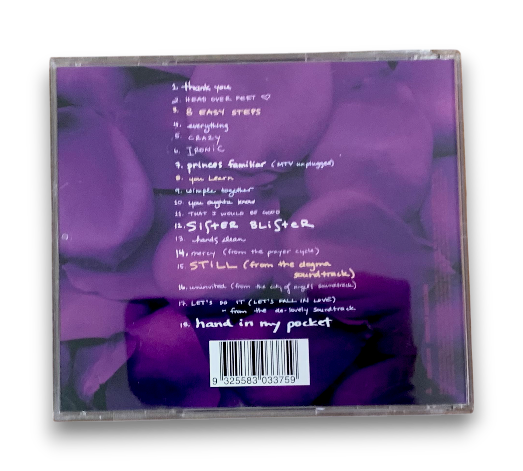 This compilation album features 18 of Alanis Morissette's most recognizable hits, including "You Oughta Know," "Ironic," "Uninvited," and "Thank You." Released in 2005 by Maverick Recording Company, it showcases a collection of her personal favorites alongside chart-topping singles. The CD packaging includes vibrant artwork and a detailed booklet, which provides insights into the tracks. For a closer look at the album's contents and design, please refer to the accompanying photos.