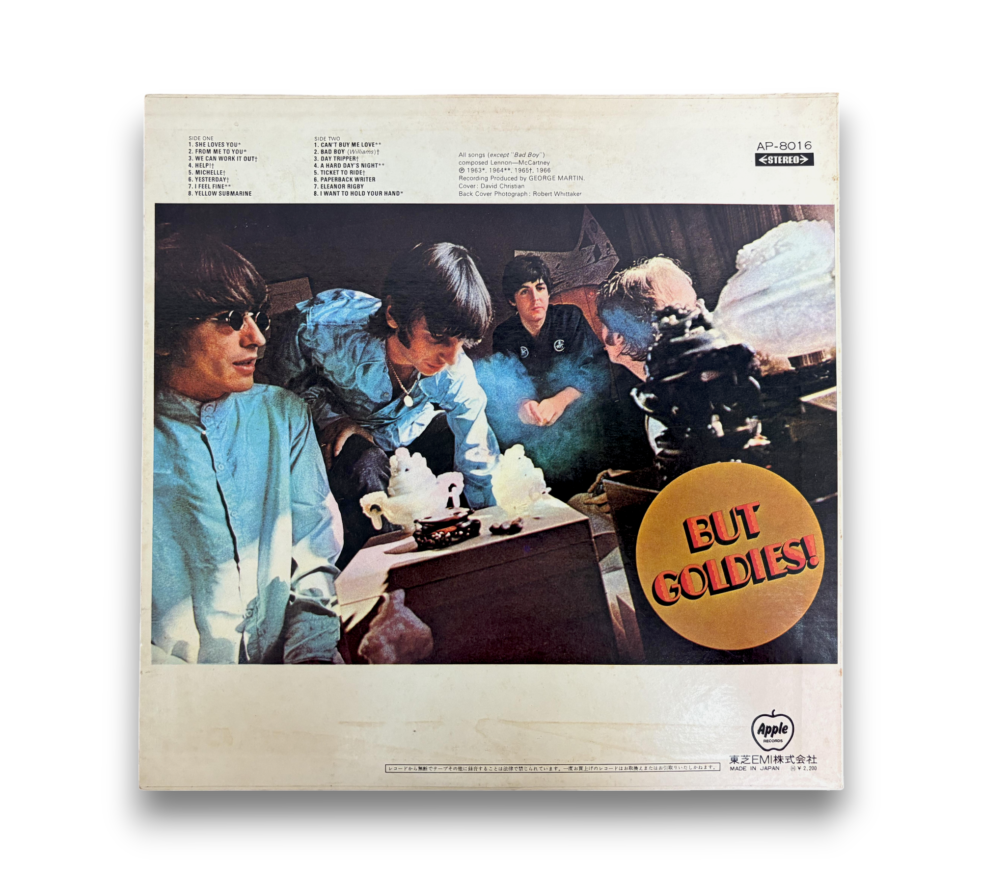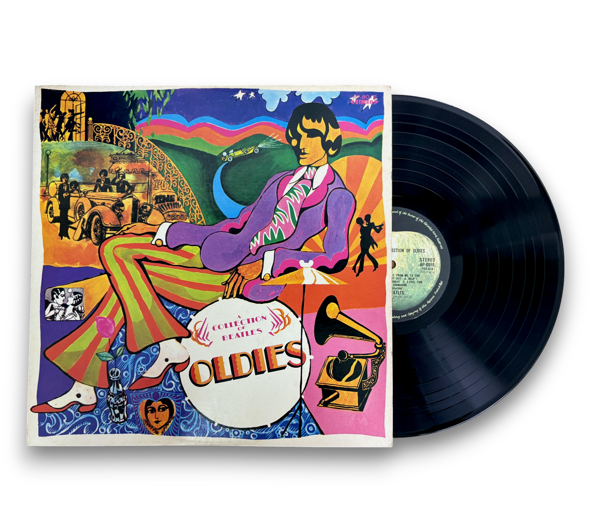 Discover the timeless classics of The Beatles with "A Collection Of Beatles Oldies," a unique vinyl release from Japan in 1973. This edition features a reversed back cover photograph and includes a black inner sleeve along with a four-page booklet containing Japanese text and English lyrics. With iconic tracks like "She Loves You," "Yesterday," and "I Want To Hold Your Hand," this compilation is a must-have for any Beatles fan. The Toshiba Musical Industries version showcases the band's enduring legacy in a beautifully packaged format.