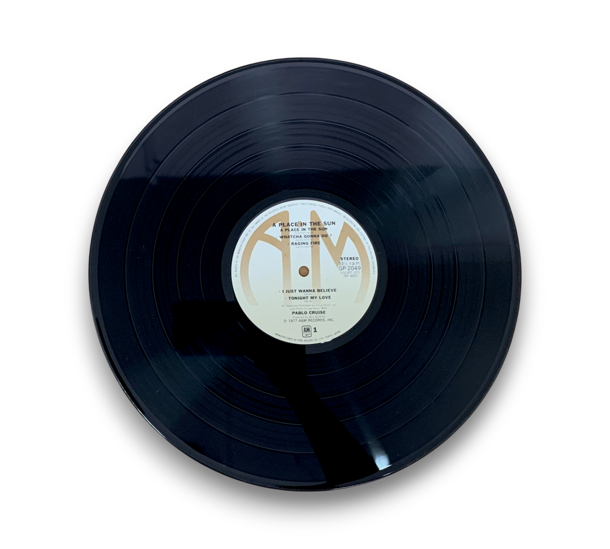 ℗&© 1977 A&M Records, Inc. This listing features the album "A Place in the Sun" by Pablo Cruise. The record includes a lyric sheet, as confirmed by the images provided. For further details regarding the condition and specifics of the packaging, please refer to the accompanying photos.
