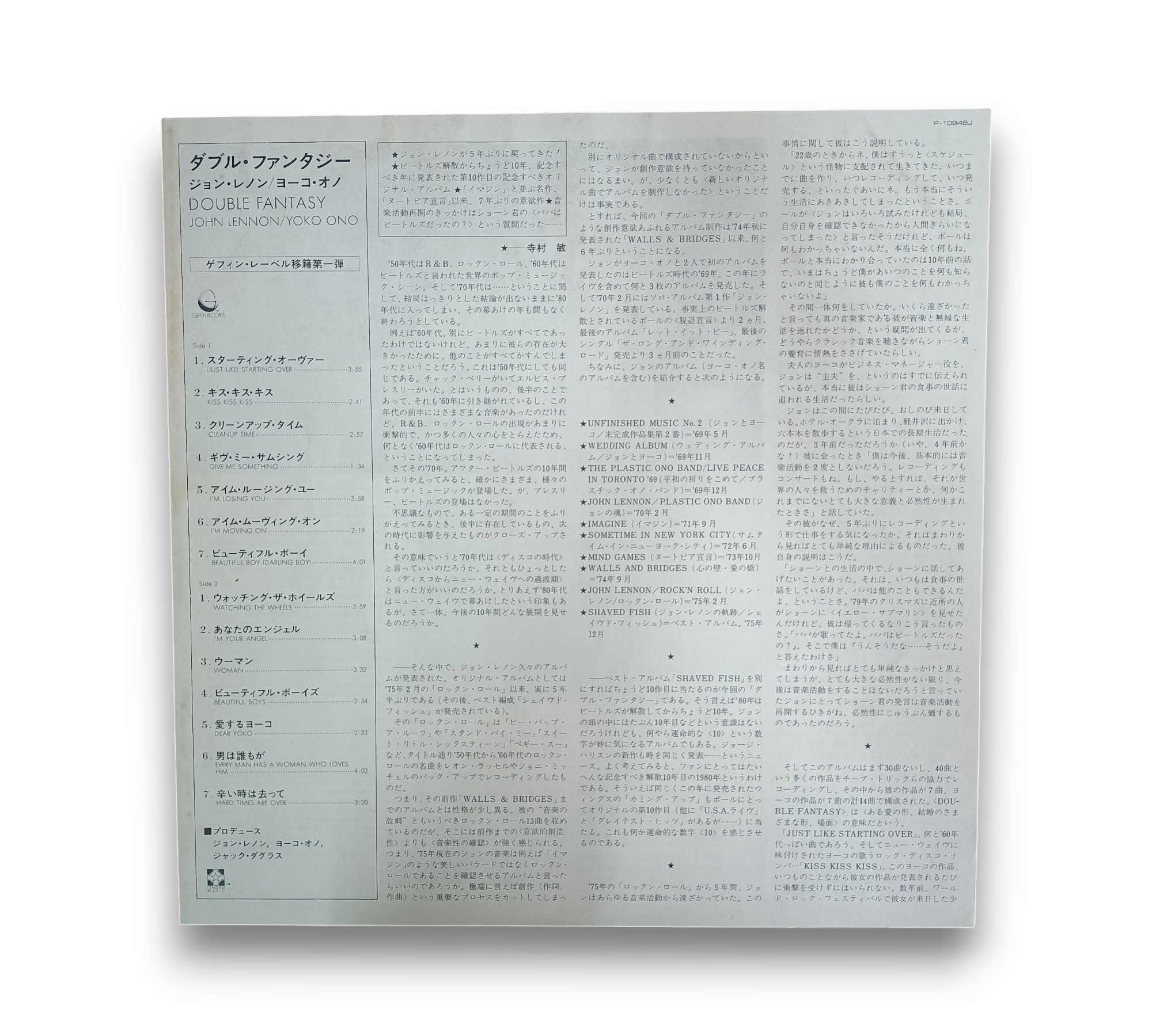 Label/Cat No: Geffen Records P-10948J