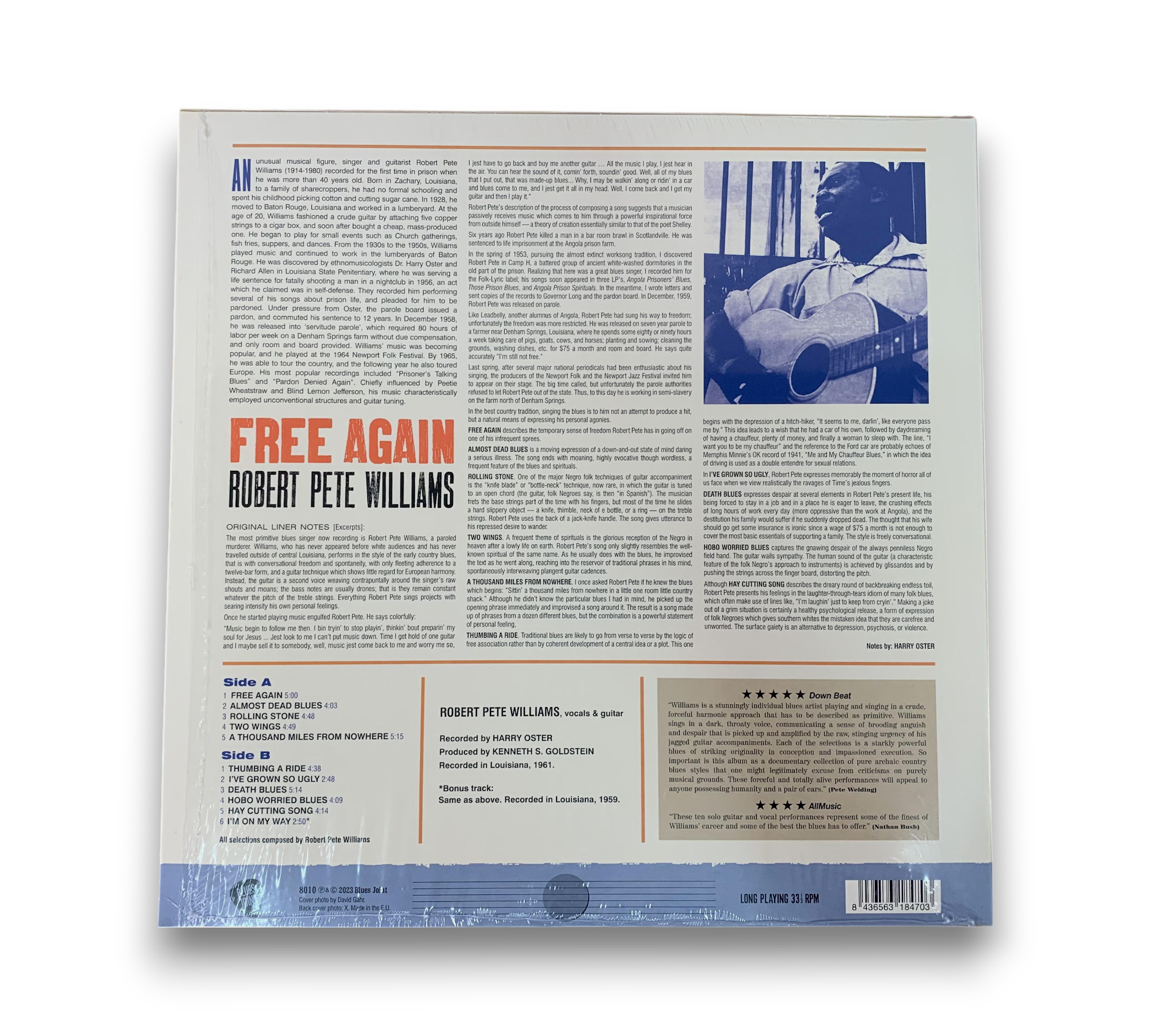 Discover the soulful sounds of Robert Pete Williams with "Free Again," a captivating vinyl release from 2023. This album showcases the essence of Louisiana Blues, featuring heartfelt tracks like "Free Again," "Rolling Stone," and "I've Grown So Ugly." With its rich storytelling and authentic blues style, this record is a must-have for fans of the genre. Experience the depth of Williams' artistry and the timeless appeal of blues music in this exquisite European pressing.