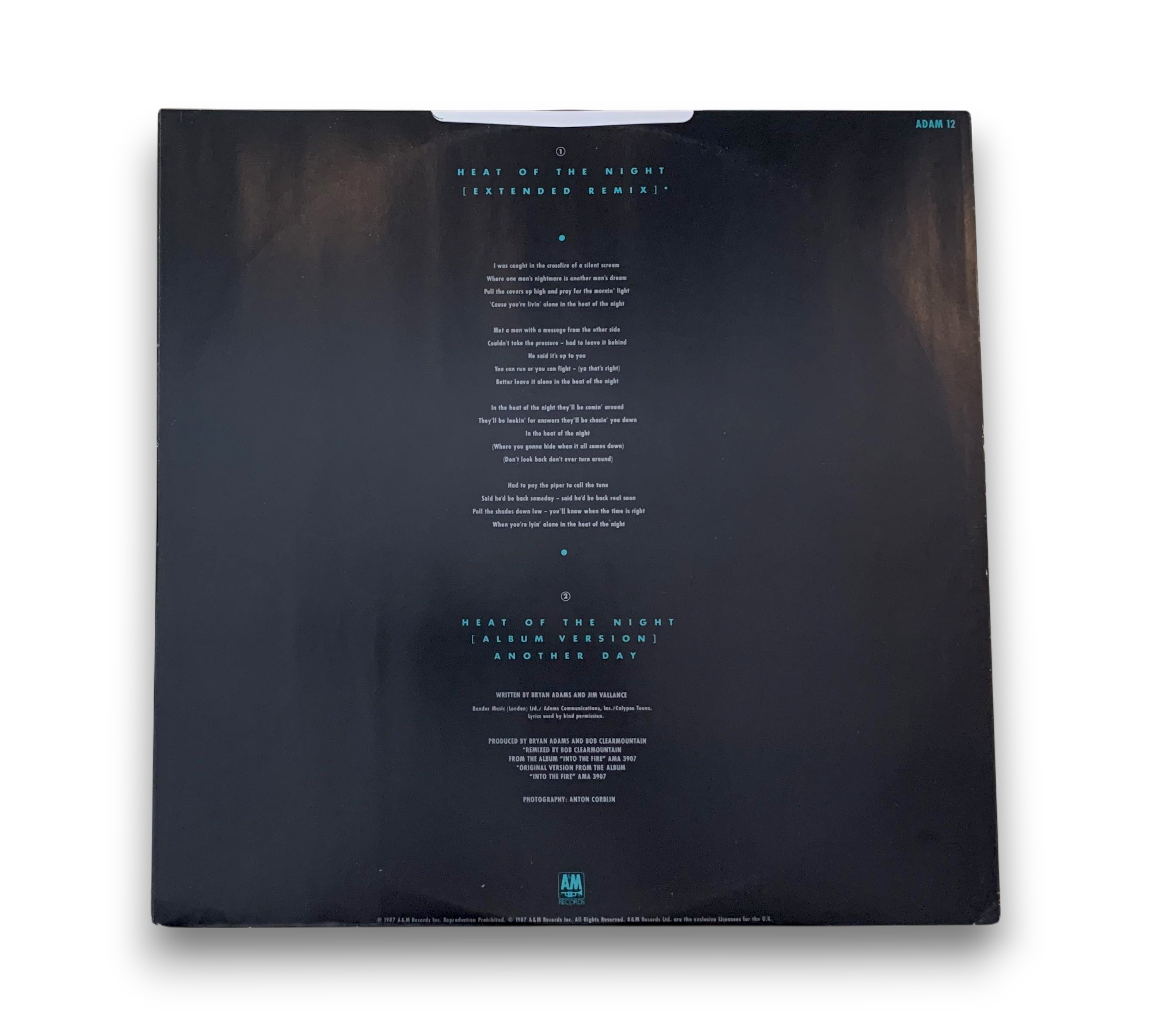 Experience the electrifying sounds of Bryan Adams with the 1987 UK release of "Heat of the Night." This vinyl features the extended remix of the title track alongside the album version and the captivating "Another Day." Housed in a striking black and white cover, this Pop Rock gem is a must-have for fans and collectors alike. For details on condition and packaging, please refer to the accompanying photos.