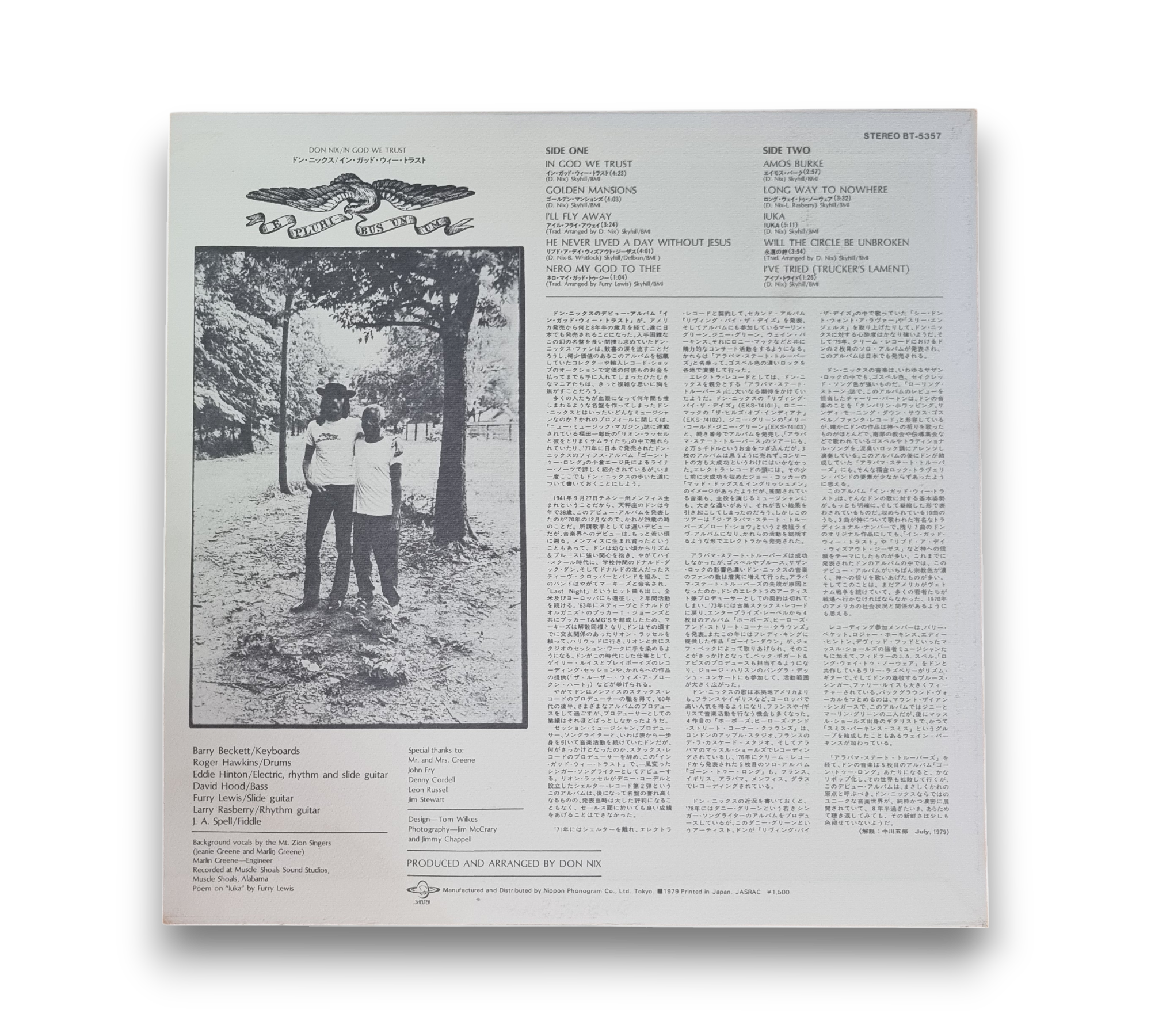 Experience the soulful sounds of Don Nix with his 1979 album "In God We Trust," a captivating blend of Southern Rock. This vinyl release from Japan features heartfelt tracks like "Golden Mansions," "I'll Fly Away," and the poignant "Will The Circle Be Unbroken." With its rich instrumentation and powerful lyrics, this album is a testament to Nix's artistry and a must-have for rock enthusiasts.