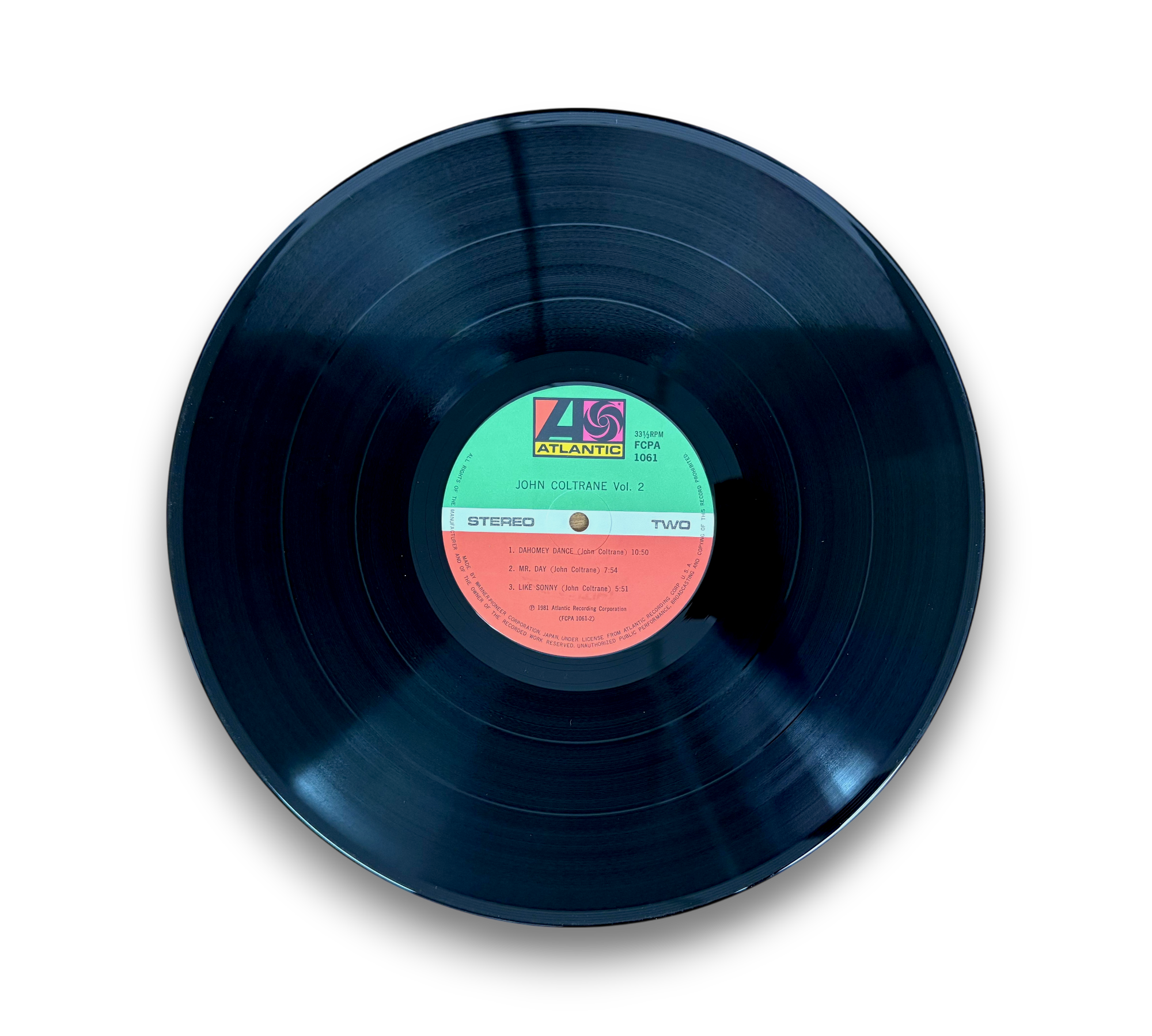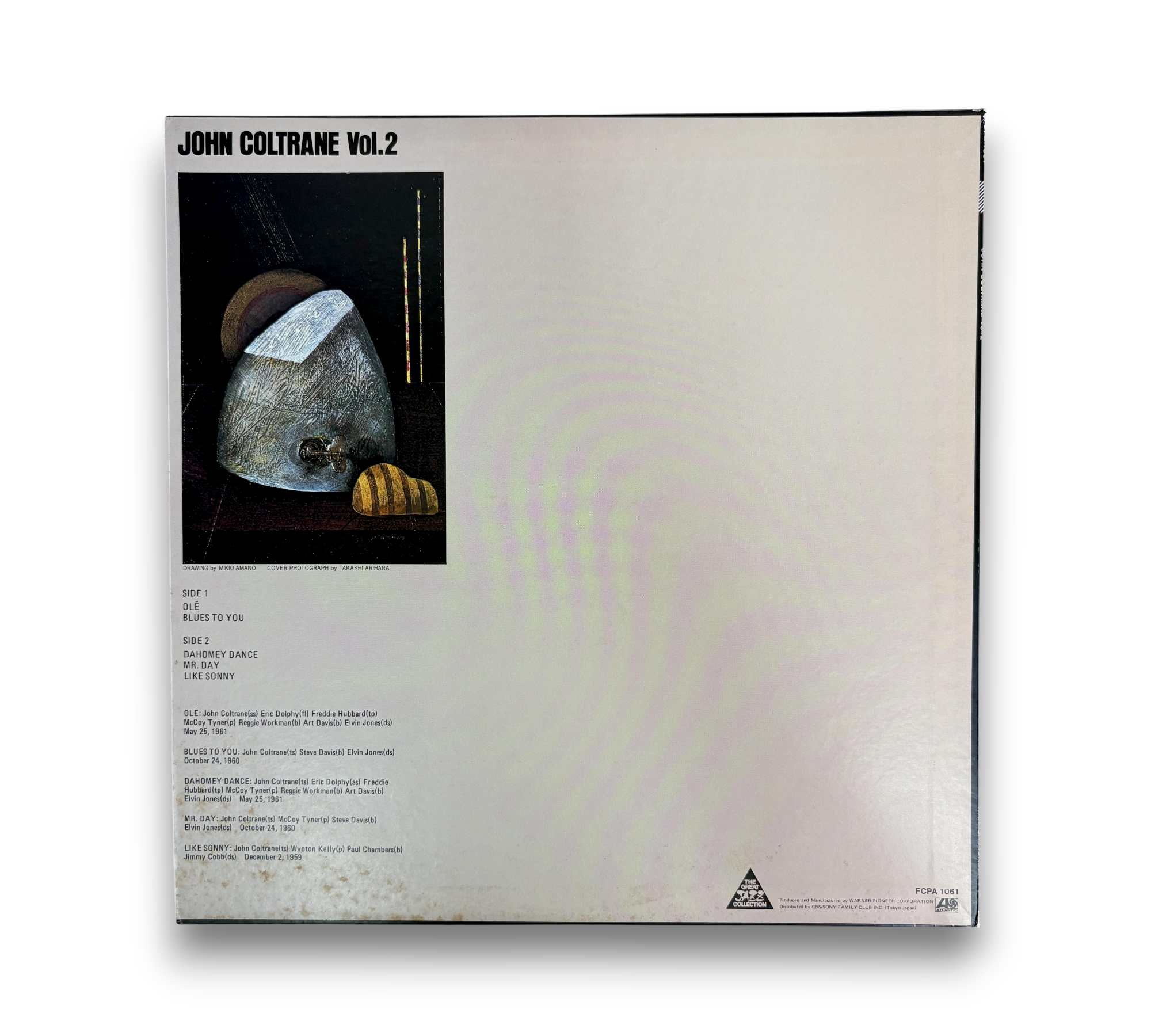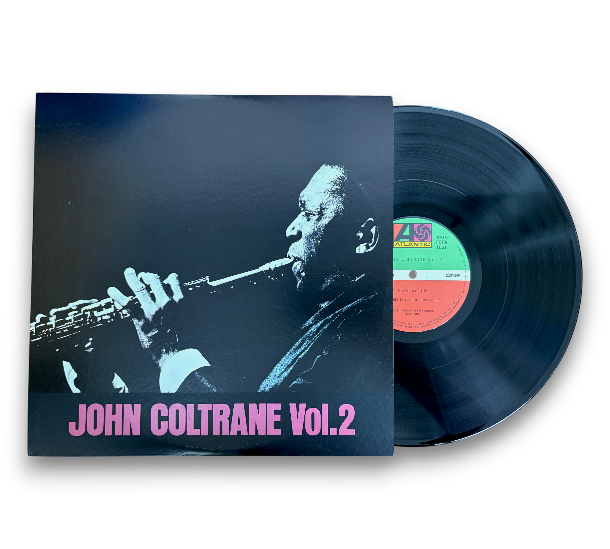 This listing features "John Coltrane Vol. 2," showcasing a collection of tracks recorded at Atlantic Studios in New York. The album includes notable selections such as "Ole," "Blues to You," "Dahomey Dance," "Mister Day," and "Like Sonny," with recording dates spanning from 1959 to 1961. The vinyl is presented in a striking cover, and the back displays the tracklist along with additional details. For a closer look at the condition and specifics of the packaging, please refer to the accompanying photos.