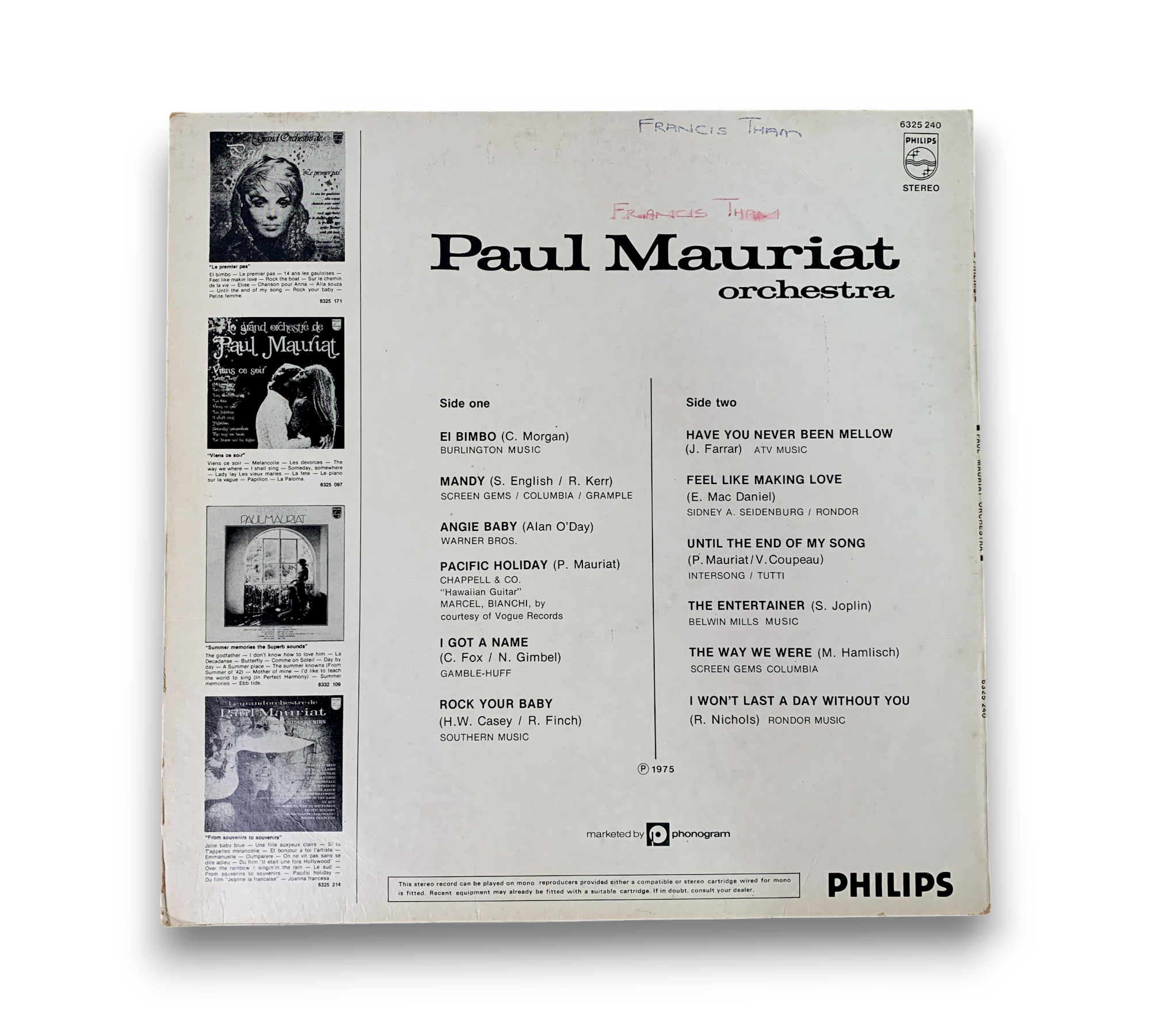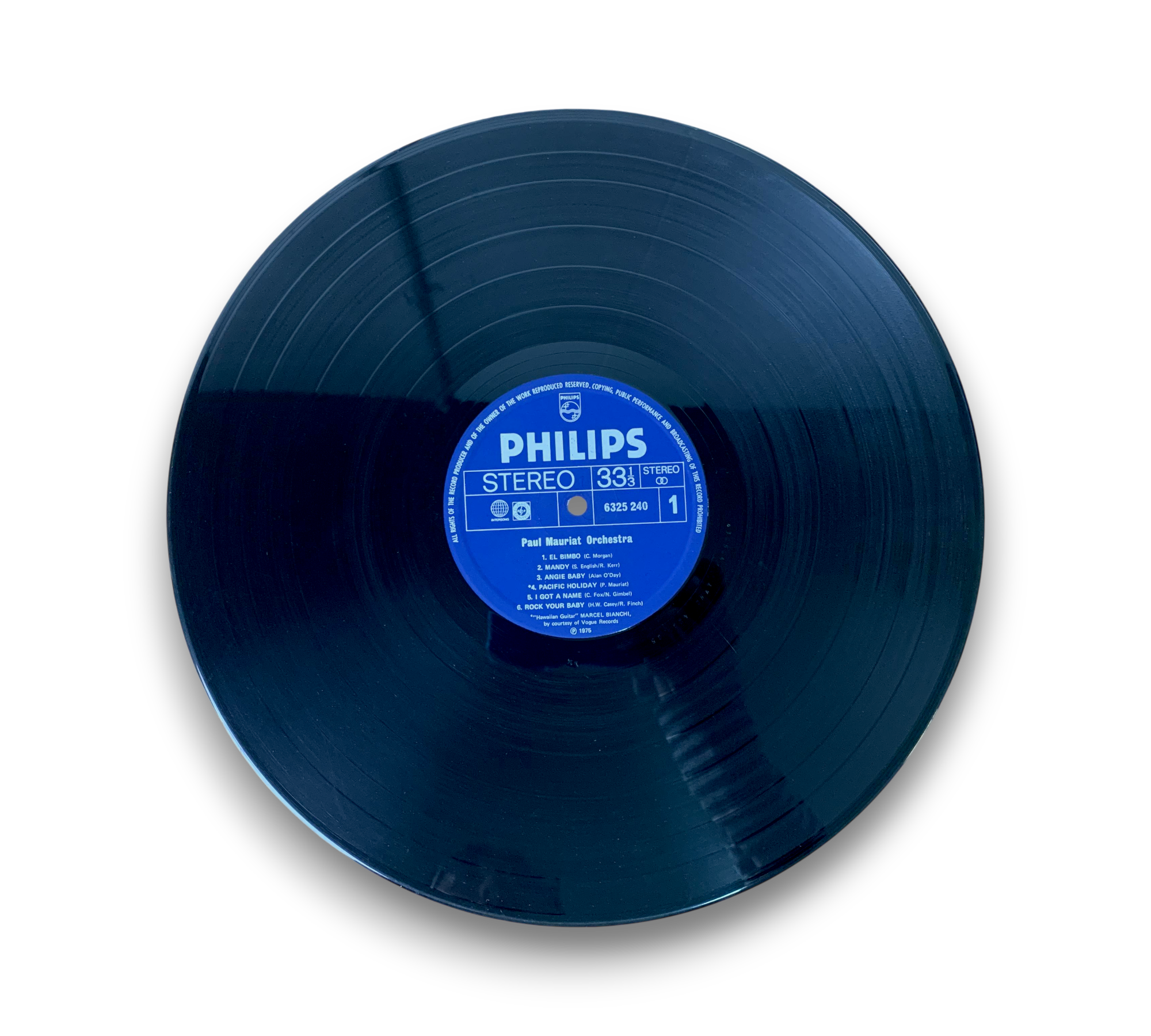 This record features the Paul Mauriat Orchestra and includes popular tracks such as "El Bimbo," "Mandy," and "Rock Your Baby." The label displays Intersong and copyright control signs, confirming its authenticity. For a closer look at the condition and details of the packaging, please refer to the accompanying photos.