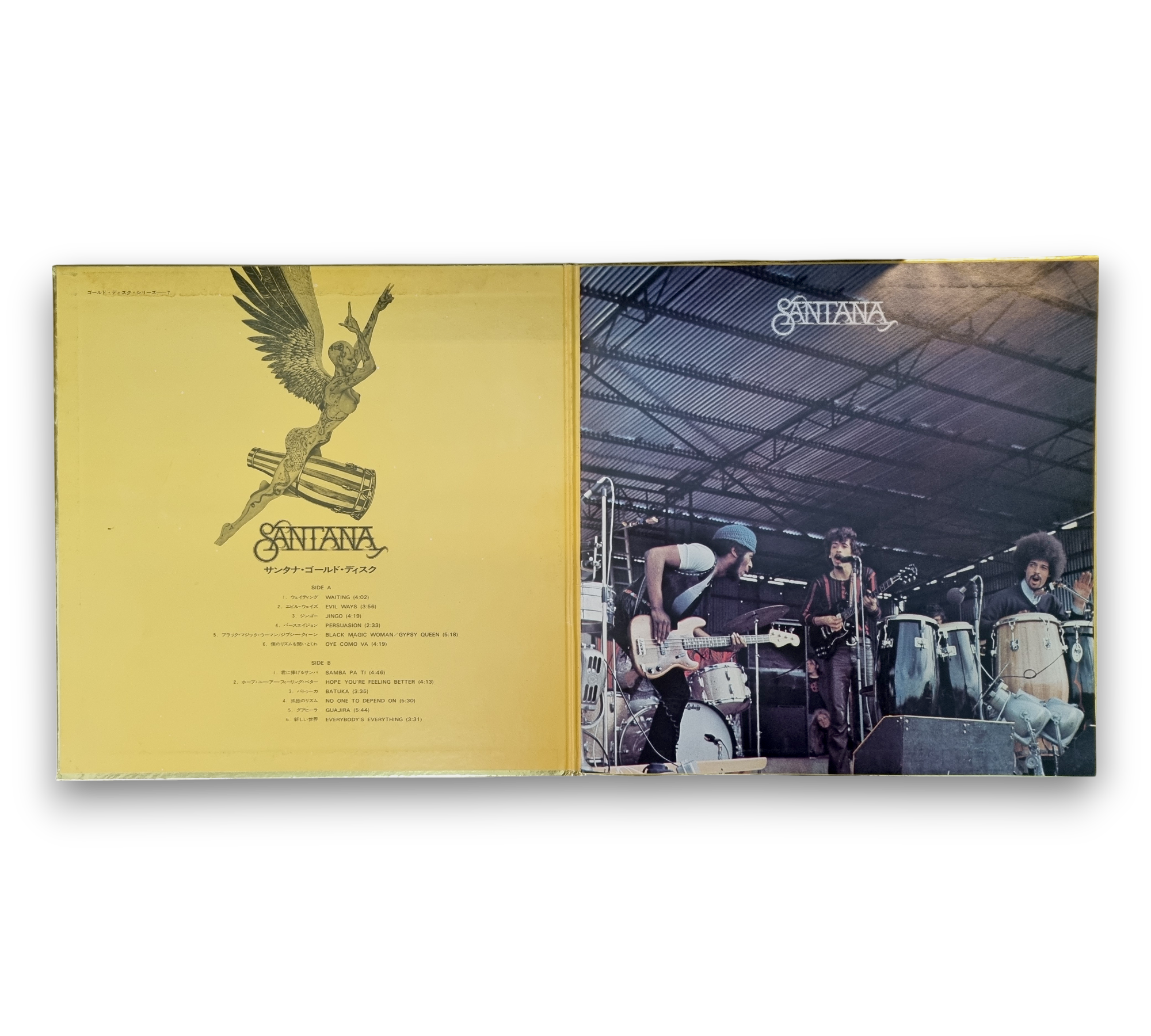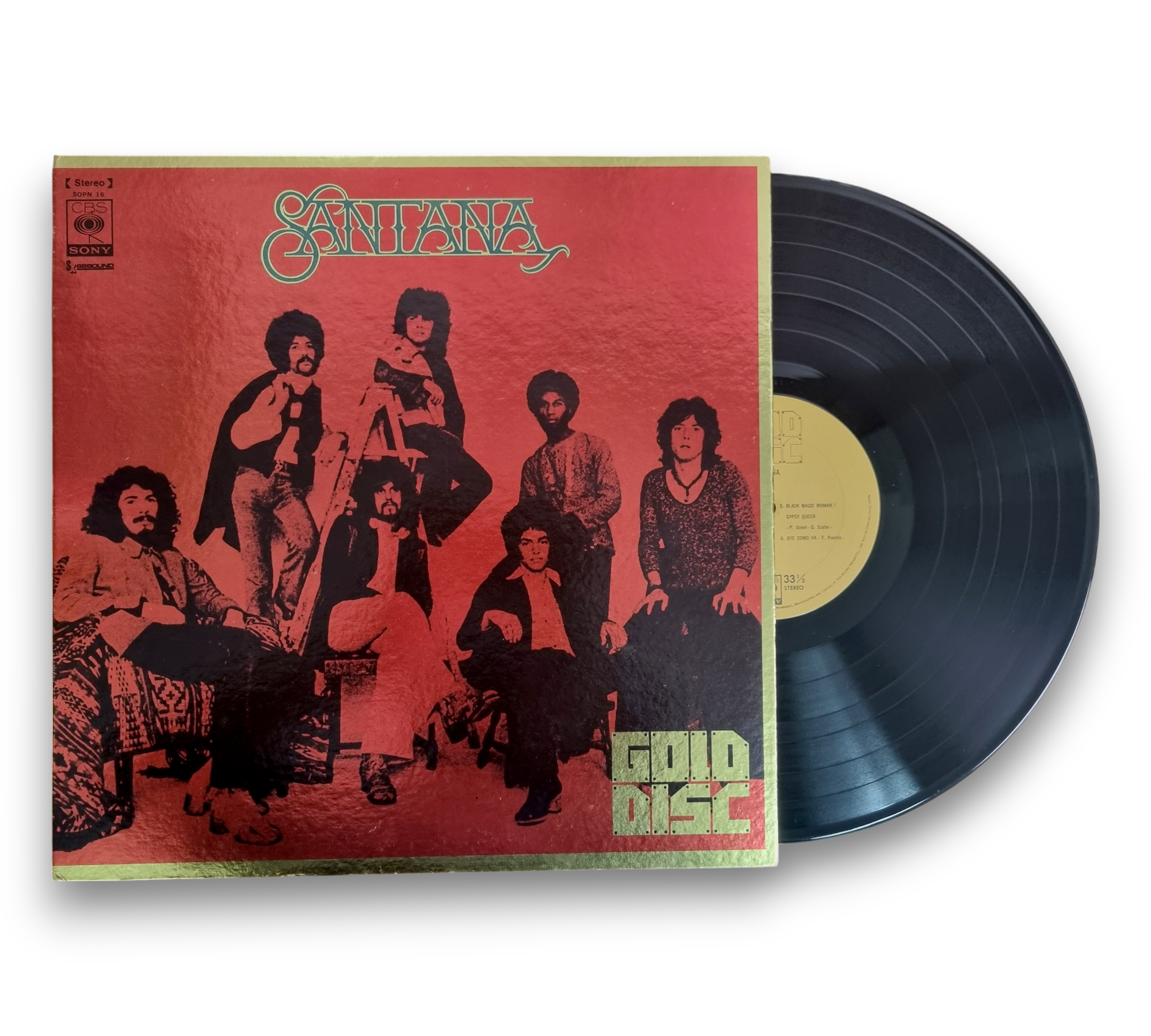 This record features the iconic music of Santana, specifically from the album "Santana, Abraxas, Santana III." It is presented with an attached 8-page full-size booklet that includes photos, credits, and lyrics. The packaging may also include a Gold Disc company advertisement inner sleeve. For further details regarding the condition and specific elements of the packaging, please refer to the accompanying photos.