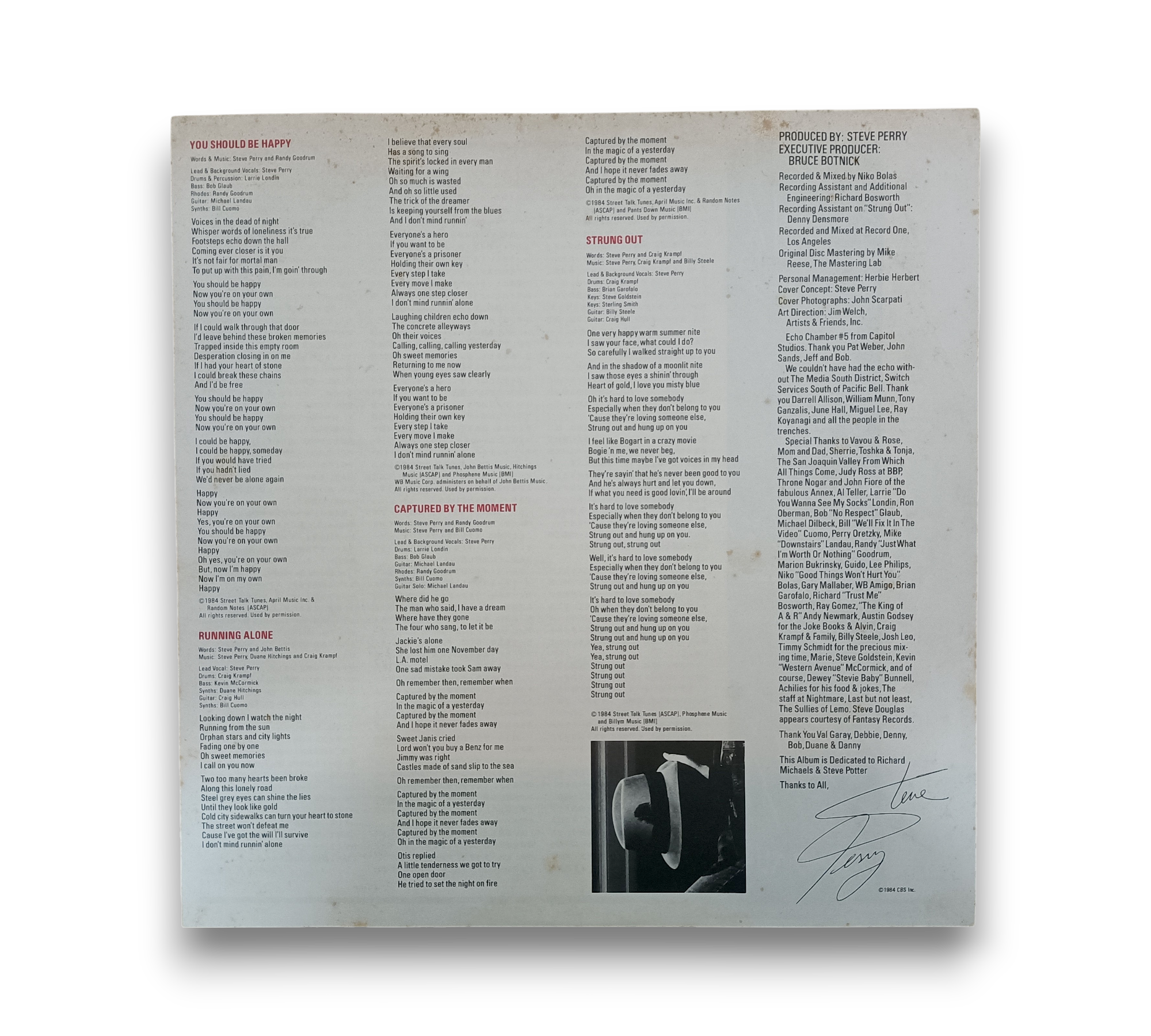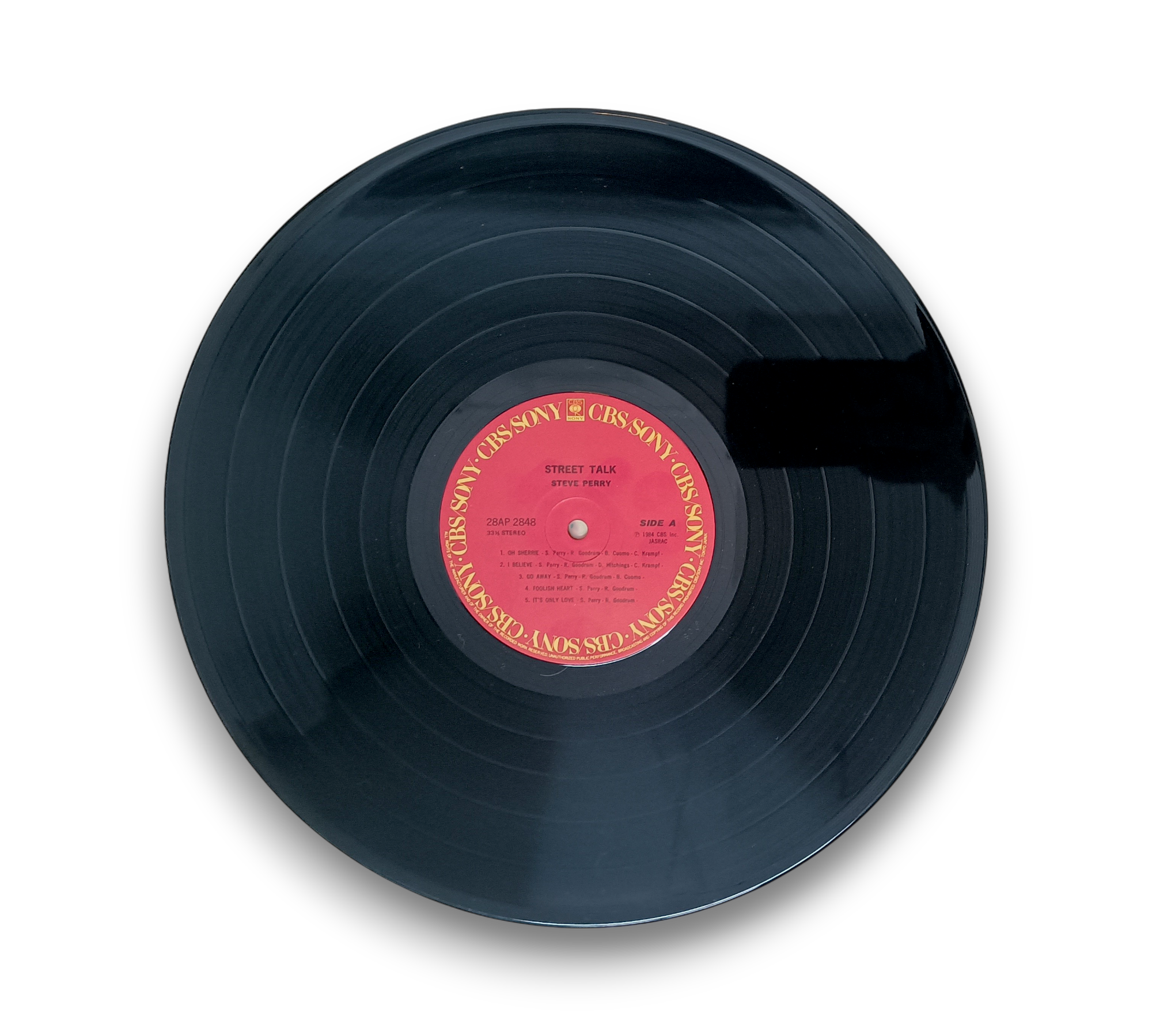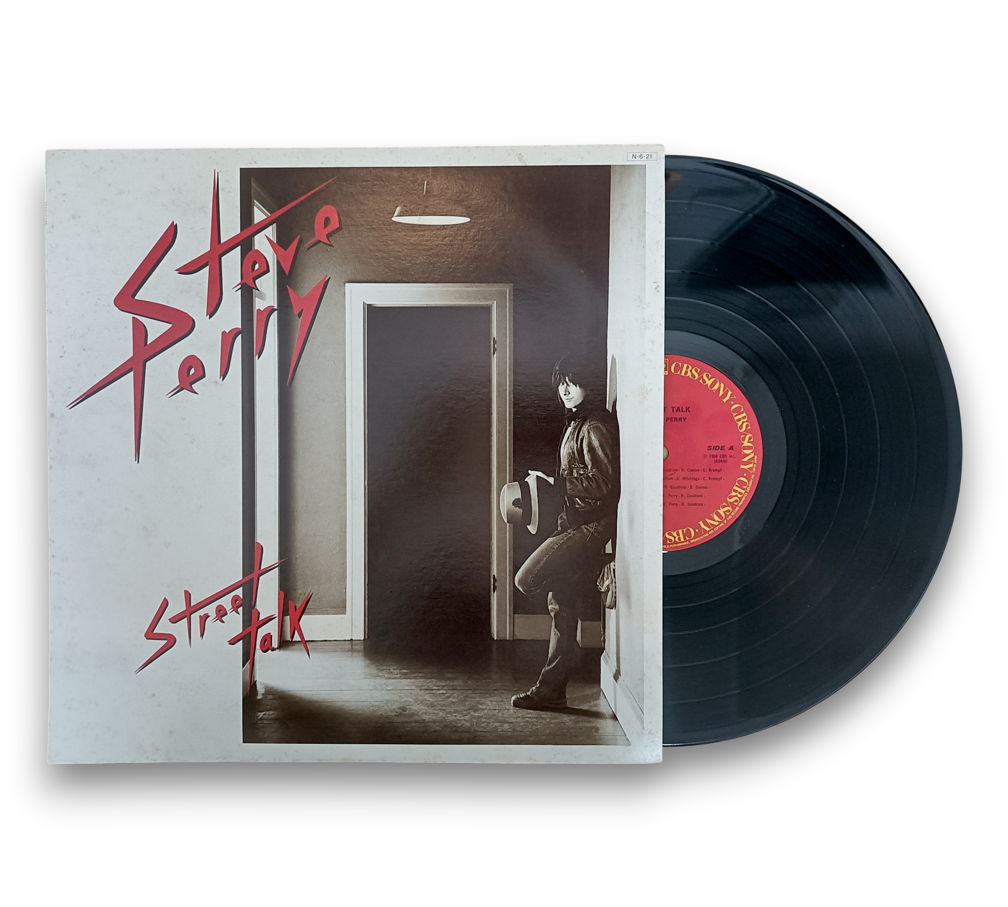 ℗&©1984 CBS, Inc. This record features the album "Street Talk" by Steve Perry, manufactured by CBS/Sony Inc. in Tokyo, Japan. The images provided showcase the album cover and vinyl, which highlight the iconic design and vibrant colors associated with this release. For further details regarding the condition and specific features of the packaging, please refer to the accompanying photos.