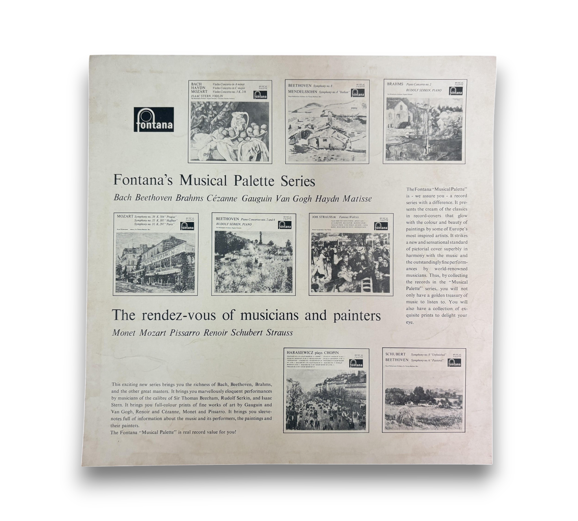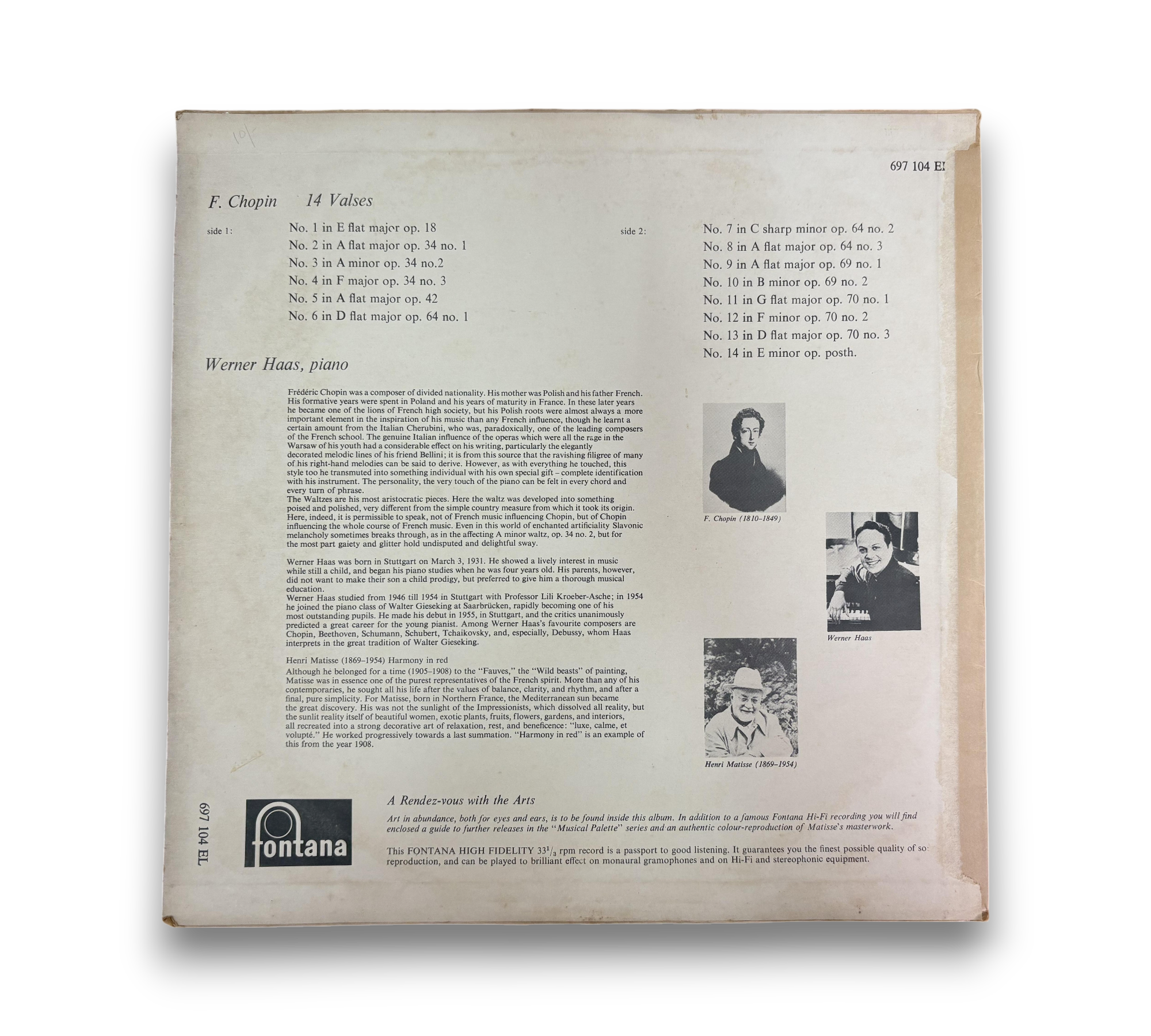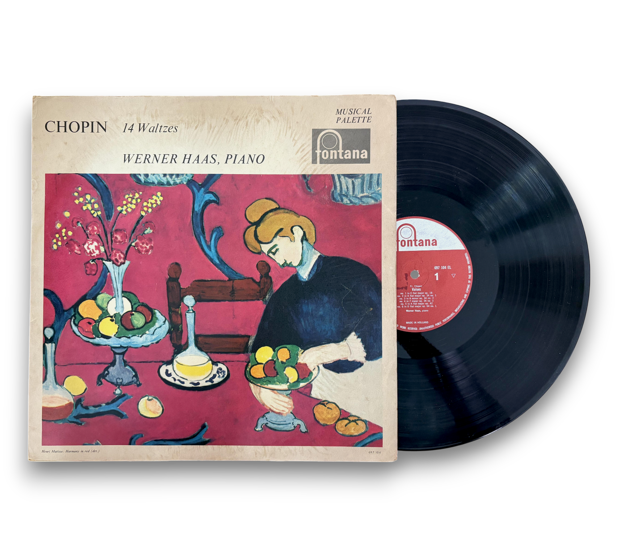 This listing features "Chopin: 14 Waltzes," performed by Werner Haas on the Fontana label. The record showcases a collection of Chopin's waltzes, highlighting the artist's expressive piano interpretations. The cover art is vibrant and engaging, reflecting the musical palette theme of the series. For details regarding the condition of the packaging and any included inserts, please refer to the accompanying photos.