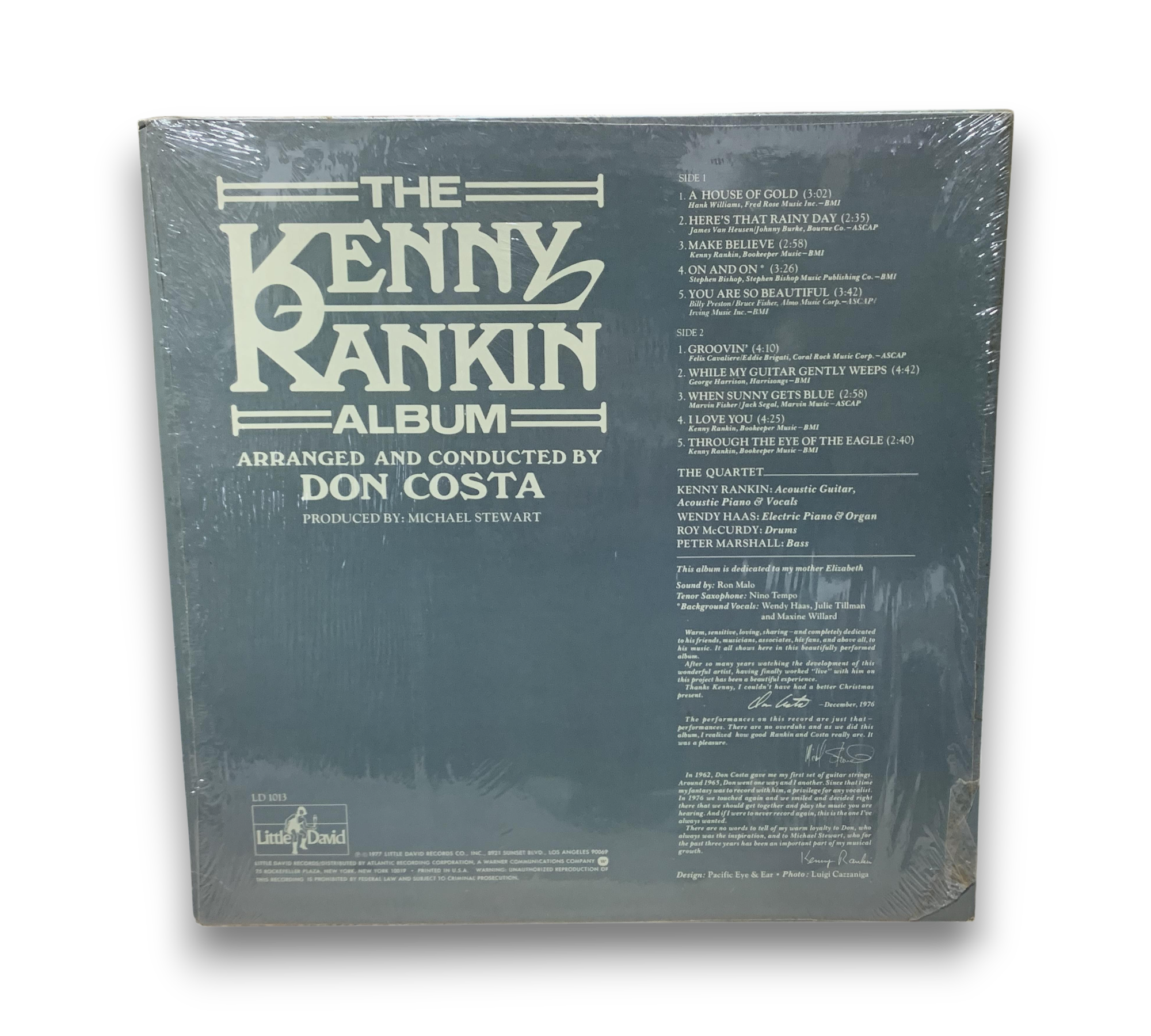 The Kenny Rankin Album features arrangements by Don Costa and is produced by Michael Stewart. The record is pressed by Little David Records, as indicated by the label. The matrix includes "SP" and "PR," confirming its pressing variant. The Artisan Sound Recorders logo is present in the runouts, resembling an LP record flanked by diagonal strokes forming the letter "A." For further details regarding the packaging and inserts, please refer to the accompanying photos.