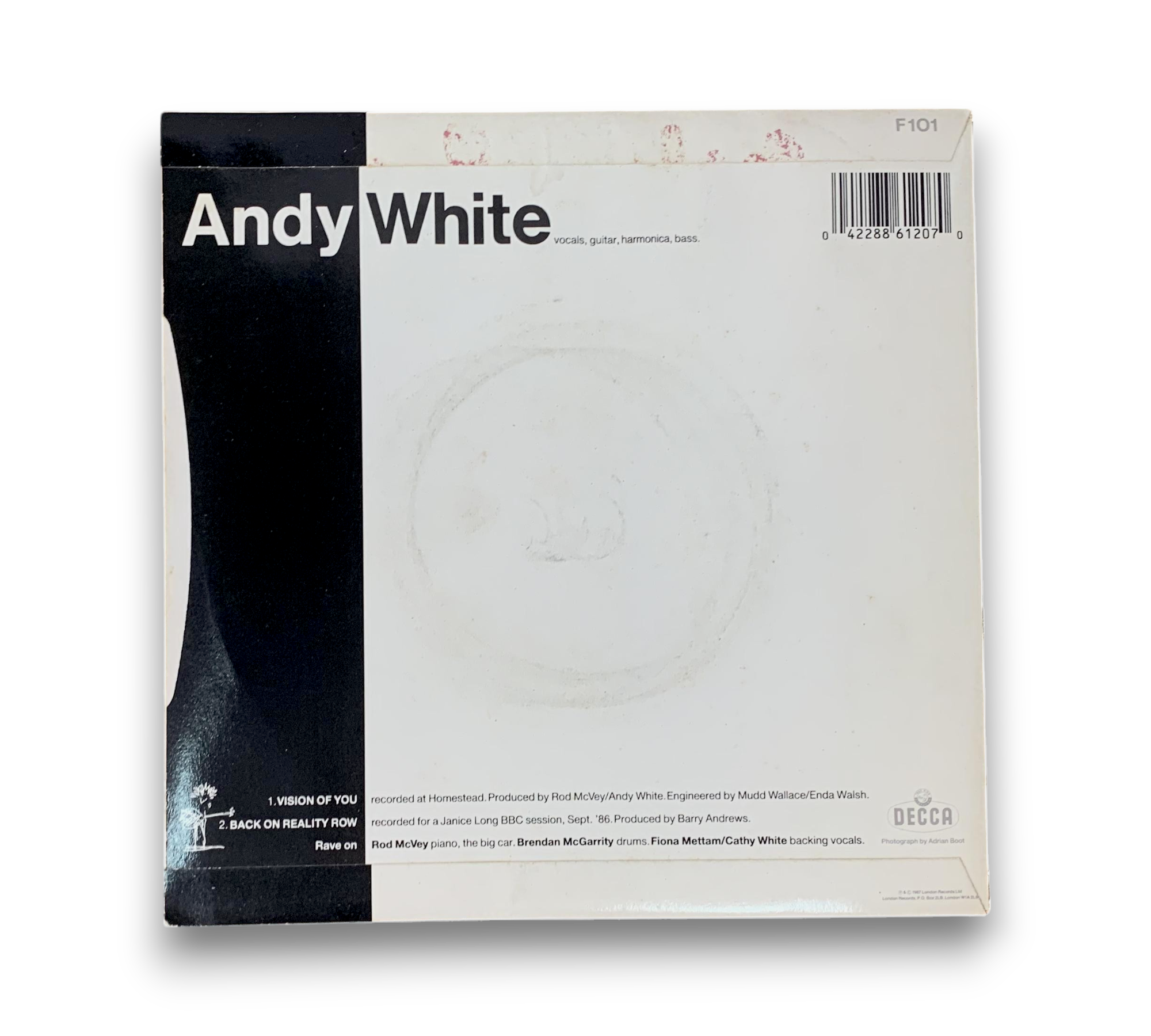 Discover the captivating sounds of Andy White's "Vision Of You," a 1987 UK release that beautifully blends rock, pop, and folk influences. This vinyl features two enchanting tracks: the title track "Vision Of You" and "Back On Reality Row," showcasing White's unique vocal style and folk rock sensibilities. A must-have for fans of the genre, this record offers a glimpse into the artistry of one of the era's notable singer-songwriters.