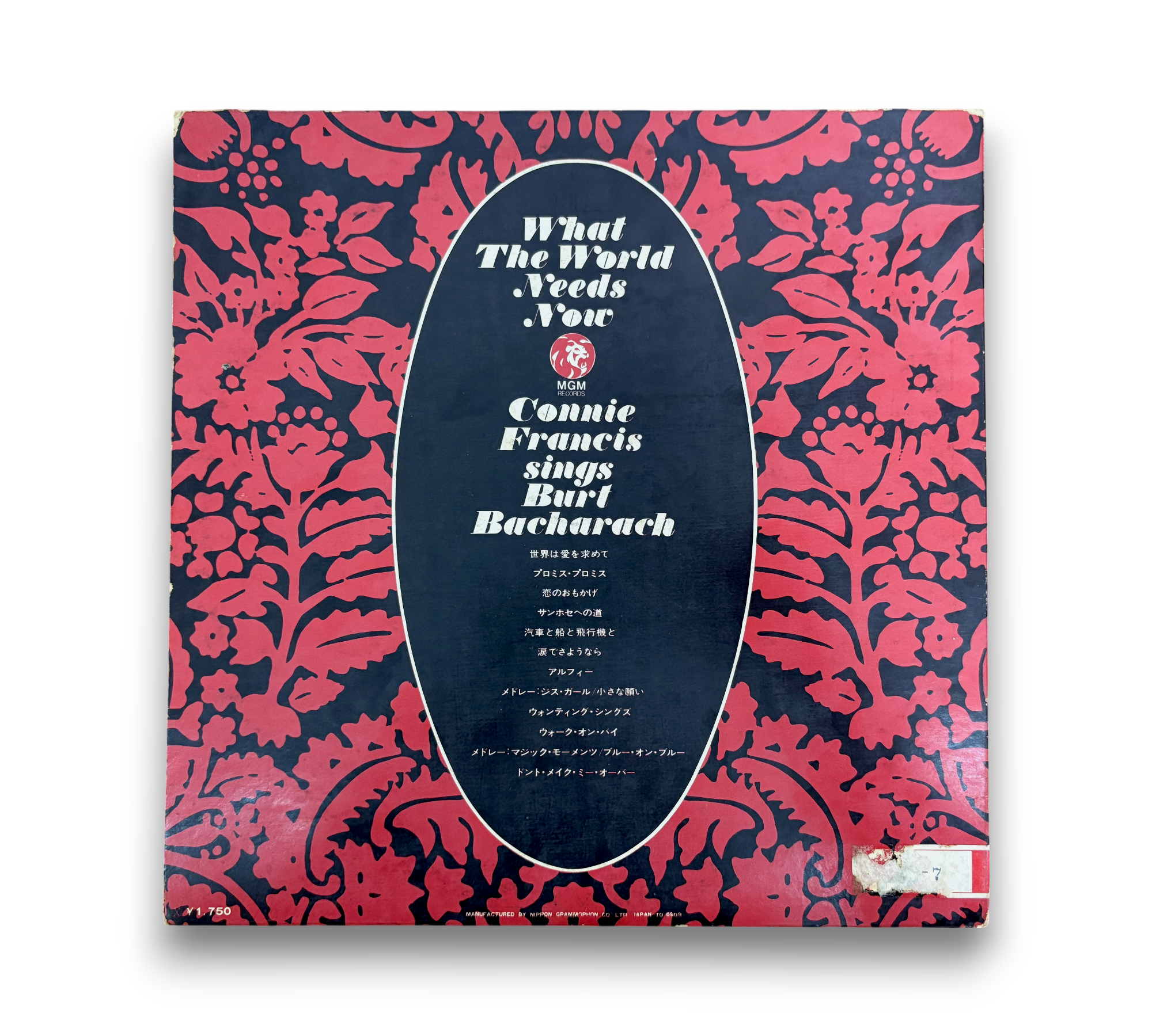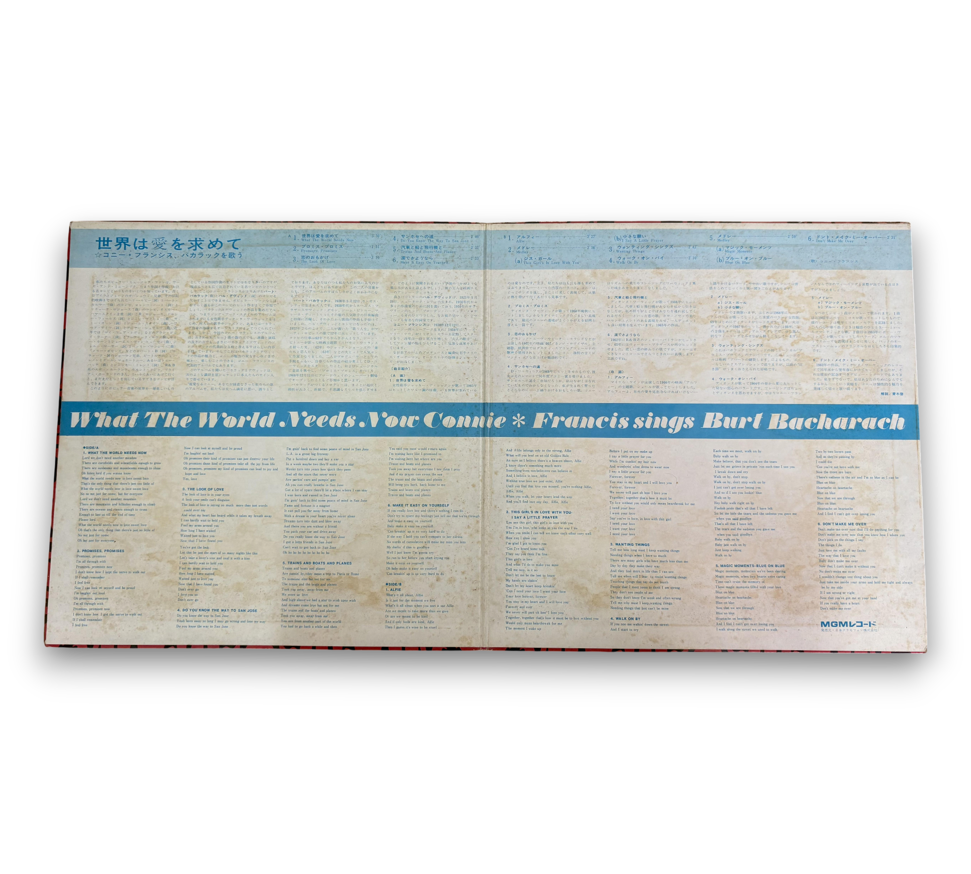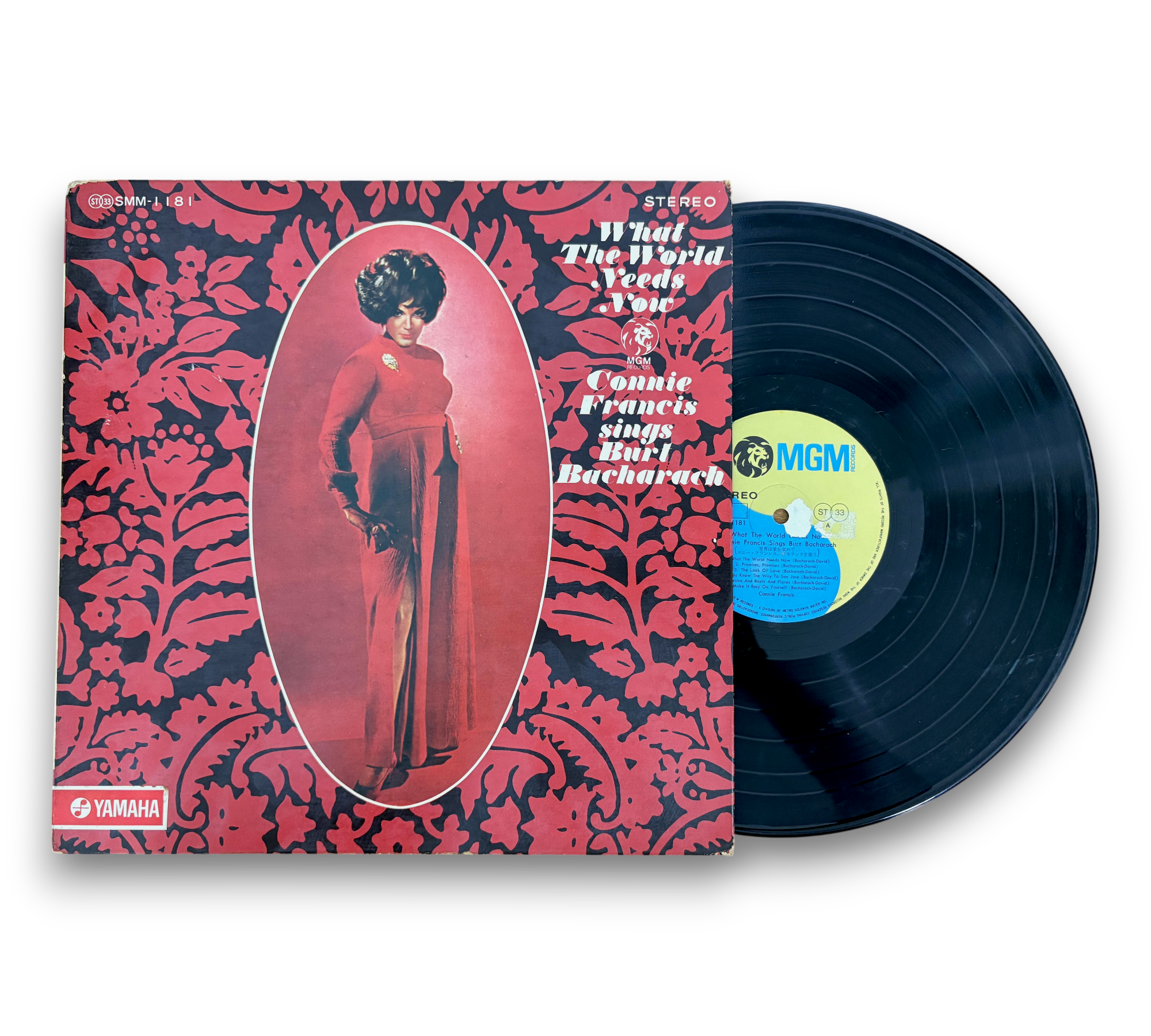 This is a Japanese blue and gold label release of "What The World Needs Now" by Connie Francis, featuring songs by Burt Bacharach. The record is housed in a gatefold cover, with the catalog number "SMM-1181" displayed on the front cover and "SMM 1181" appearing on the center labels. For further details regarding the condition and any included inserts, please refer to the accompanying photos.