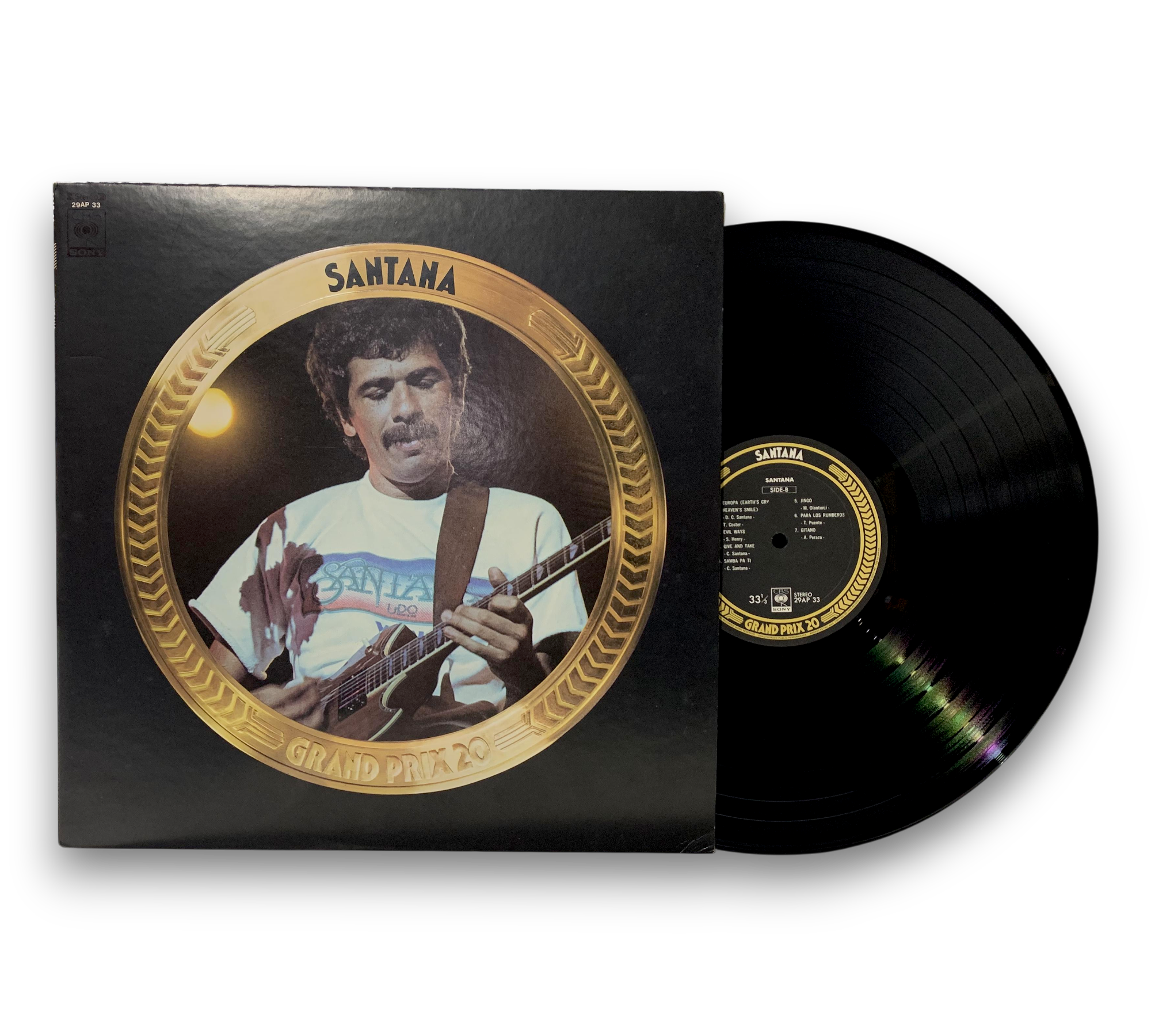 Experience the vibrant fusion of rock and Latin rhythms with Santana's "Grand Prix 20," released in Japan in 1976. This vinyl record comes in an embossed sleeve and includes a four-page lyrics sheet, enhancing your listening experience. Featuring iconic tracks like "Black Magic Woman," "Oye Coma Va," and "Europa (Earth's Cry Heaven's Smile)," this album showcases Santana's unparalleled artistry. For details on the condition and packaging, please refer to the provided photographs.