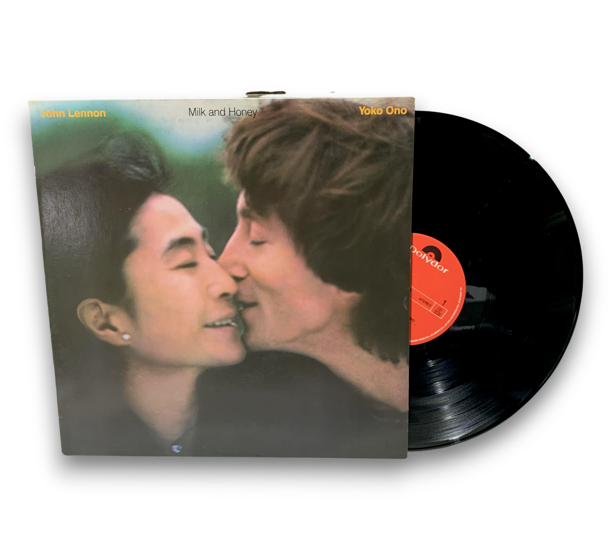 This listing features the album "Milk and Honey" by John Lennon and Yoko Ono, presented in a gatefold sleeve. The record includes a 4-page Japanese/English lyrics insert, as confirmed by the accompanying images. The album was recorded at notable studios such as Hit Factory and A and R Studios in New York, as well as The Automatt in San Francisco. Notably, the tracks “Grow Old With Me” and “Let Me Count The Ways” originate from original cassette recordings by John and Yoko. For further details regarding the packaging and inserts, please refer to the provided photos.