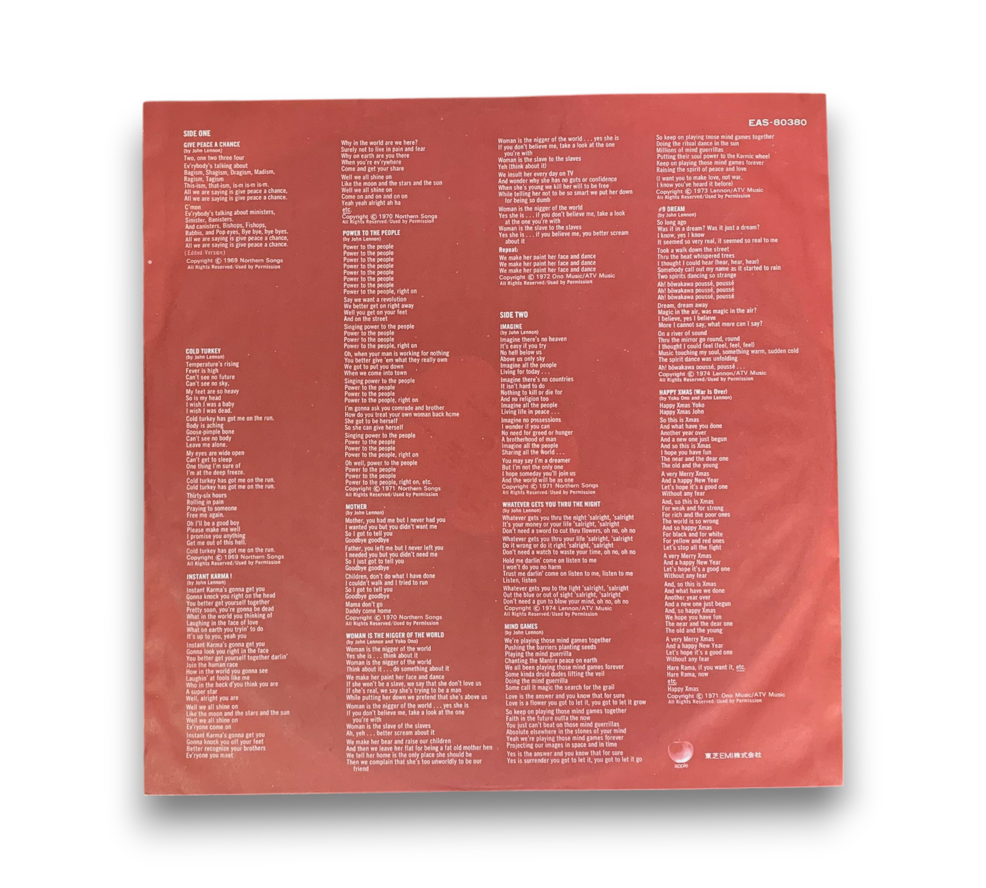 This record features a vibrant inner sleeve adorned with the Japan flag on one side and lyrics on the reverse. Additionally, it includes an insert with lyrics presented in Japanese. For a closer look at the packaging and inserts, please refer to the accompanying photos.