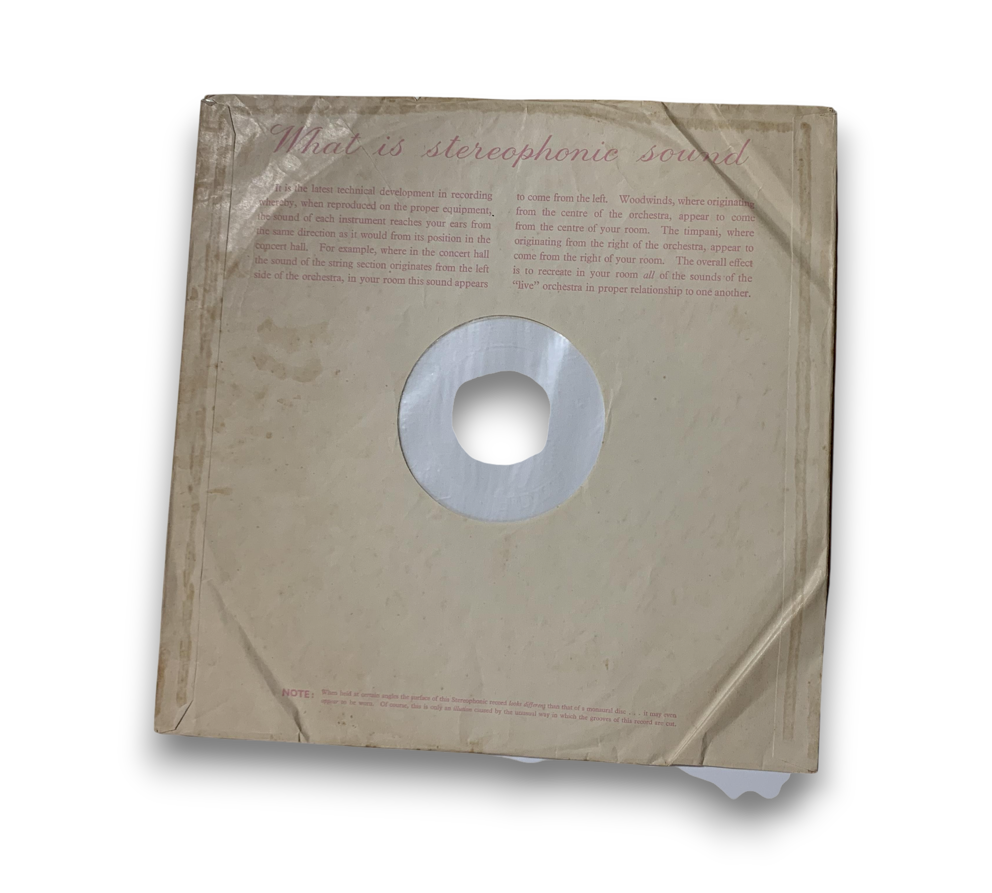 Many of the defects found in a VG+ sleeve will be more pronounced. Labels may be marred by writing, or have tape or stickers (or their residue) attached. The same may be true of picture sleeves or LP covers.