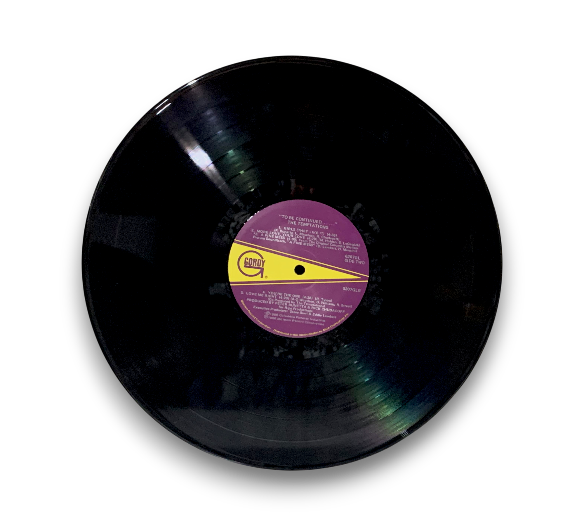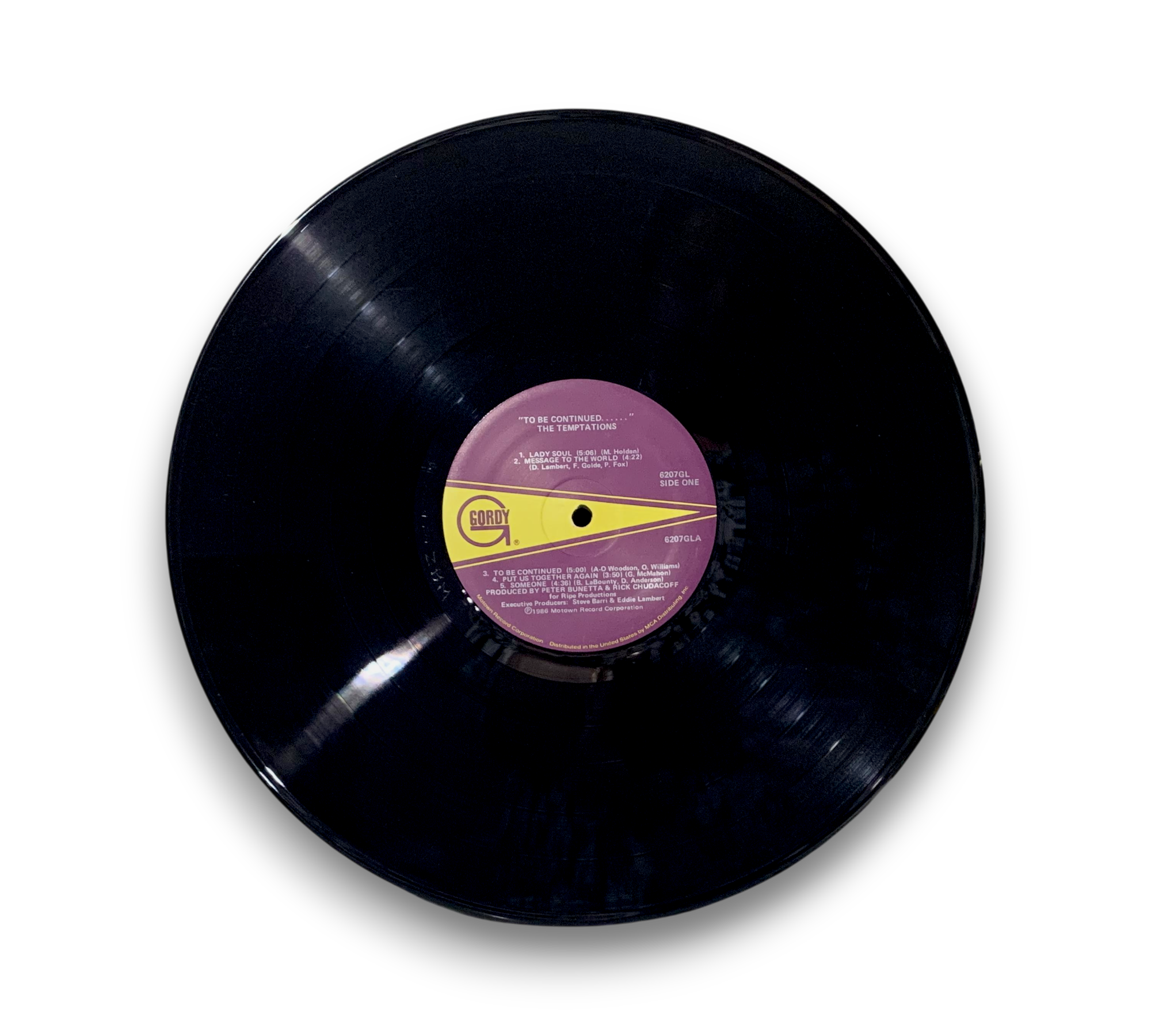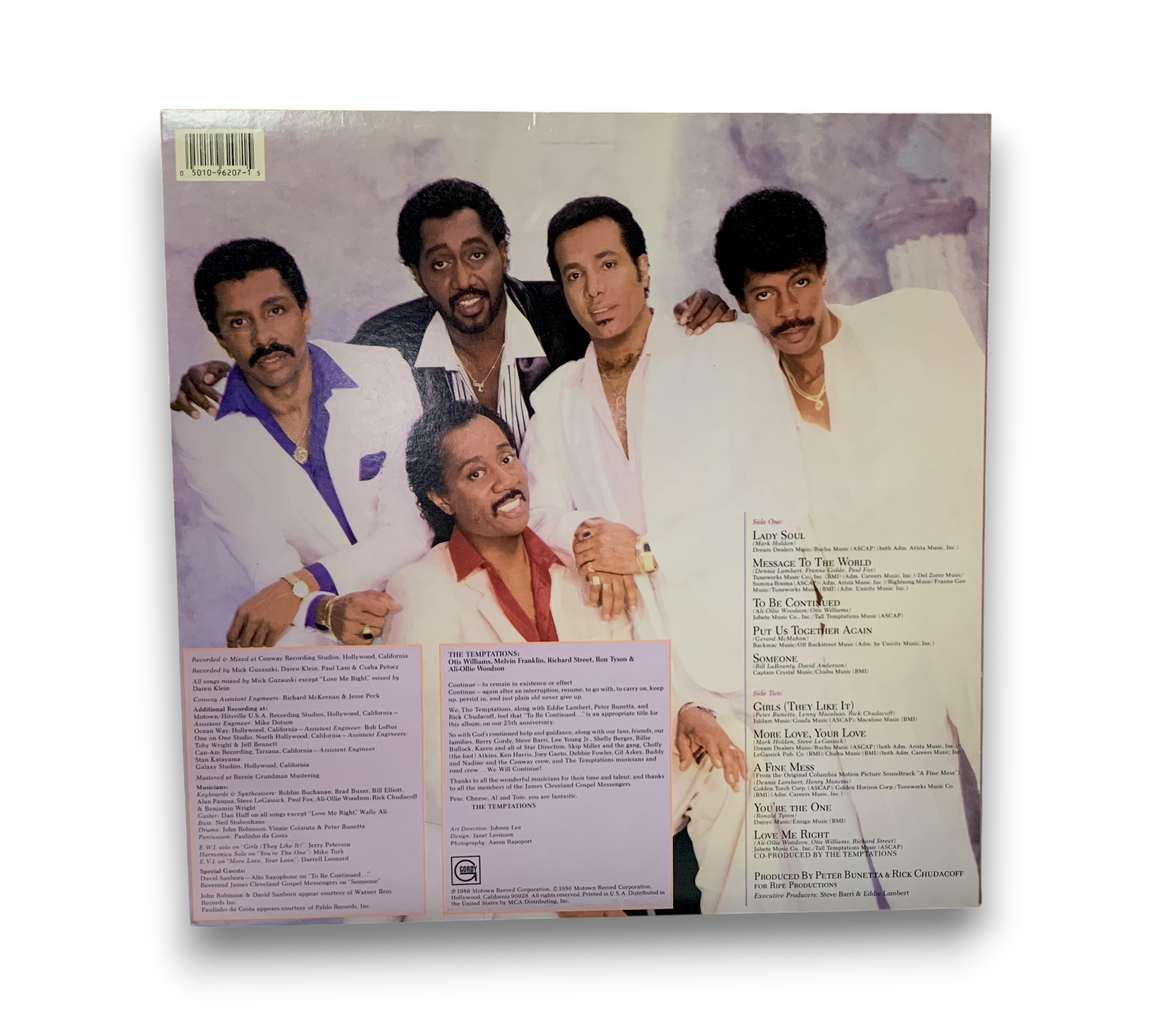 This listing features the original pressing of "To Be Continued..." by The Temptations, denoted by the two-step label area and the "Motown 25" logo on the labels. The record includes contributions from John Robinson, David Sanborn, and Paulinho da Costa, with the latter appearing courtesy of Pablo Records, Inc. The album was produced for Ripe Productions and recorded at various studios, including Conway Recording Studios and Motown/Hitsville Recording Studios. Please refer to the accompanying photos for details regarding the packaging and inserts, as this information may vary.