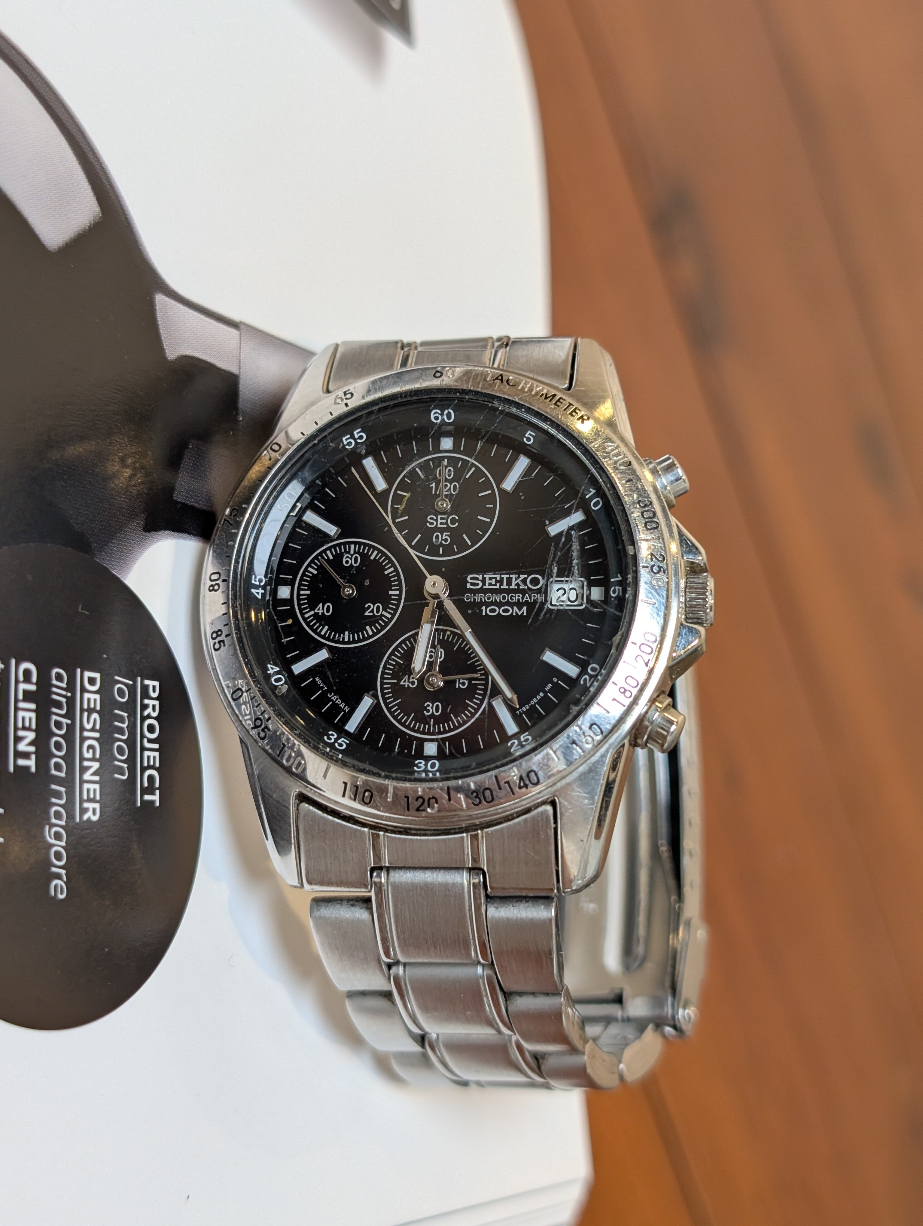 This watch features an analog quartz Seiko 7T92 movement, produced in the 2000s.