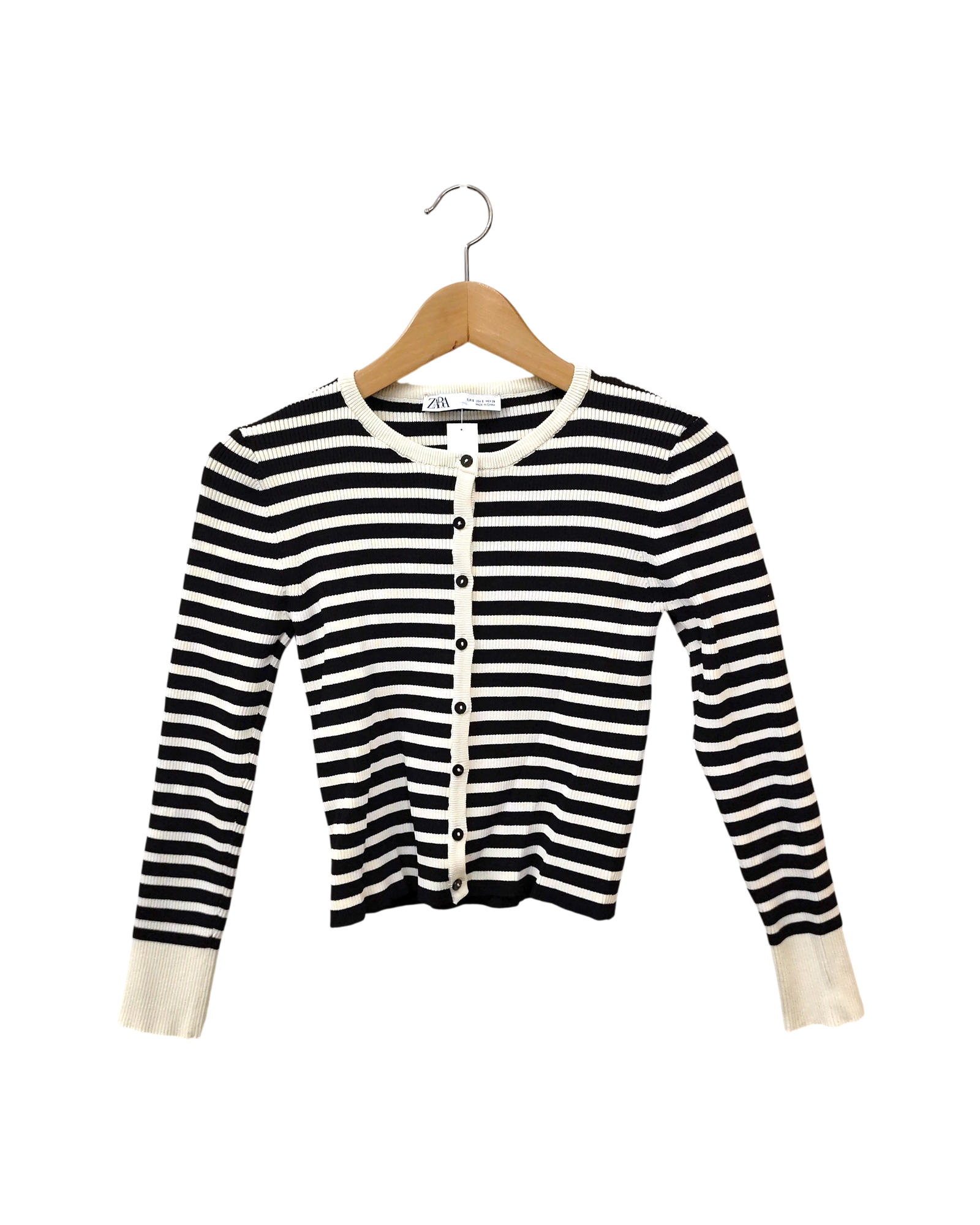 This item is relatively new without tags in place. It resembles a piece of clothing that have been worn once or twice, with no visible signs of wear!