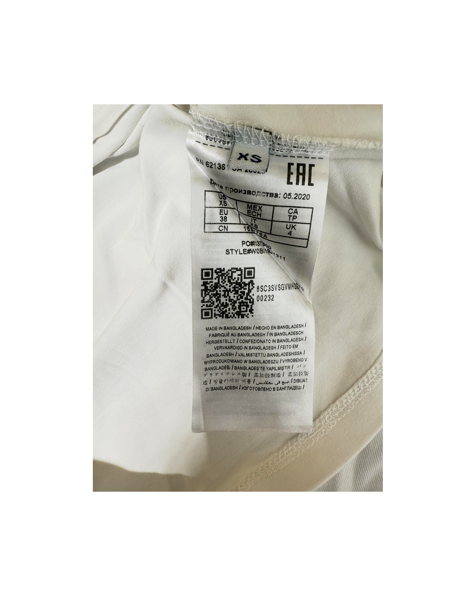 Size XS (as indicated on label) Size guide