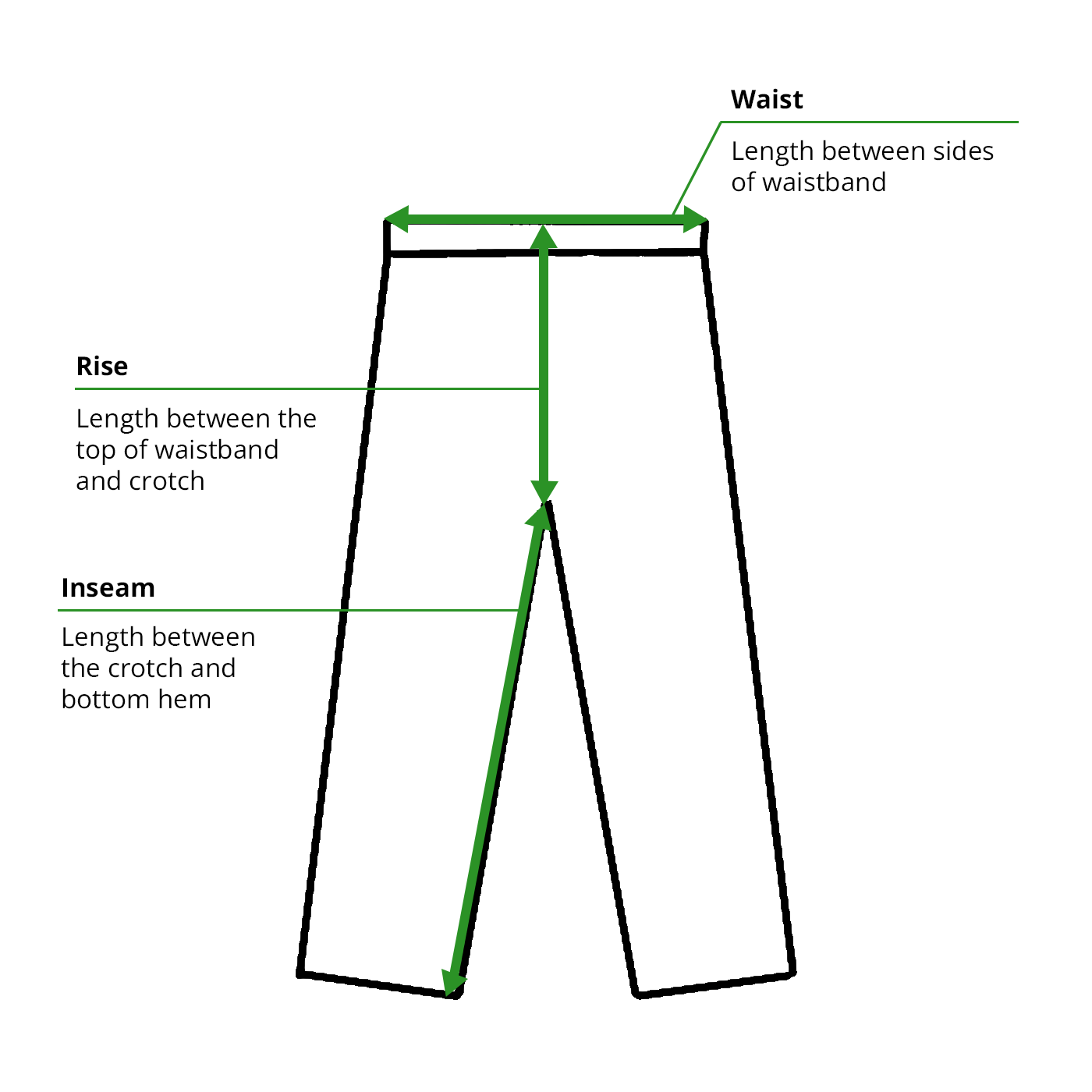 We inspect, categorise, and hand-measure every item with care. The measures are taken as per the diagram below.