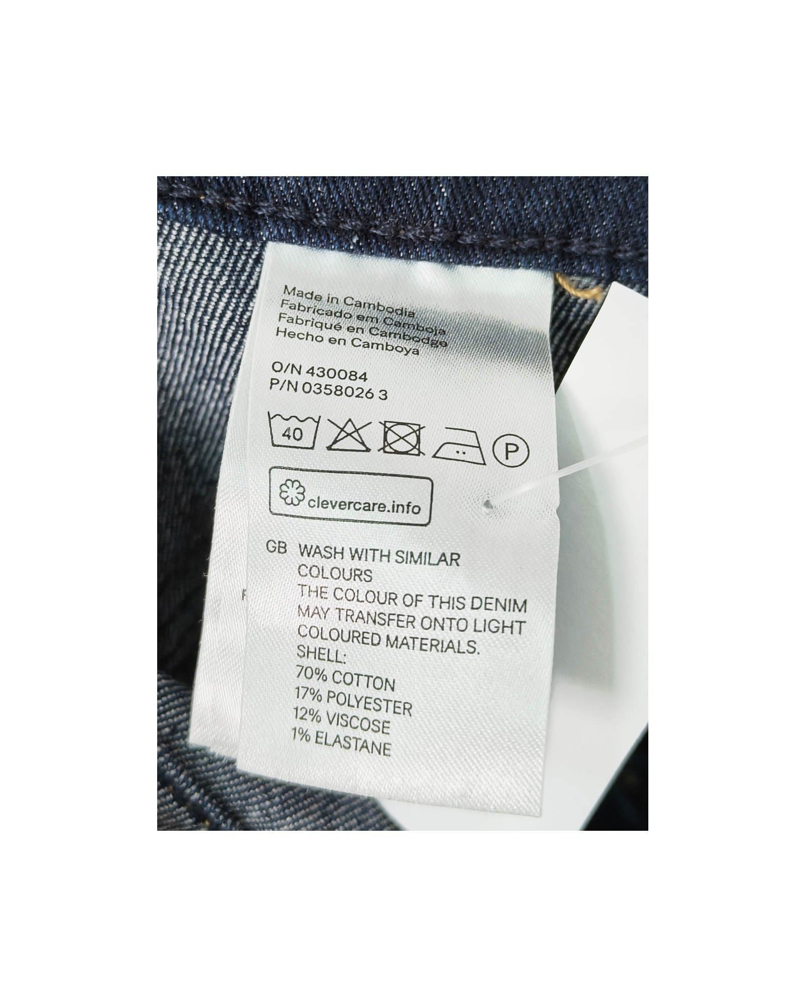 70% Cotton, 17% Polyester, 12% Viscose, 1% Elastane