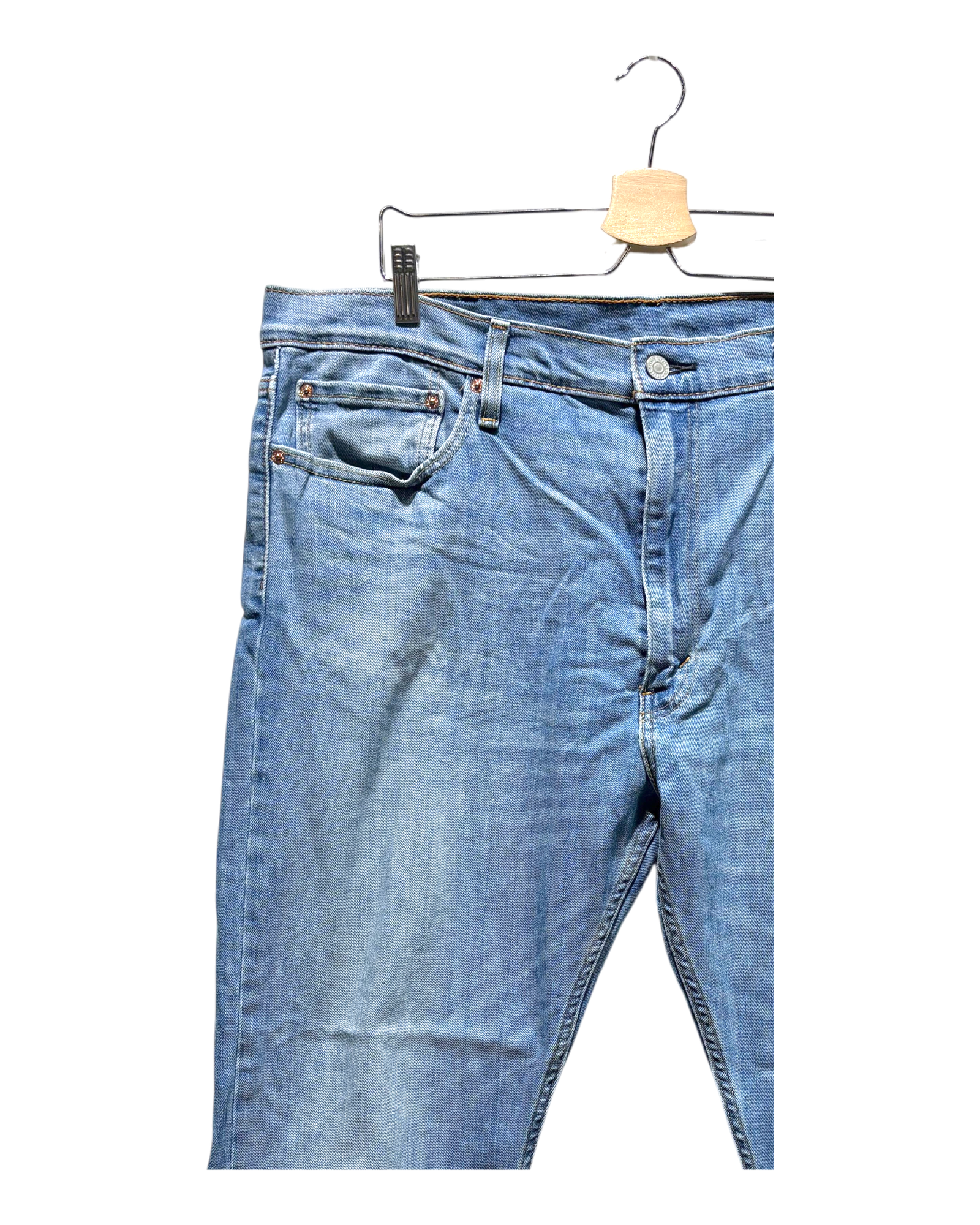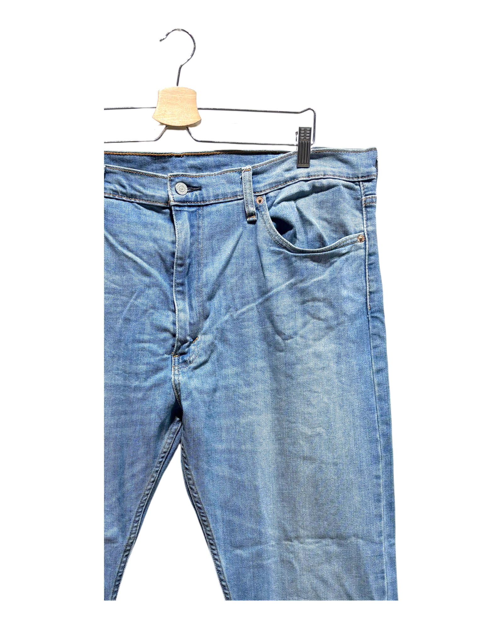 The item is in decent condition with no major flaws. There may be slight visible signs of wear, such as light fading or pilling in areas such as the knees, seams, and hems due to being worn or washed.