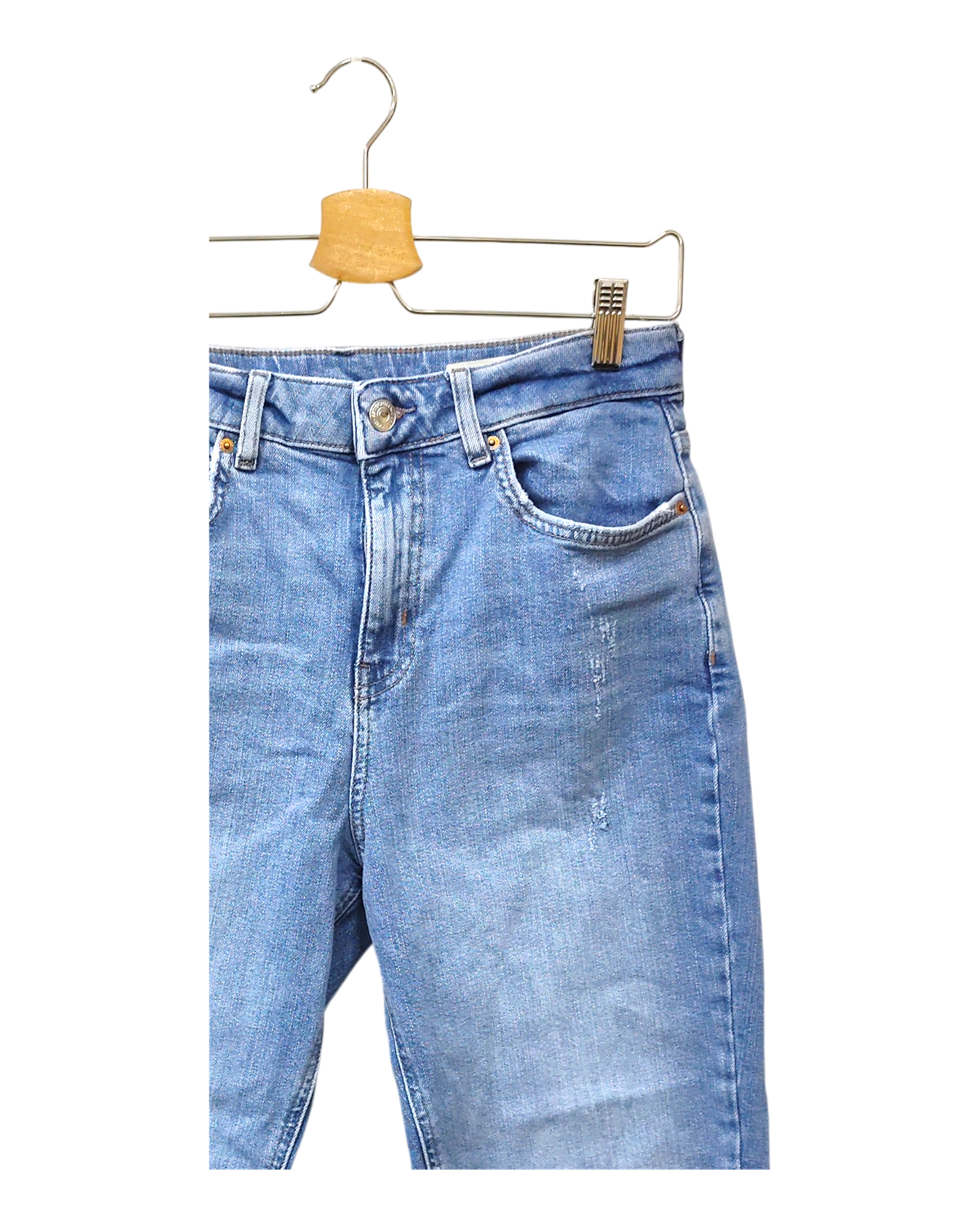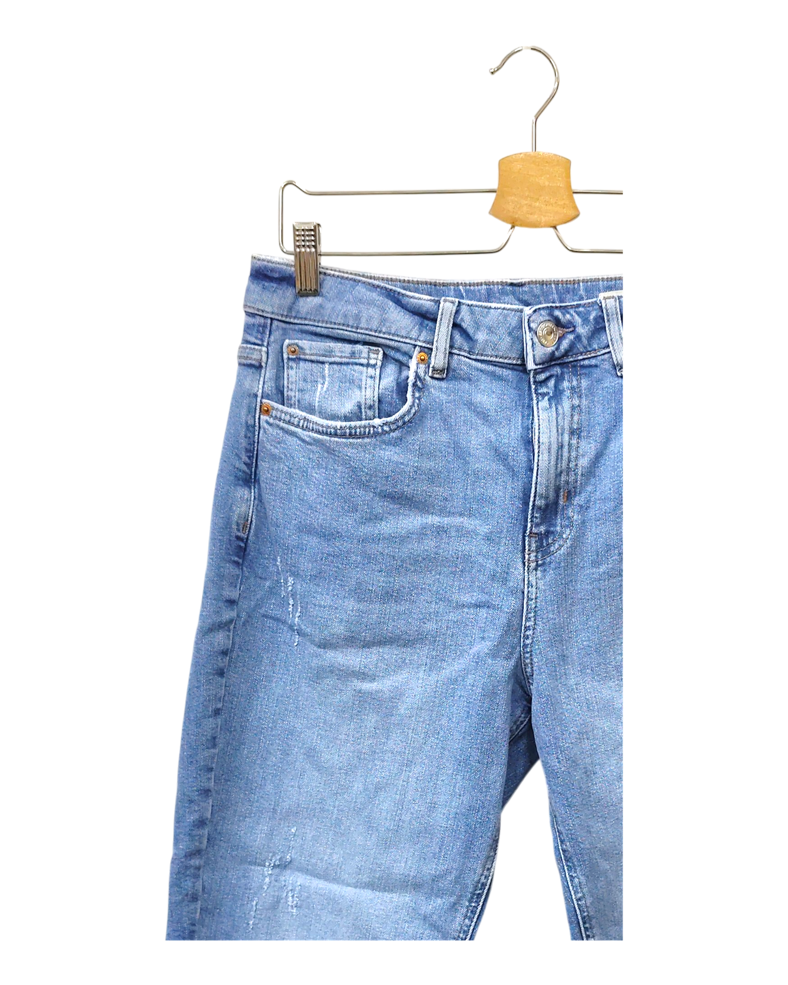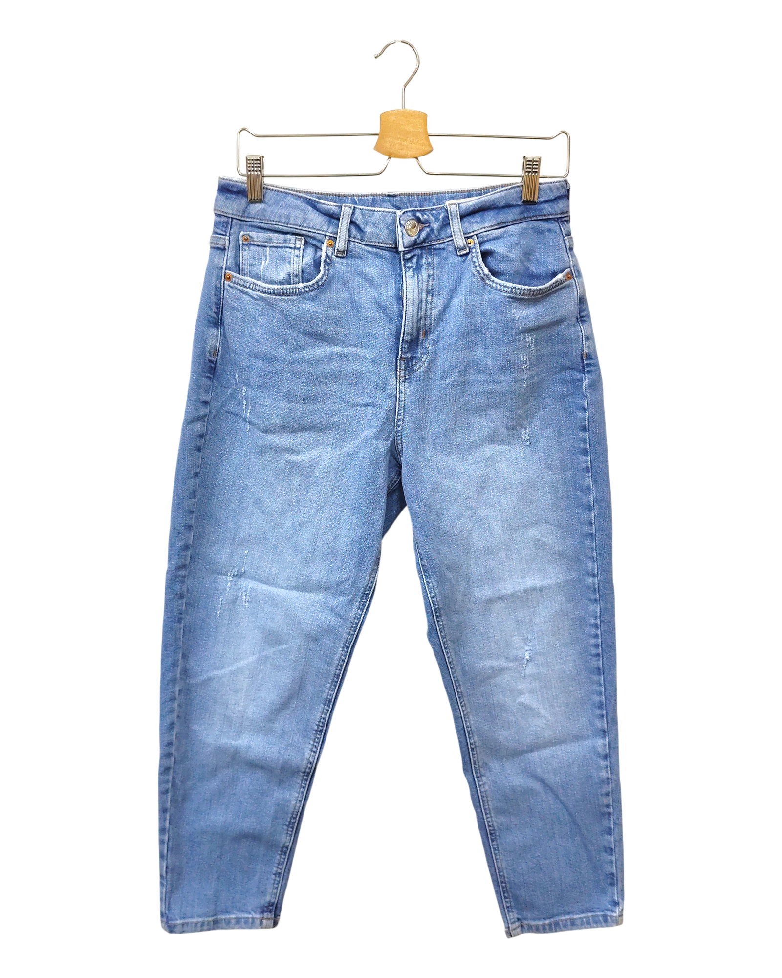 The item is in decent condition with no major flaws. There may be slight visible signs of wear, such as light fading or pilling in areas such as the knees, seams, and hems due to being worn or washed.