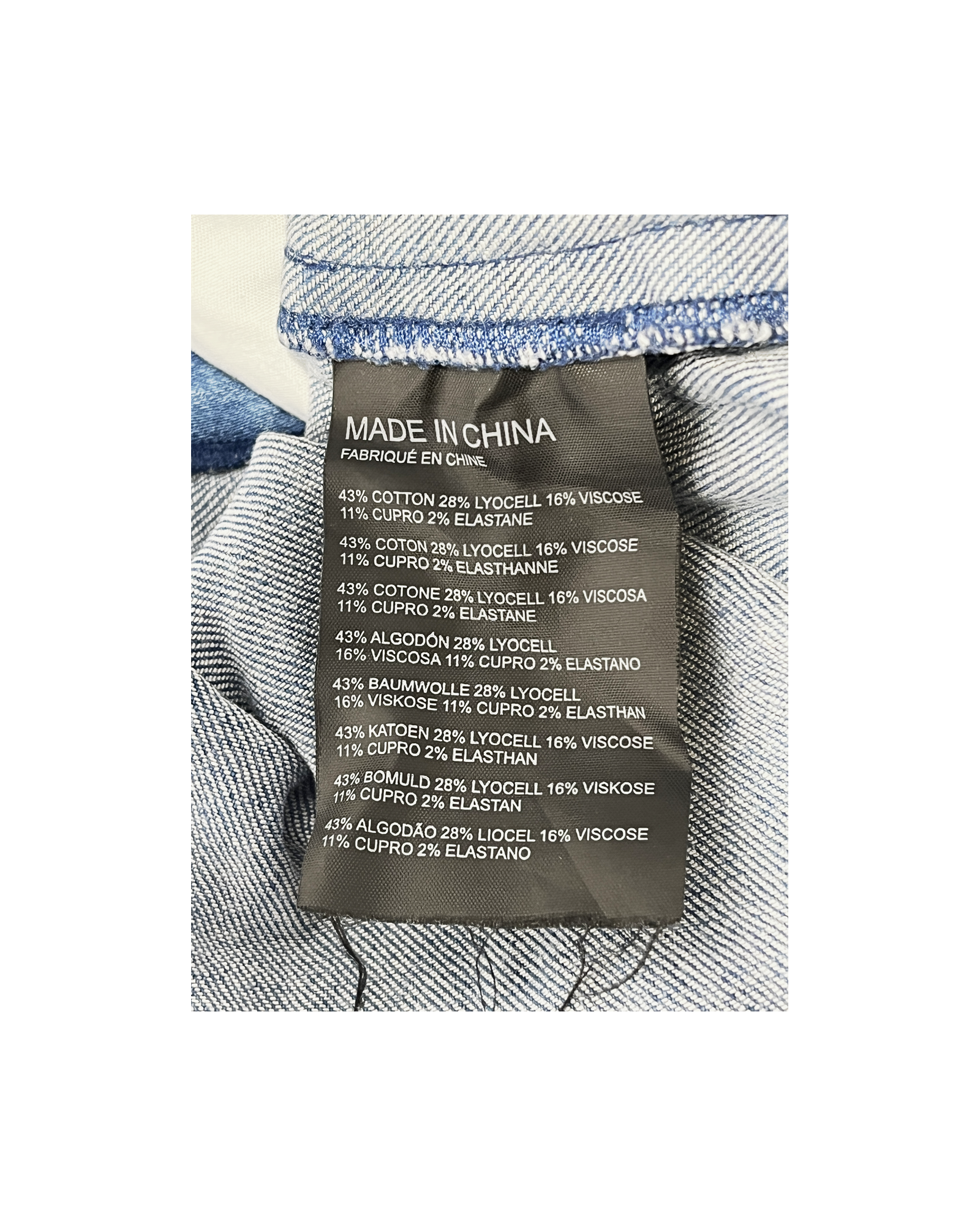 43% Cotton, 28% Lyocell, 16% Viscose, 11% Cupro, 2% Elastane