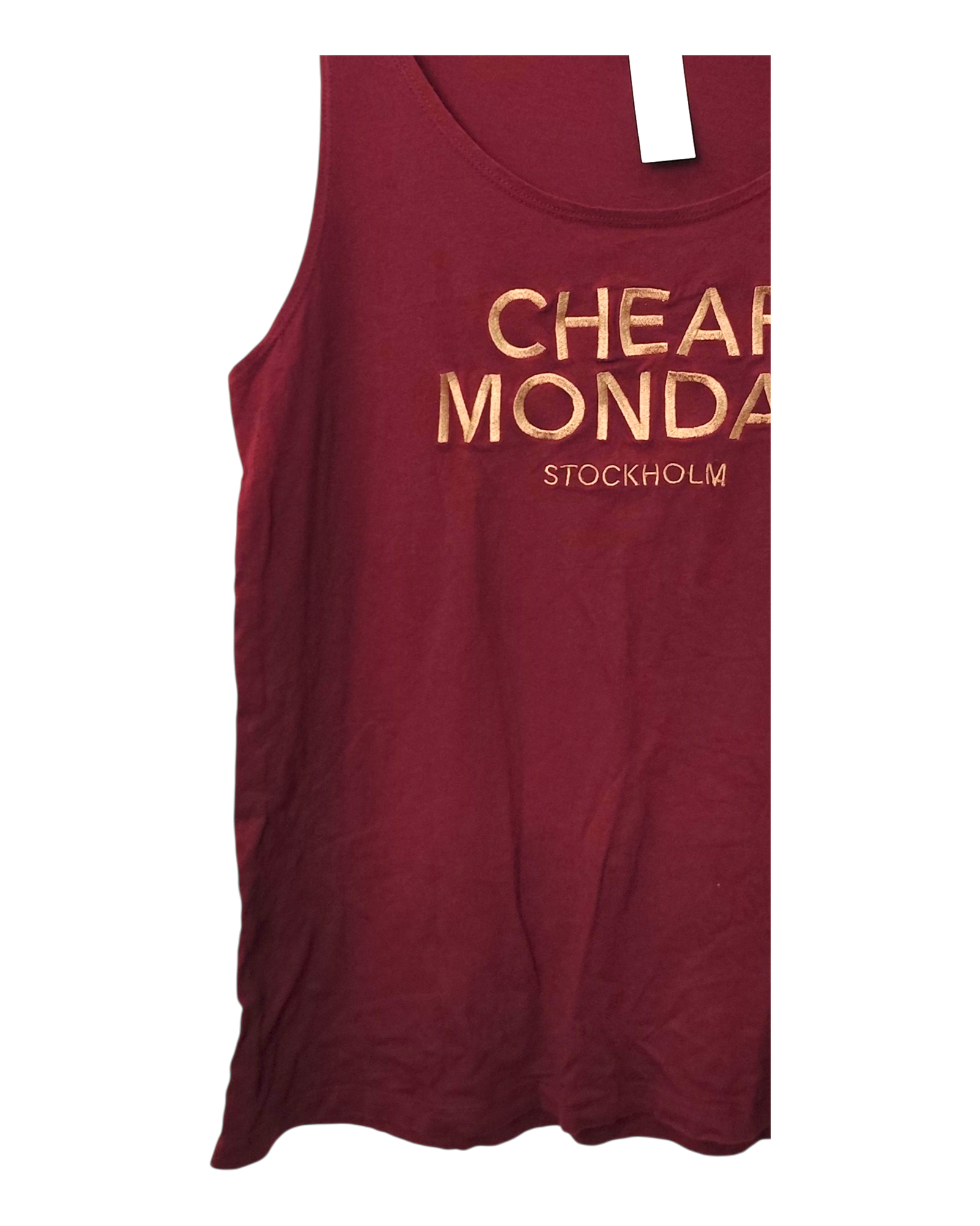 This item is relatively new without tags in place. It resembles a piece of clothing that have been worn once or twice, with no visible signs of wear!