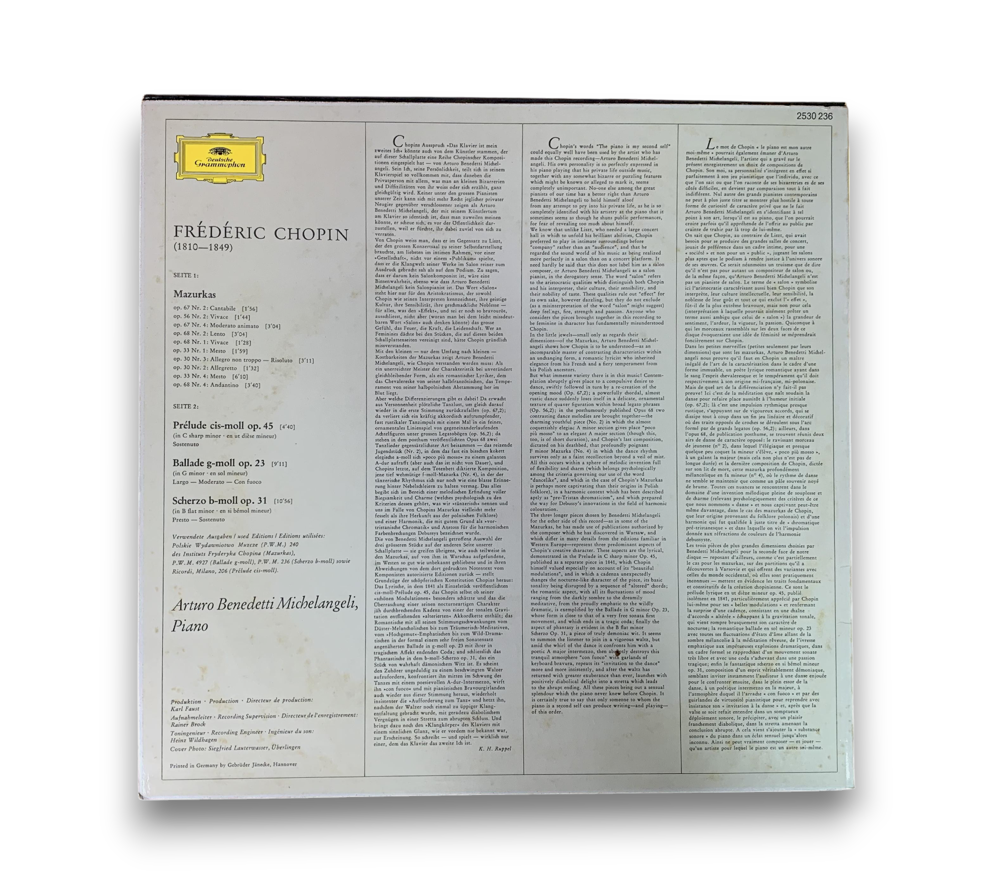 This record features a metallic silver jacket and is presented in a single sleeve format. The back cover indicates it was printed in Germany by Gebrüder Jänecke, Hannover. It includes liner notes in German, English, and French. The label rim text at the 12 o'clock position reads "[,,,] besonders Vervielfältigung [...]" and notably, there is no star at the bottom of the labels. For further details regarding the packaging and inserts, please refer to the accompanying photos.
