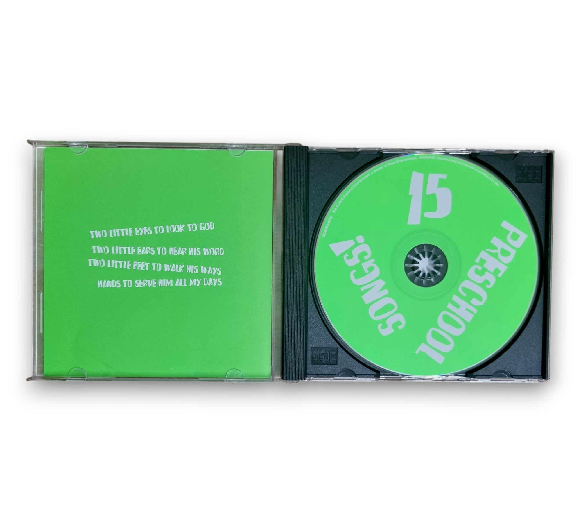 Introduce your little ones to the joy of music with "15 Preschool Songs!" by Kid City Tunes, a delightful CD released in 2000. This collection features beloved children's classics such as "Jesus Loves Me," "The B-I-B-L-E," and "He's Got The Whole World In His Hands," perfect for sing-alongs and fostering a love for music. With its engaging gospel style, this album is a wonderful addition to any child's music library, making learning fun and memorable. Ideal for home, church, or preschool settings!