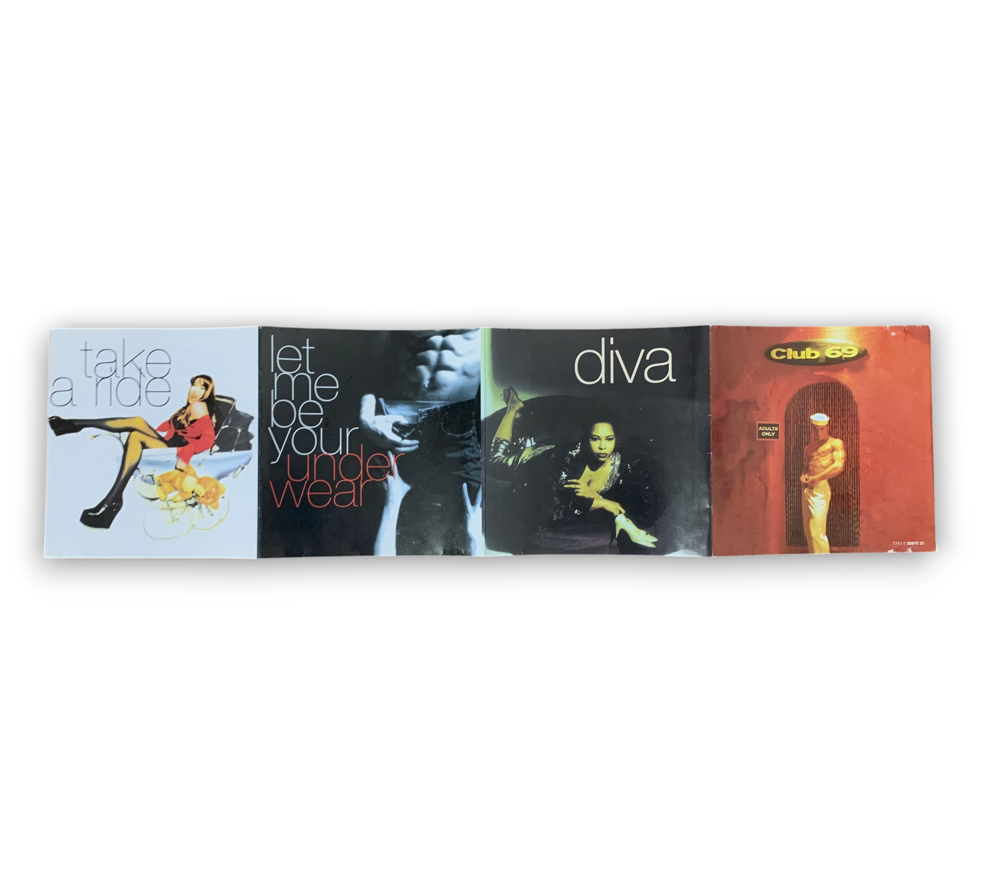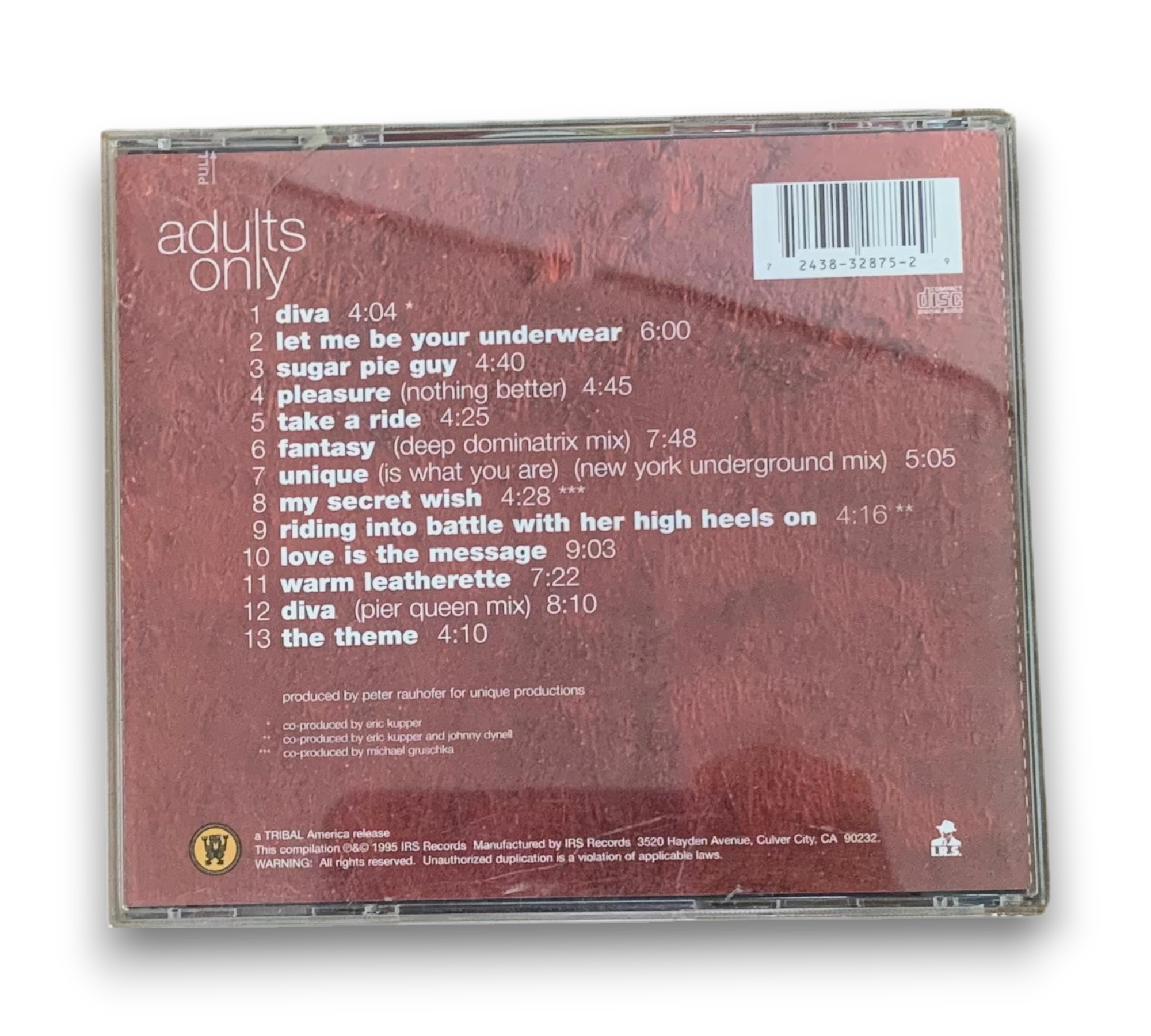 This listing features the album "Adults Only" by Club 69, released in 1995 under IRS Records. The album includes a variety of tracks, showcasing a mix of styles and influences, with notable contributions from various studios across London, Austria, and New York. The CD is presented in a standard jewel case and includes a 14-panel fold-out insert, which features artwork related to the album. For a closer look at the packaging and inserts, please refer to the accompanying photos.