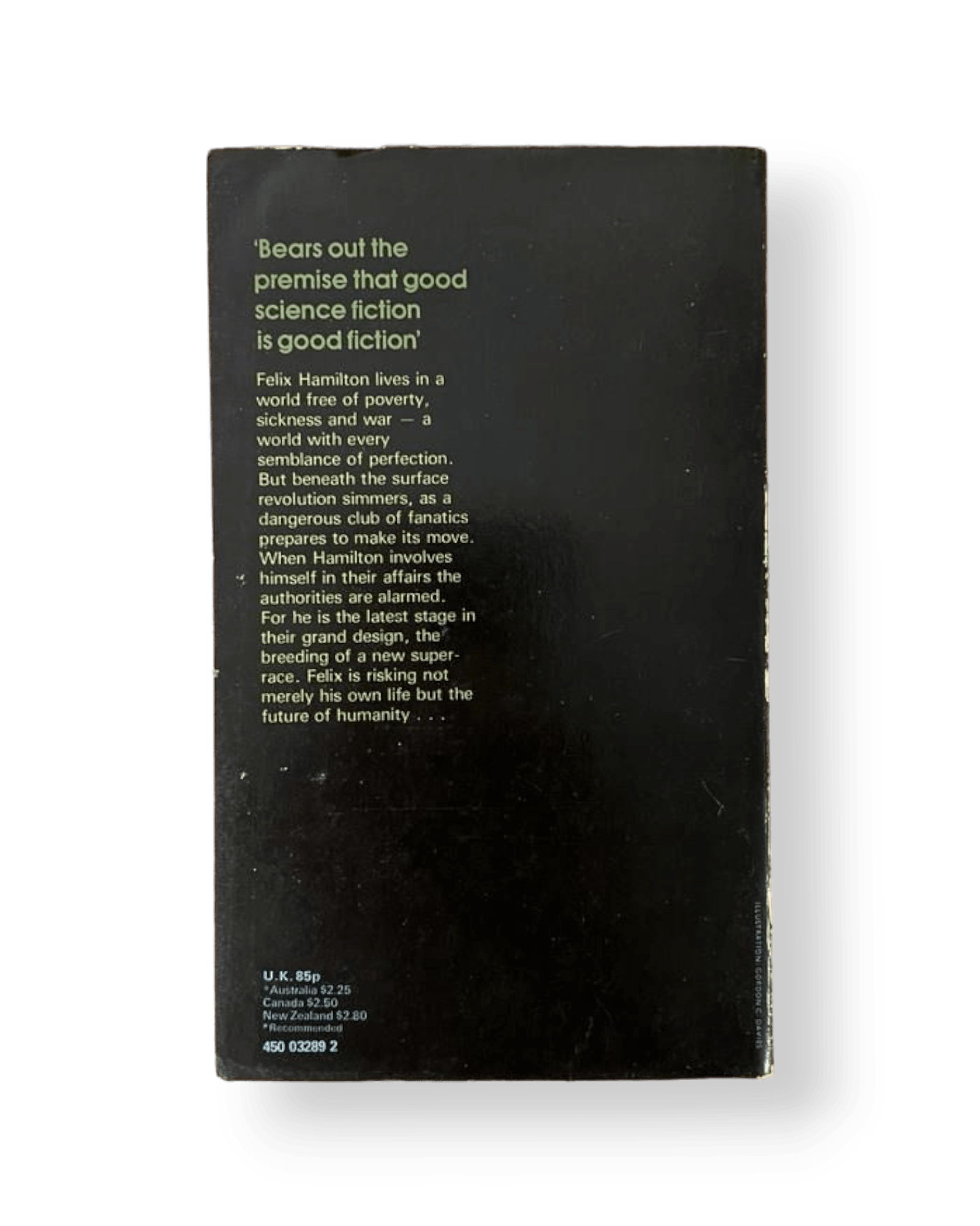 Felix Hamilton lives in a world free of poverty, sickness and war - a world with every semblance of perfection. But beneath the surface revolution simmers, as a dangerous club of fanatics prepares to make its move. When Hamilton involves himself in their affairs the authorities are alarmed. For he is the latest stage in their grand design, the breeding of a new super-race. Felix is risking not merely his own life but the future of humanity…