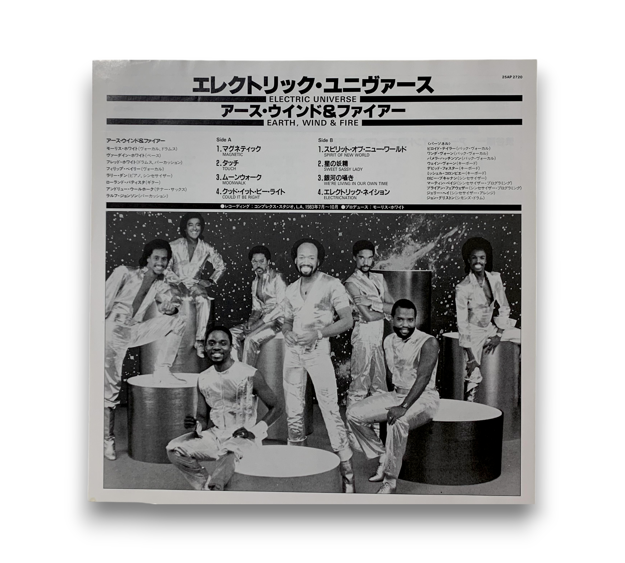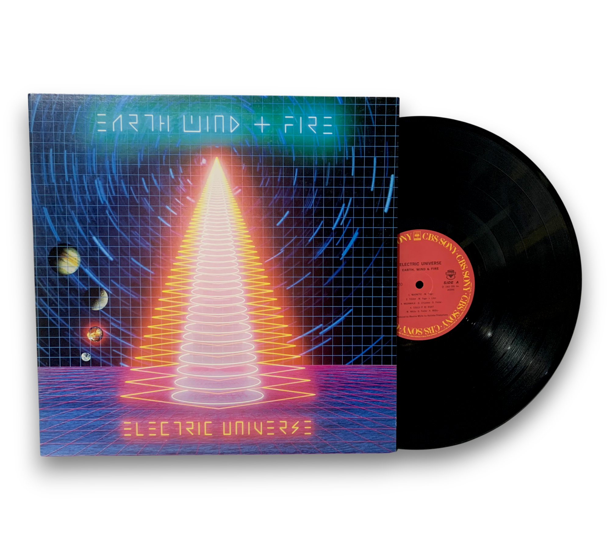 This listing features the album "Electric Universe" by Earth, Wind & Fire, presented in a gatefold sleeve. The images confirm the inclusion of a 4-page booklet and a printed insert. For further details regarding the condition and specifics of the packaging, please refer to the accompanying photos.
