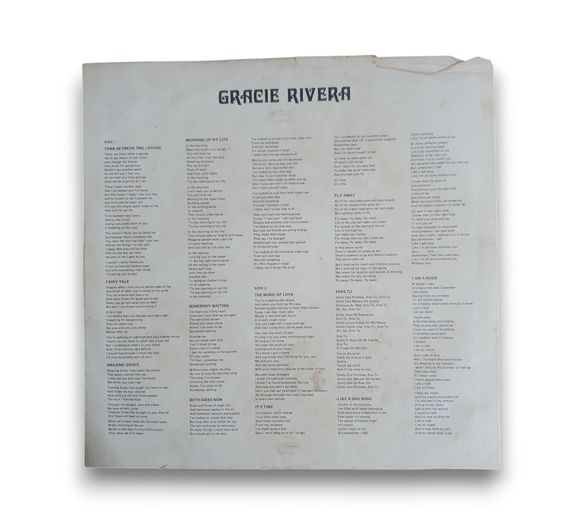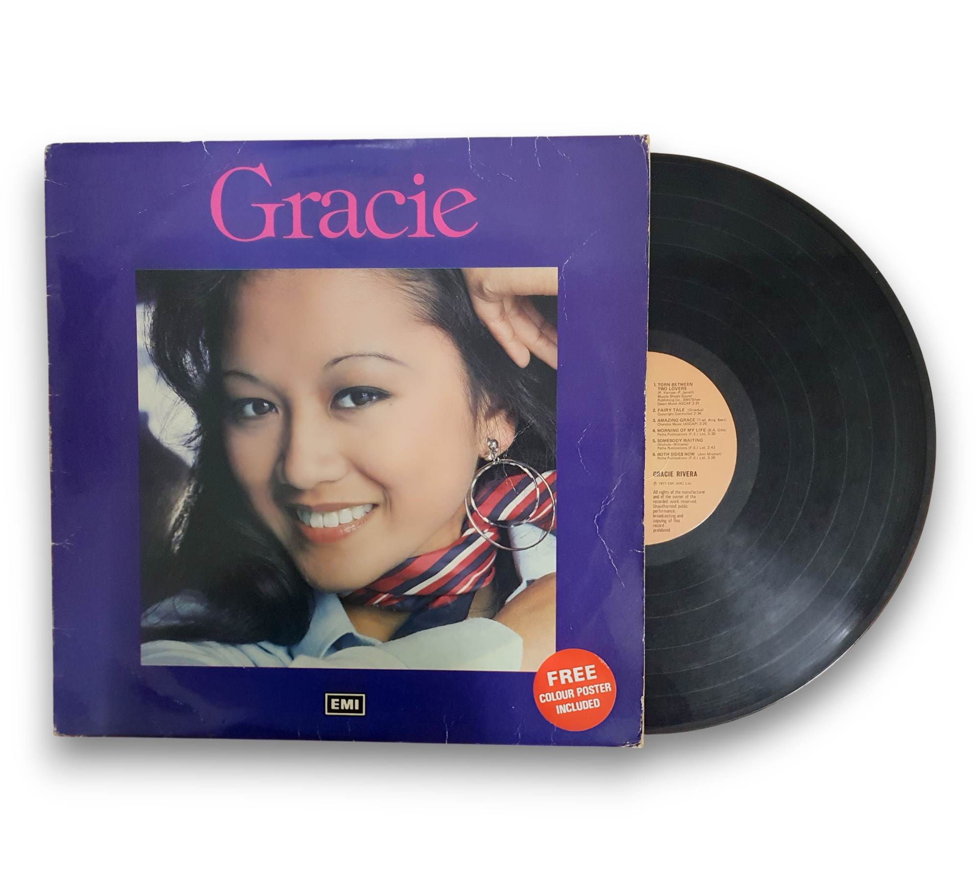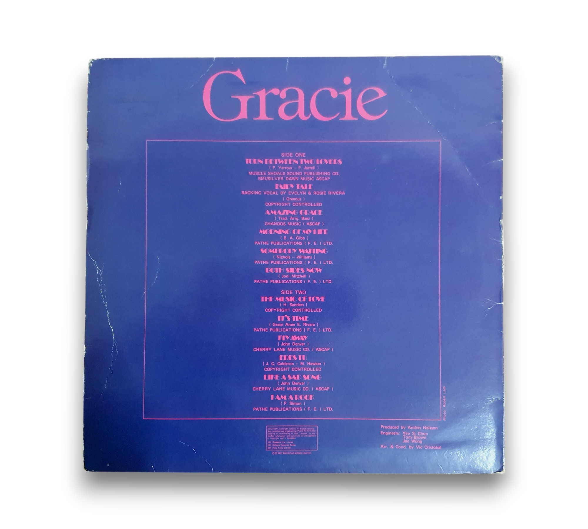 Discover the heartfelt melodies of Gracie Rivera's 1977 album "Gracie," a beautiful collection of pop ballads that showcases her stunning vocal talent. This vinyl record features timeless tracks such as "Torn Between Two Lovers," "Both Sides Now," and "Amazing Grace," offering a captivating listening experience. Released in Hong Kong, this album is a must-have for fans of classic vocal performances and emotional storytelling.