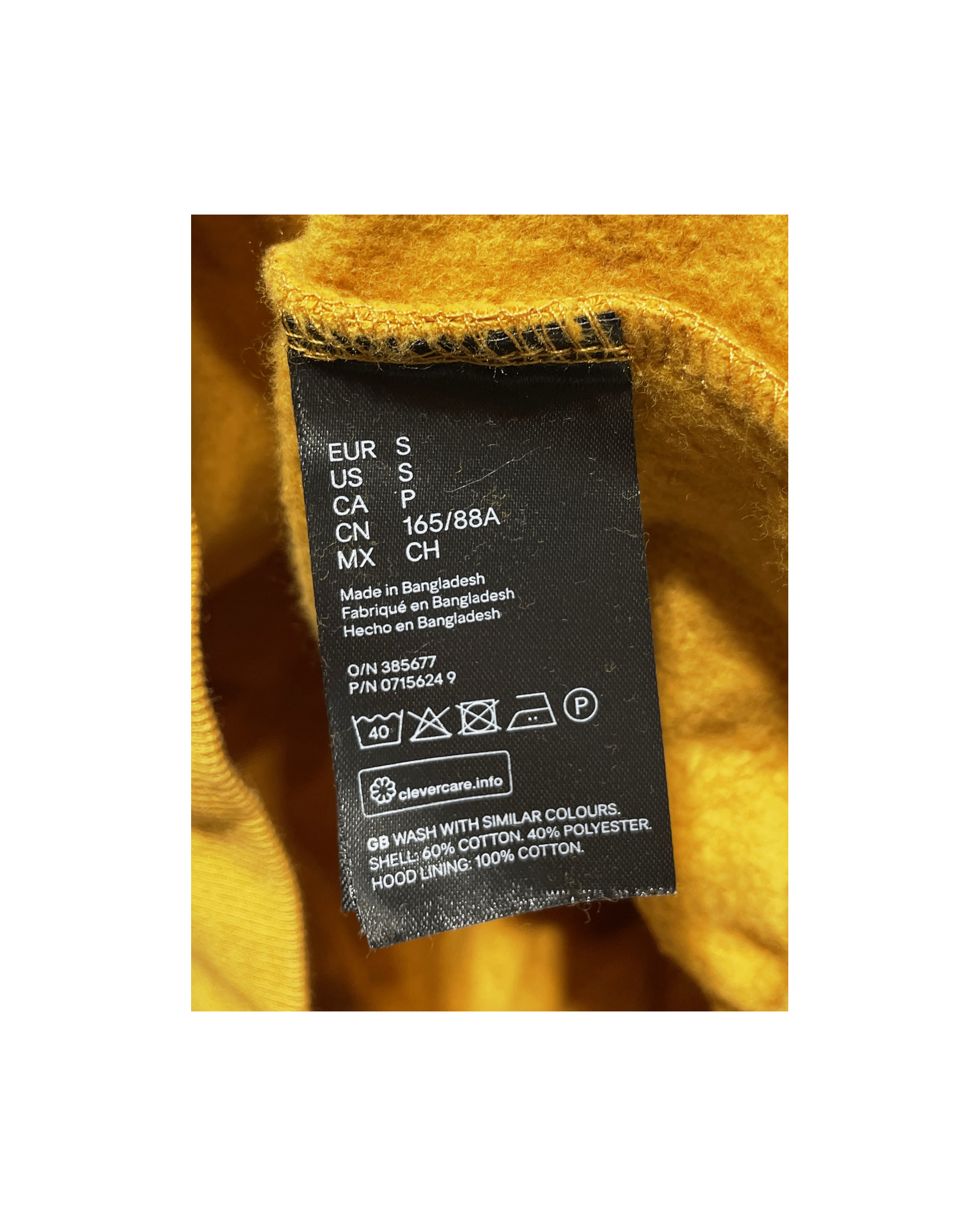 Size S (as indicated on label) Size guide