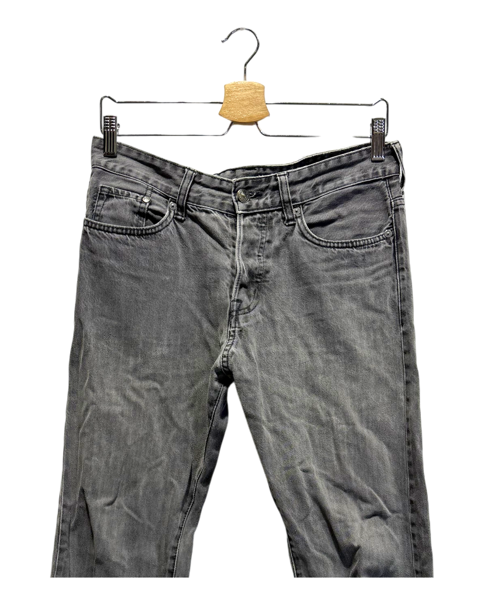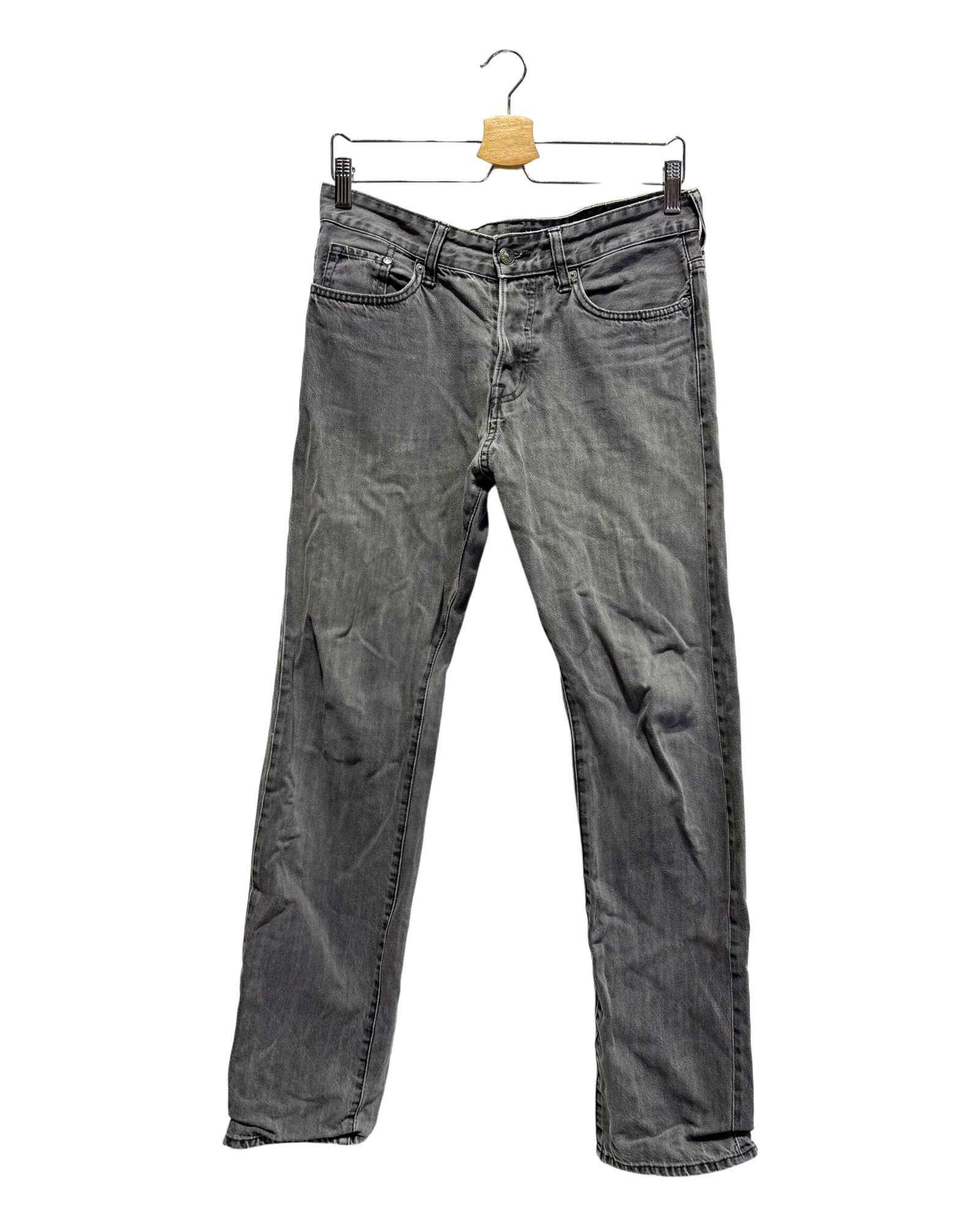 The item is in decent condition with no major flaws. There may be slight visible signs of wear, such as light fading or pilling in areas such as the knees, seams, and hems due to being worn or washed.