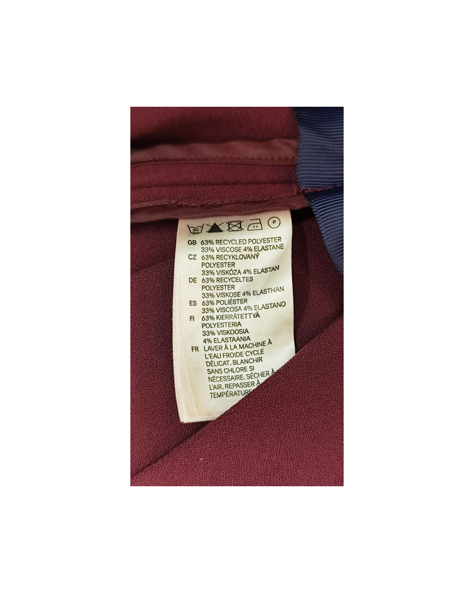 63% Recycled Polyester, 33% Viscose, 4% Elastane