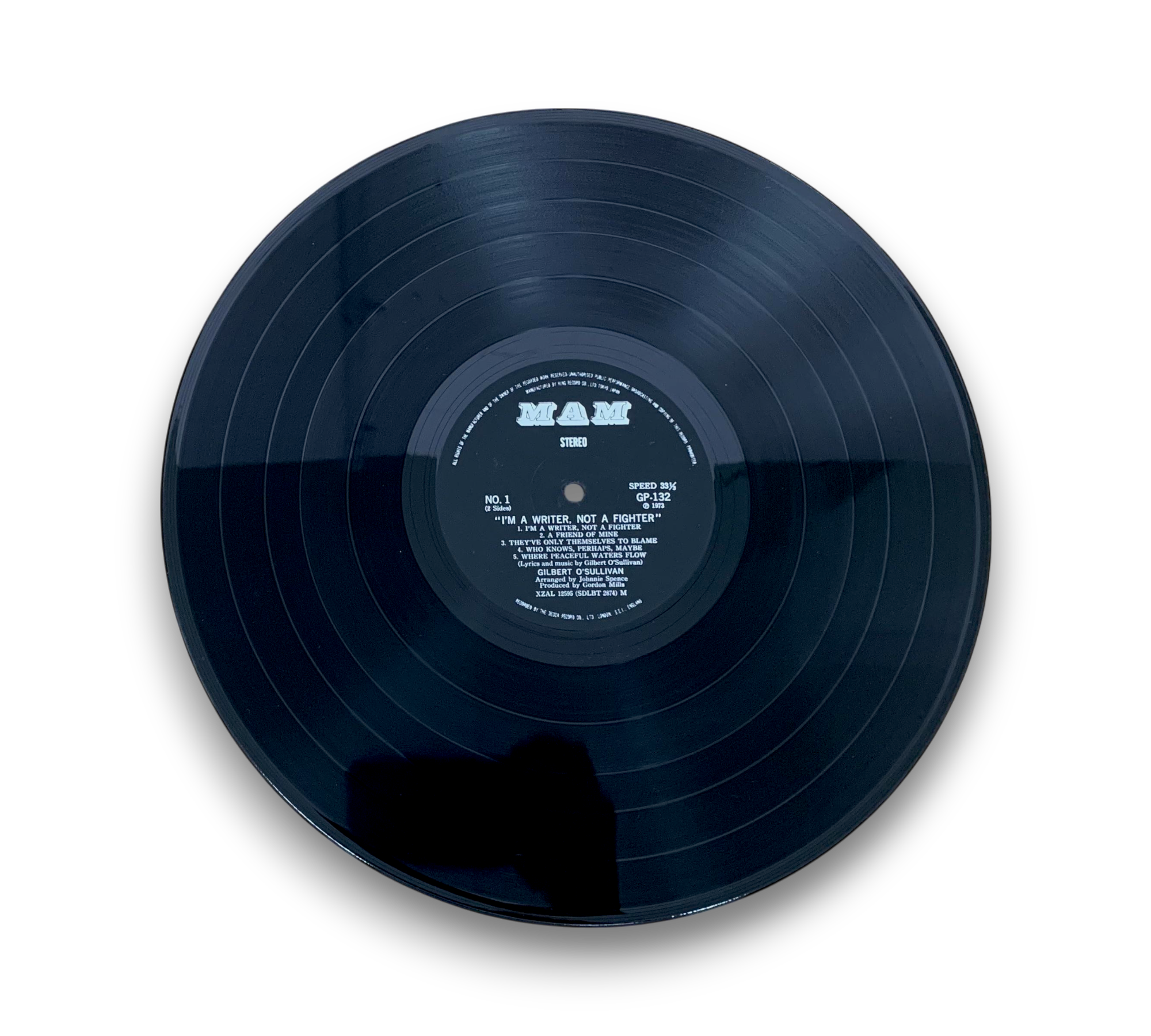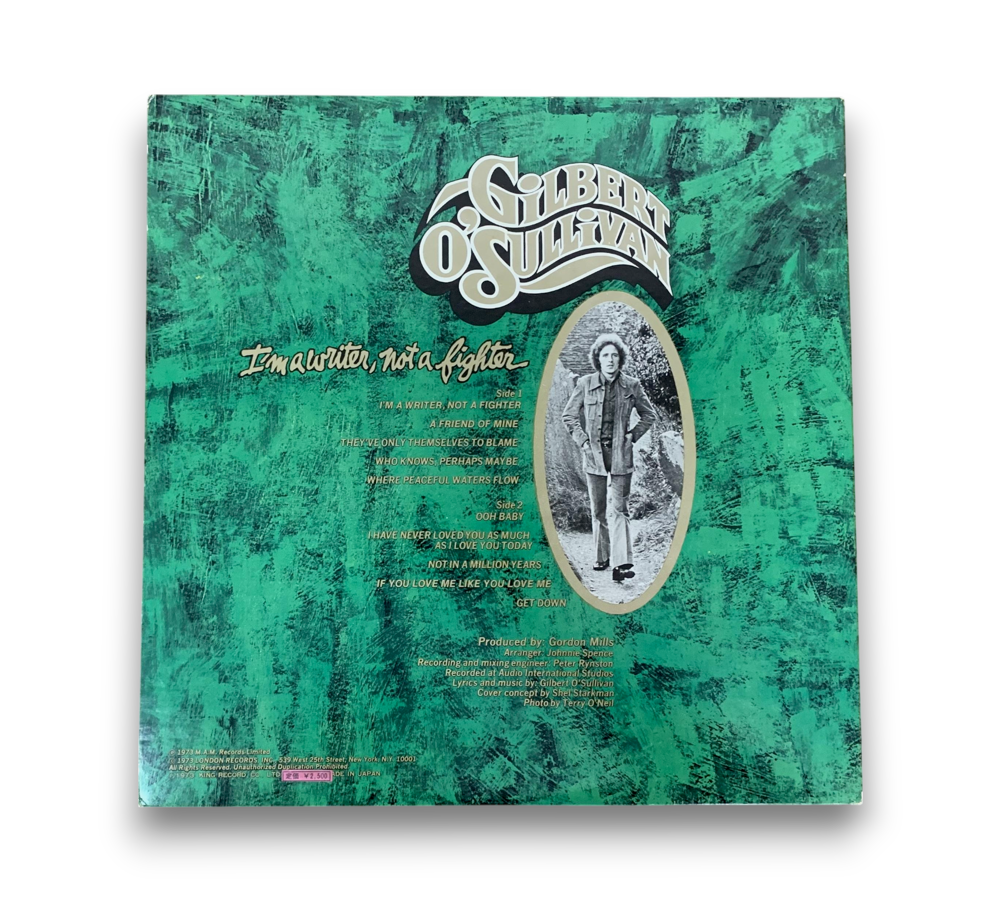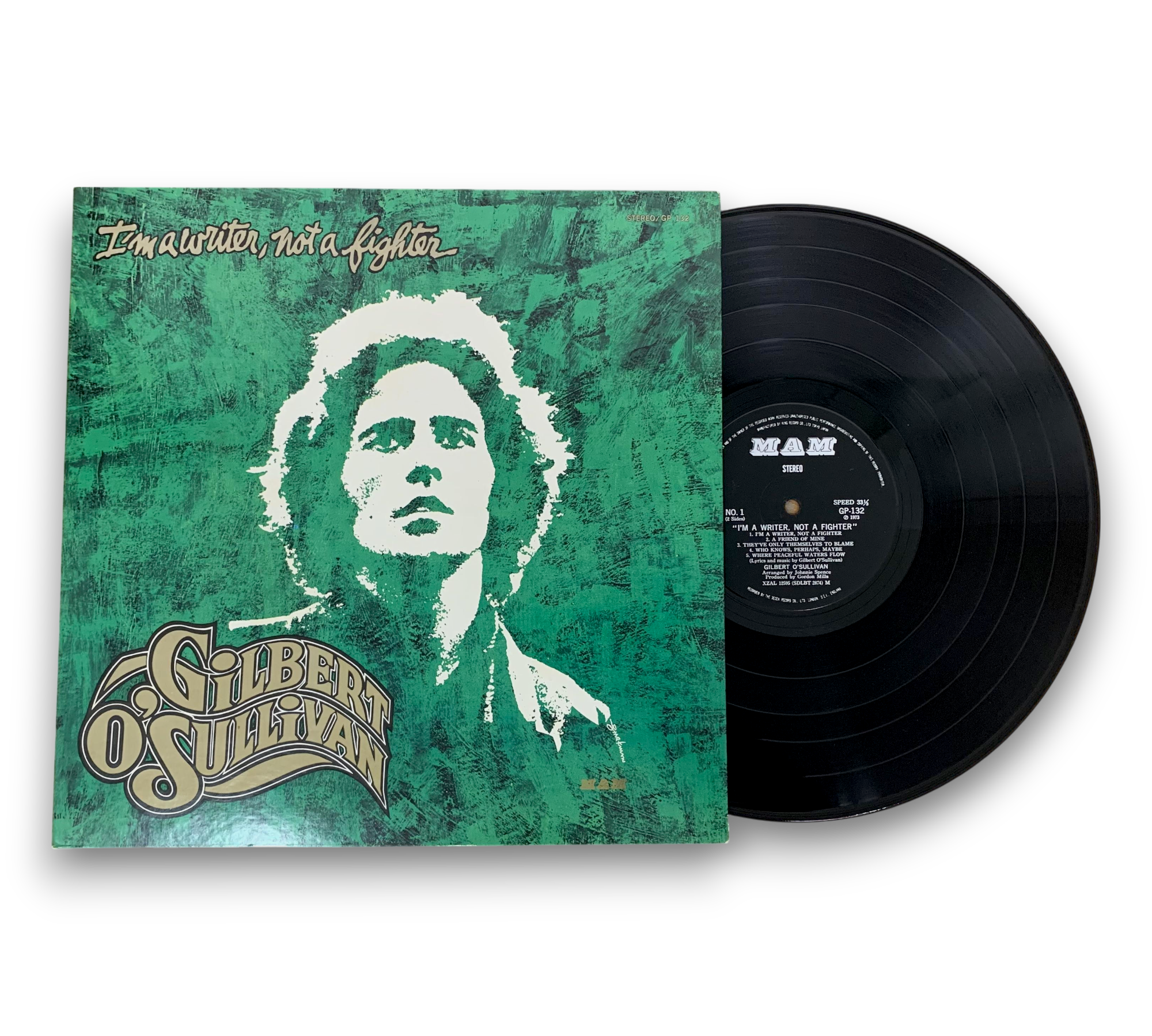 This record features the album "I'm a Writer, Not a Fighter" by Gilbert O'Sullivan. It includes liner notes and lyrics, providing insight into the music and themes of the album. The images showcase the vibrant cover art and the vinyl itself, which is in excellent condition. For a closer look at the packaging and any additional details, please refer to the accompanying photos.