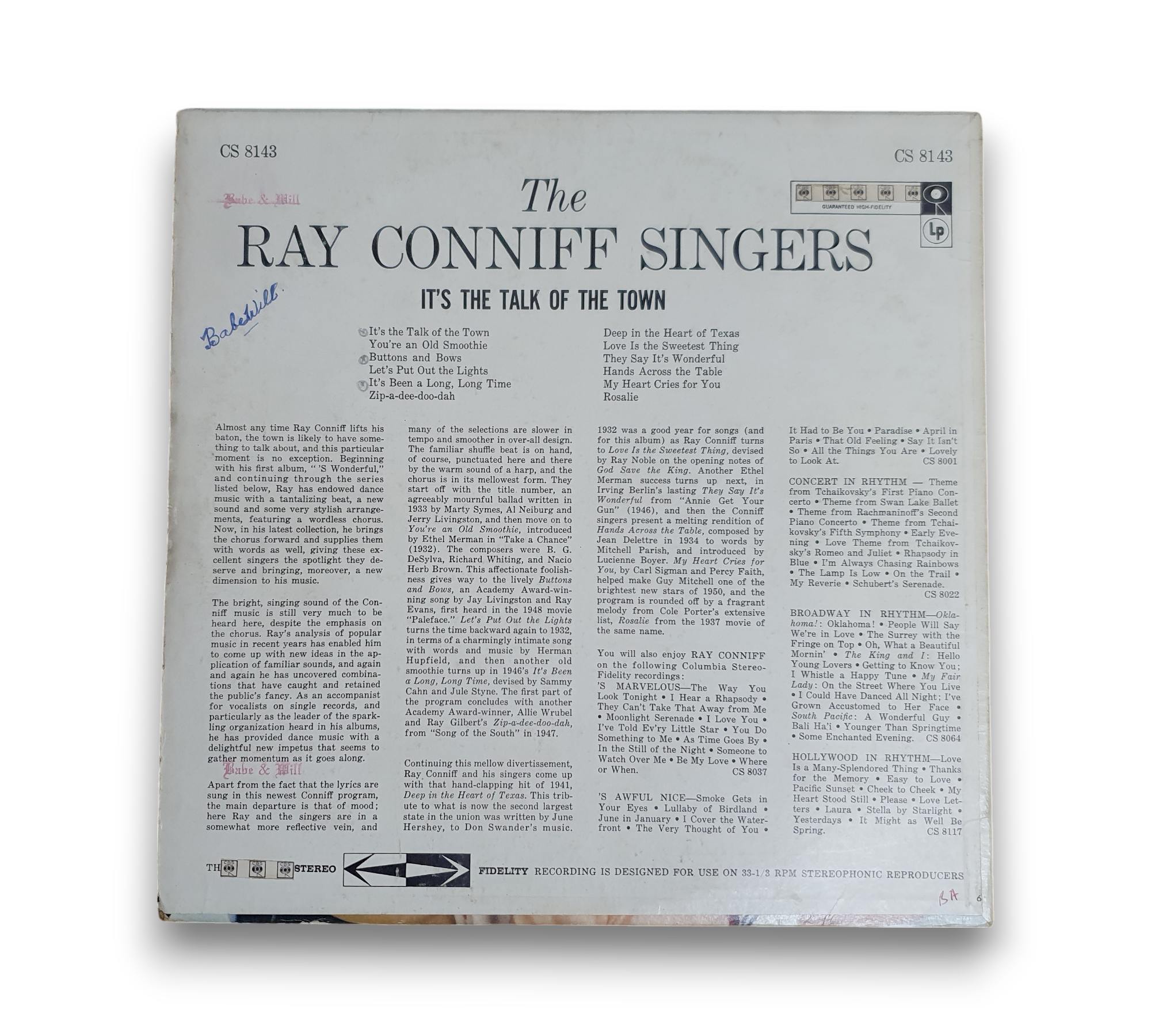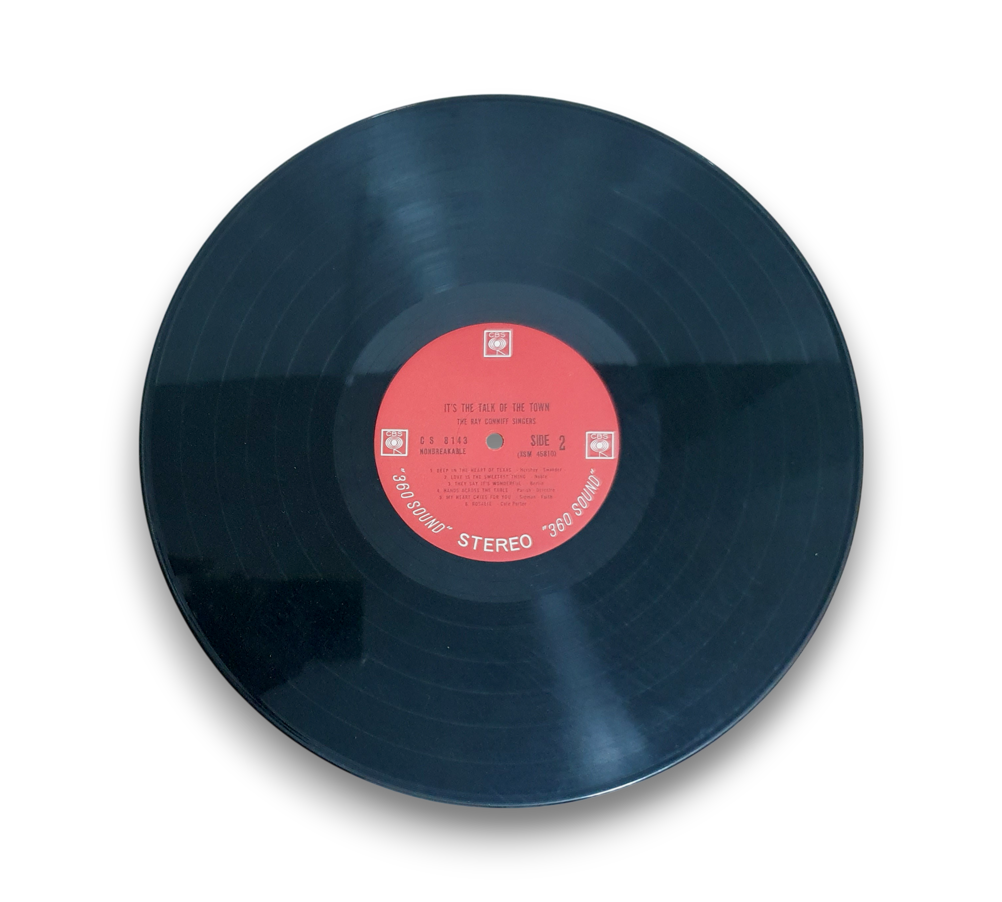 This listing features a red two-eye pressing of "It's the Talk of the Town" by The Ray Conniff Singers, showcasing the iconic black 360 sound label. The record is presented in a visually appealing cover, which complements the classic sound of the album. For further details regarding the condition and specifics of the packaging, please refer to the accompanying photos.