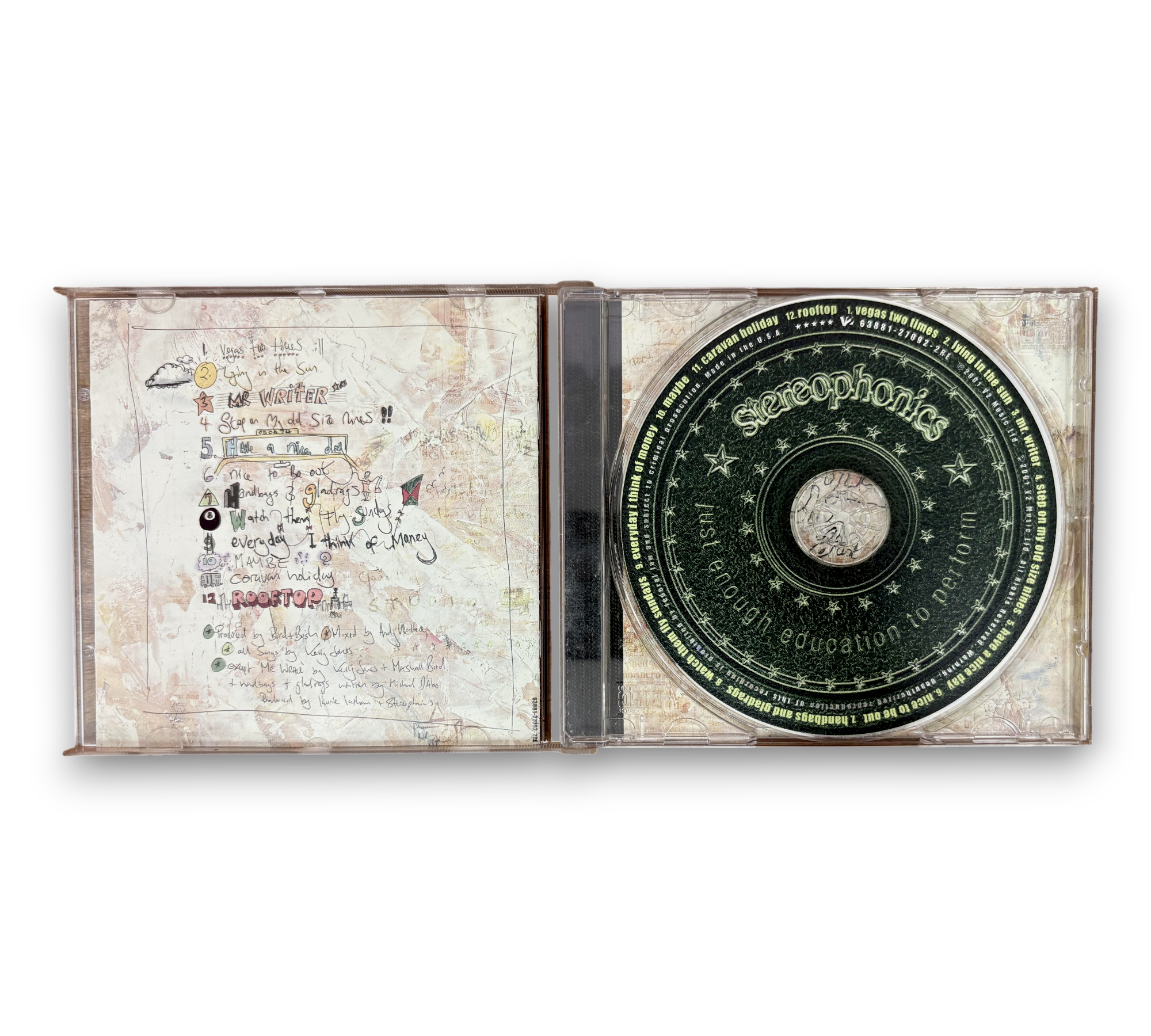 Experience the Britpop sound of Stereophonics with their 2001 album, "Just Enough Education To Perform." This CD features standout tracks like "Mr. Writer," "Have A Nice Day," and "Vegas Two Times," showcasing the band's signature rock style. Released in the US, this album captures the essence of early 2000s British music, making it a must-have for fans and collectors alike.