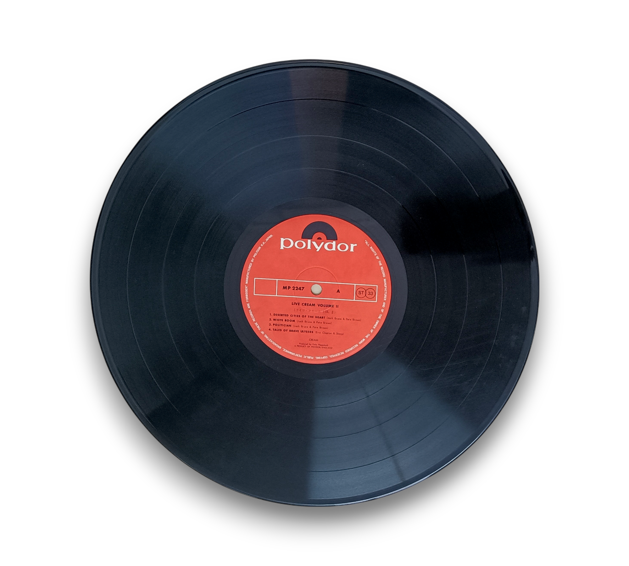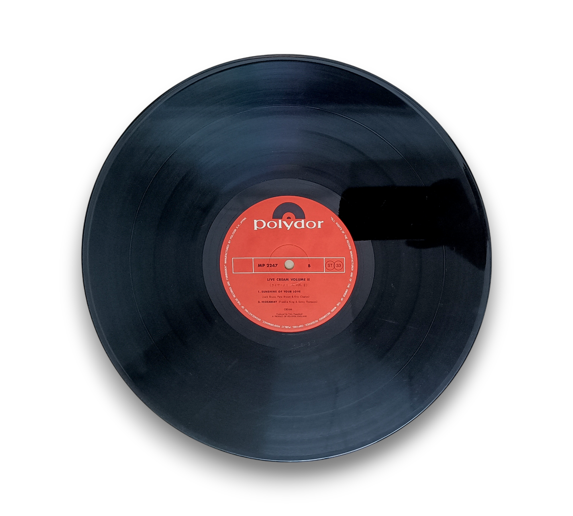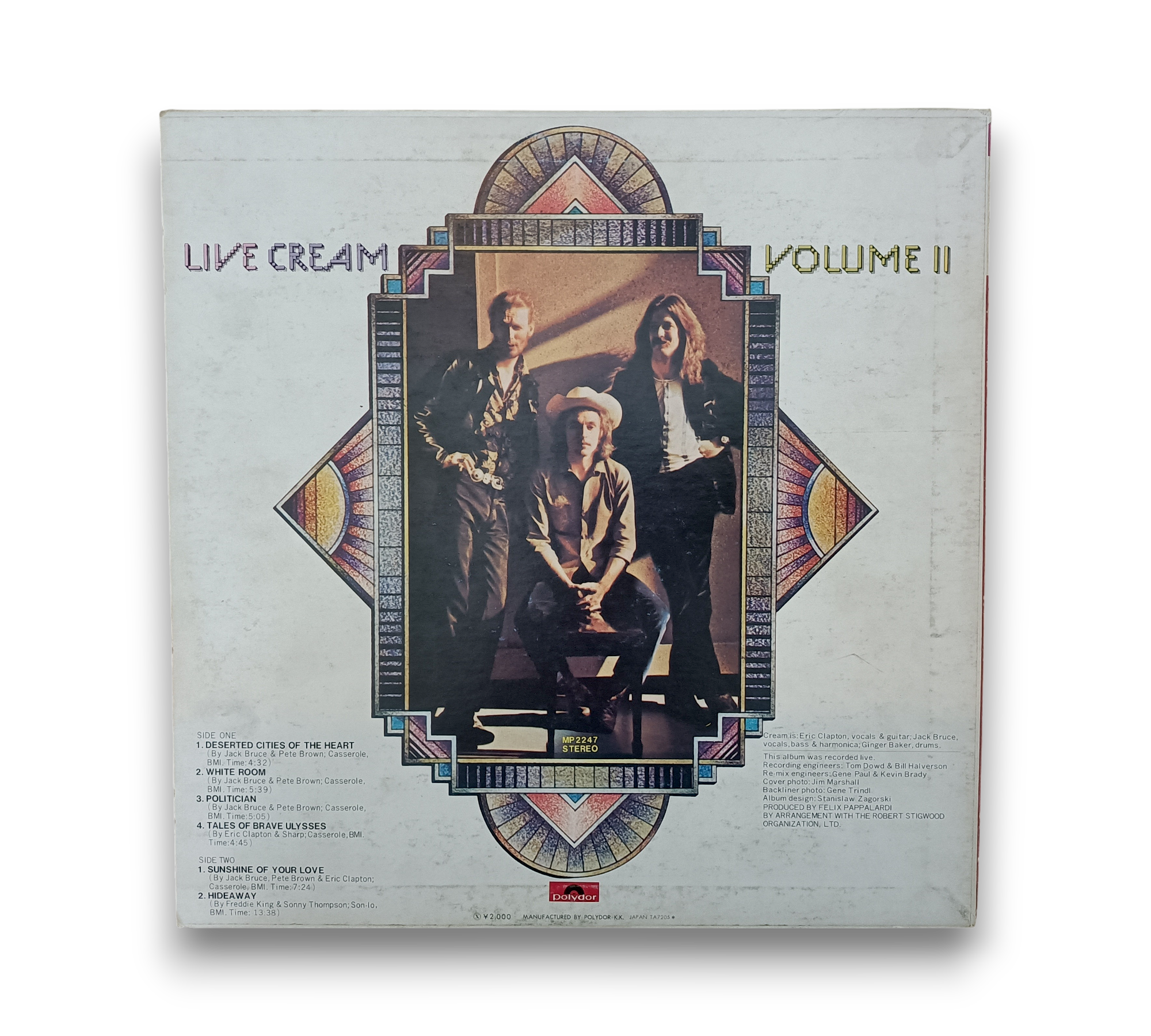 This listing features "Live Cream Volume II," manufactured by Polydor K.K. Japan (TA7205). Please note that song B2 is mis-listed as "Hideaway," but the correct title is "Steppin' Out." For further details regarding the condition and specifics of the packaging, please refer to the accompanying photos.
