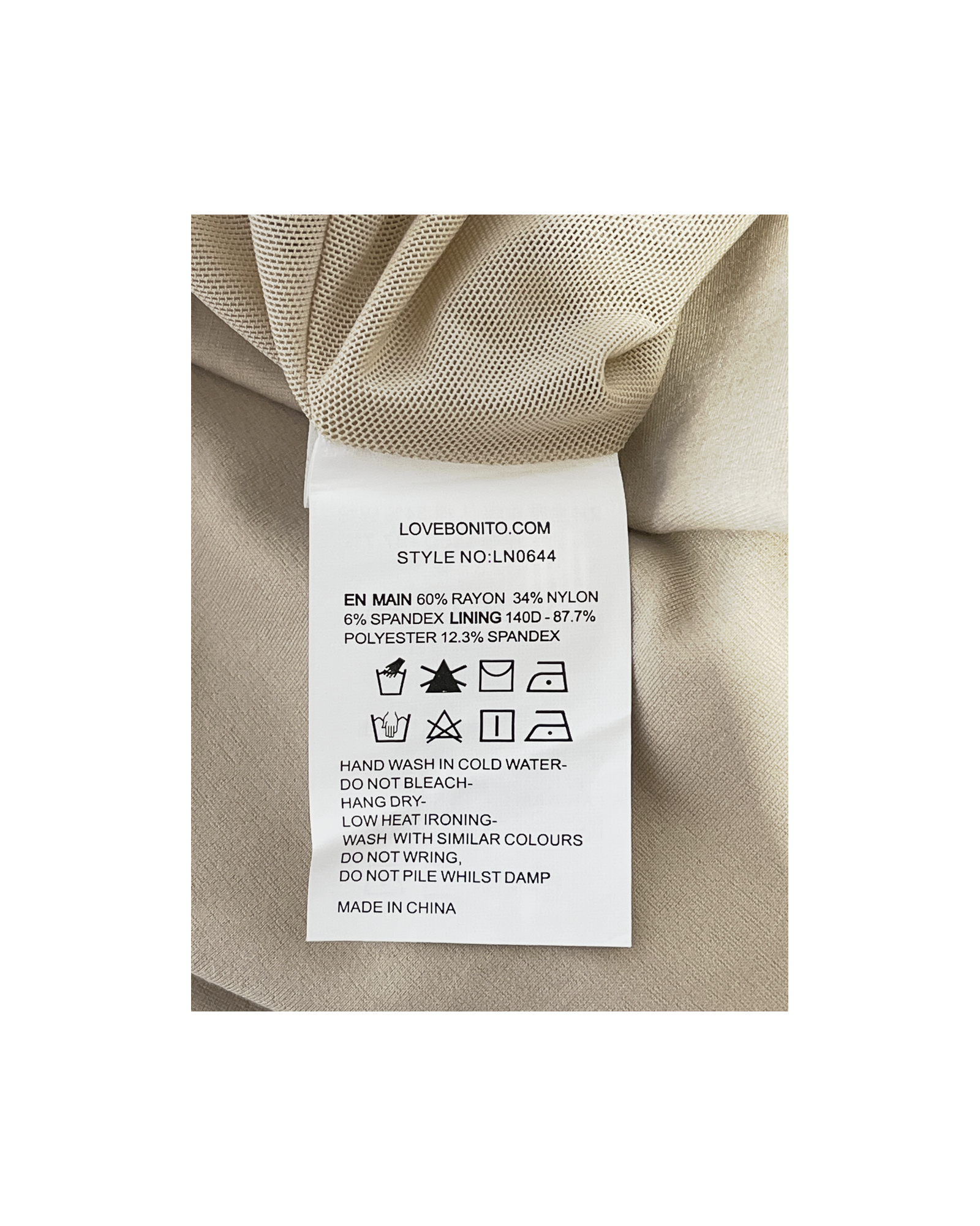 60% Rayon, 34% Nylon, 6% Spandex