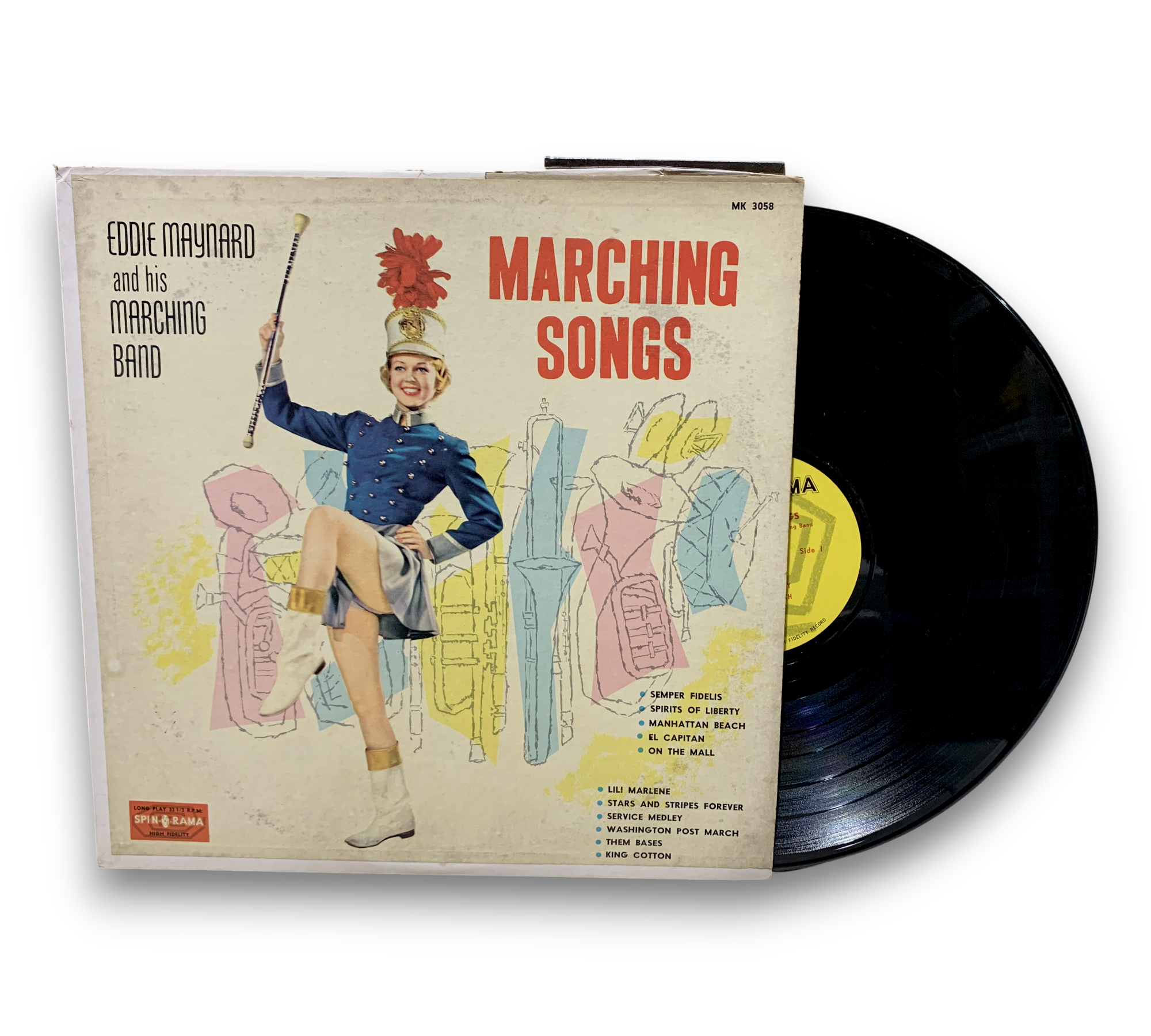 Experience the spirited sounds of "Marching Songs" by Eddie Maynard And His Marching Band, a vibrant collection of classic marches that will transport you to the heart of a parade. This vinyl record features beloved tracks such as "Semper Fidelis," "Stars And Stripes Forever," and "Washington Post March," showcasing the precision and energy of brass and military music. Perfect for enthusiasts of the genre, this album captures the essence of marching band tradition in a high-quality format.