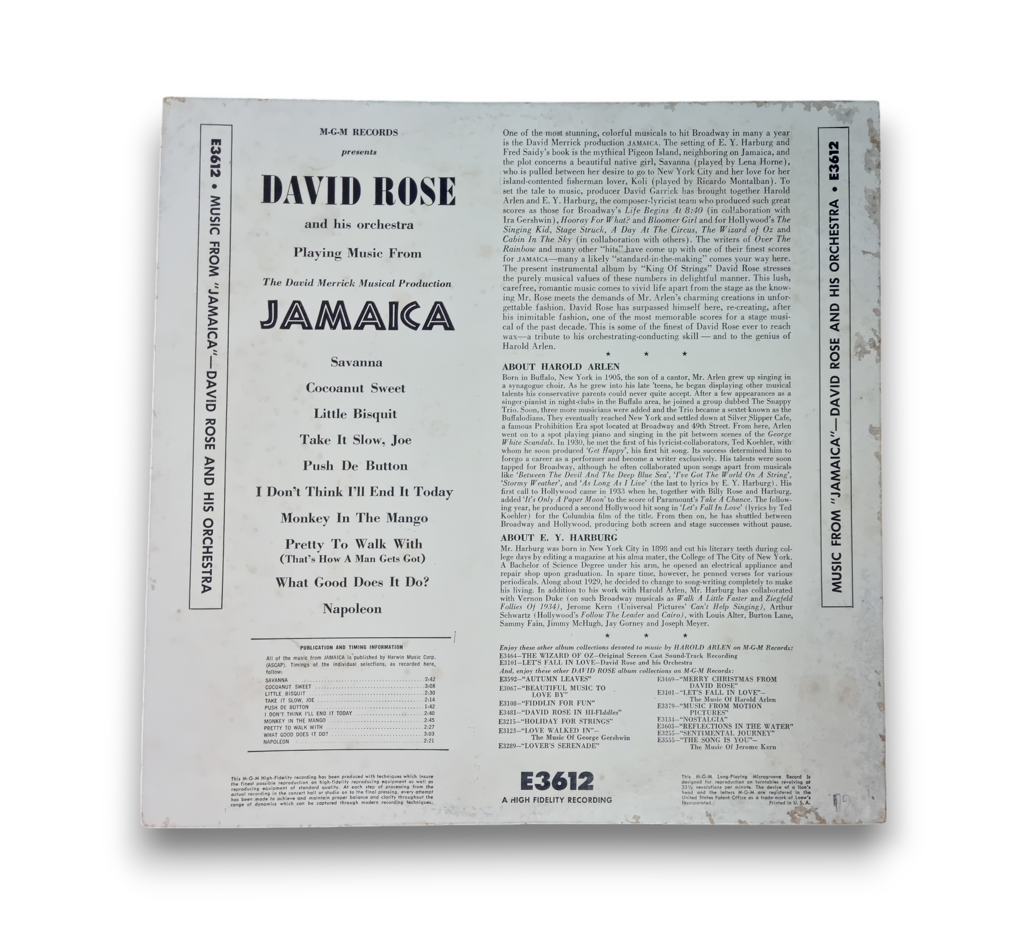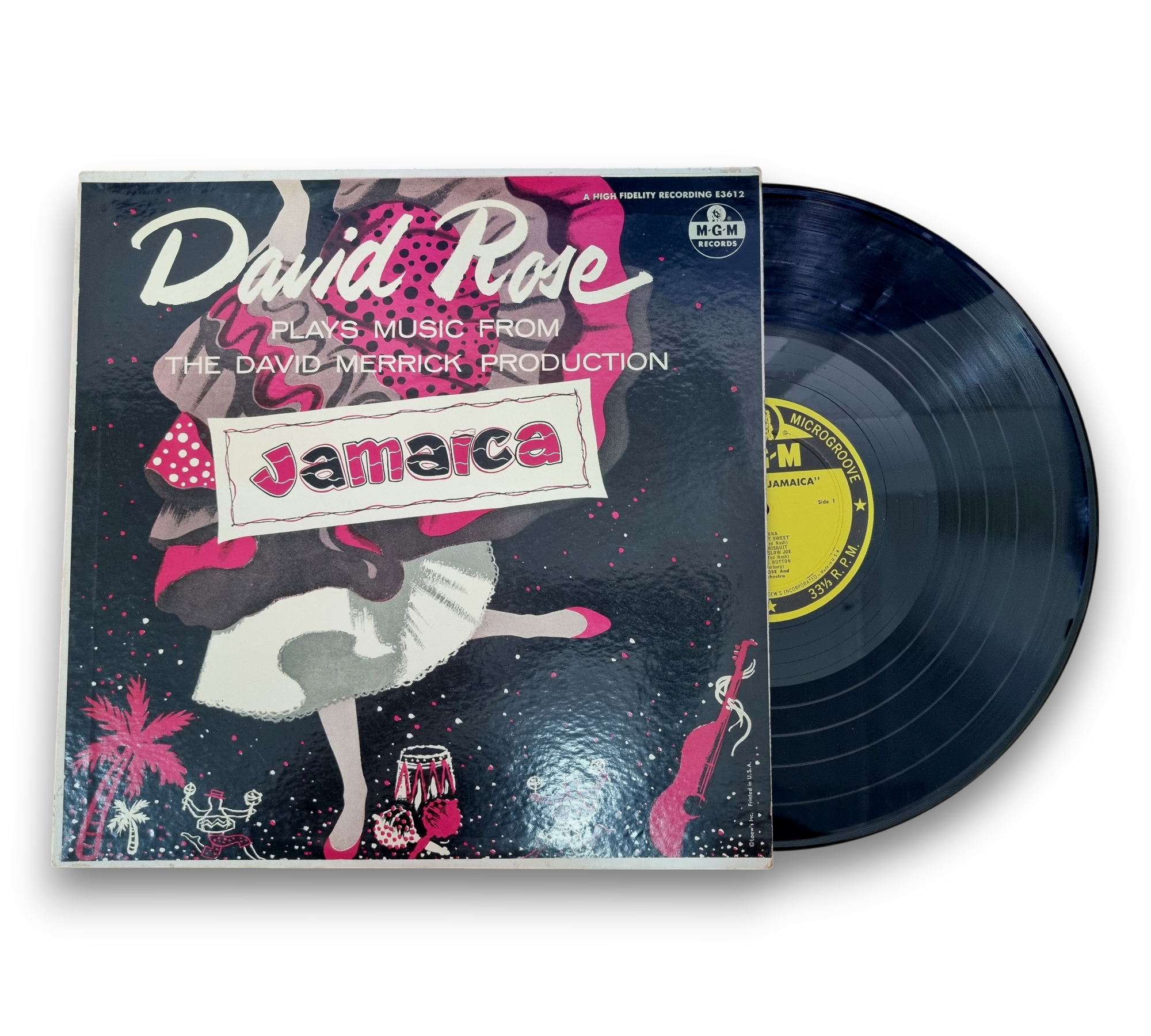 David Rose presents "Plays Music From The David Merrick Production Jamaica," a vibrant collection that captures the essence of the musical. The album features a selection of tracks that showcase the lively rhythms and melodies associated with the production. The front cover art is striking, reflecting the tropical theme of the music. For further details regarding the condition and specific features of the packaging, please refer to the accompanying photos.